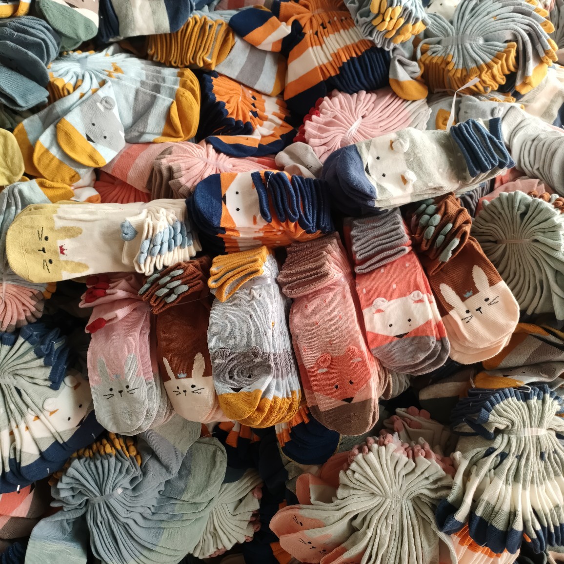 재고 어린이 분배 비 분배 평면 만화 소년 소녀 꽃 양말 중간 길이 양말
