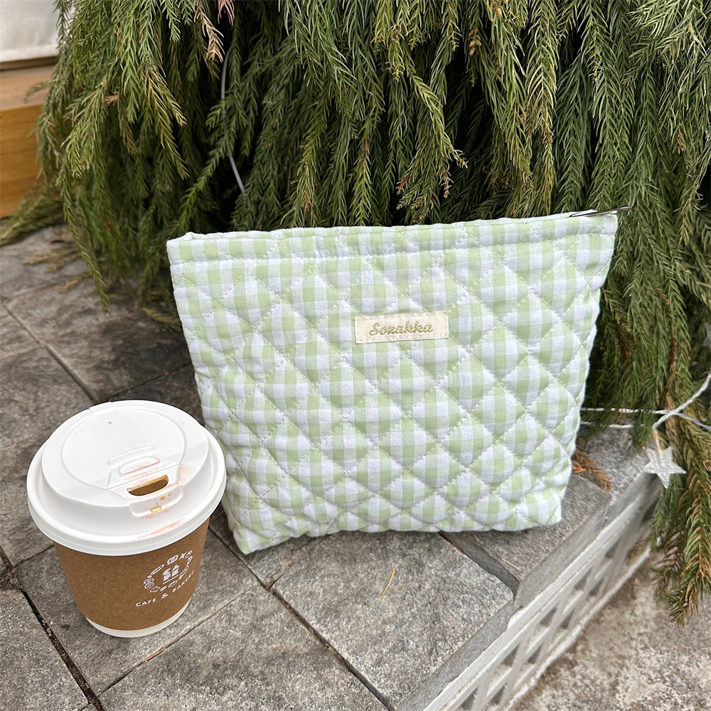 4171 퀼트 퀼트 신선한 크림 Zige 여성용 클러치 화장품 가방 대용량 스킨 케어 보관 가방