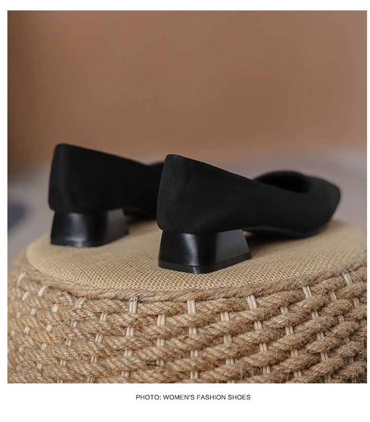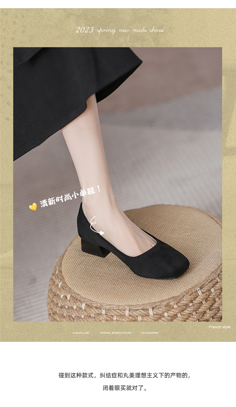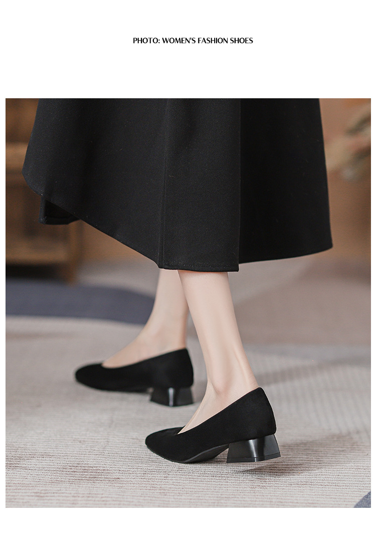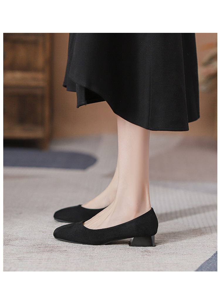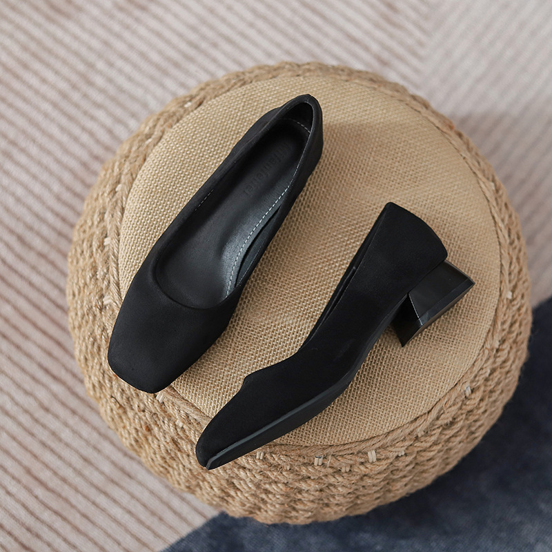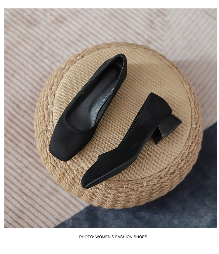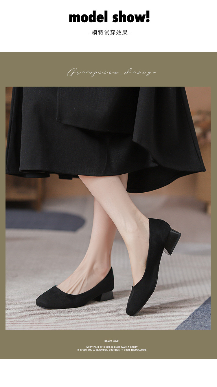 300 작업 신발 여성 사각 발가락 청키 힐 오래 서 피곤하지 않은 작업복 전문 작업 인터뷰 편안한 부드러운 바닥 부드러운 가죽 신발스토어 가기