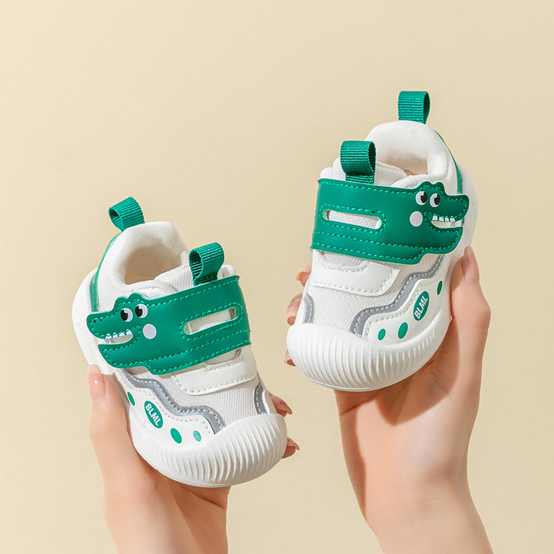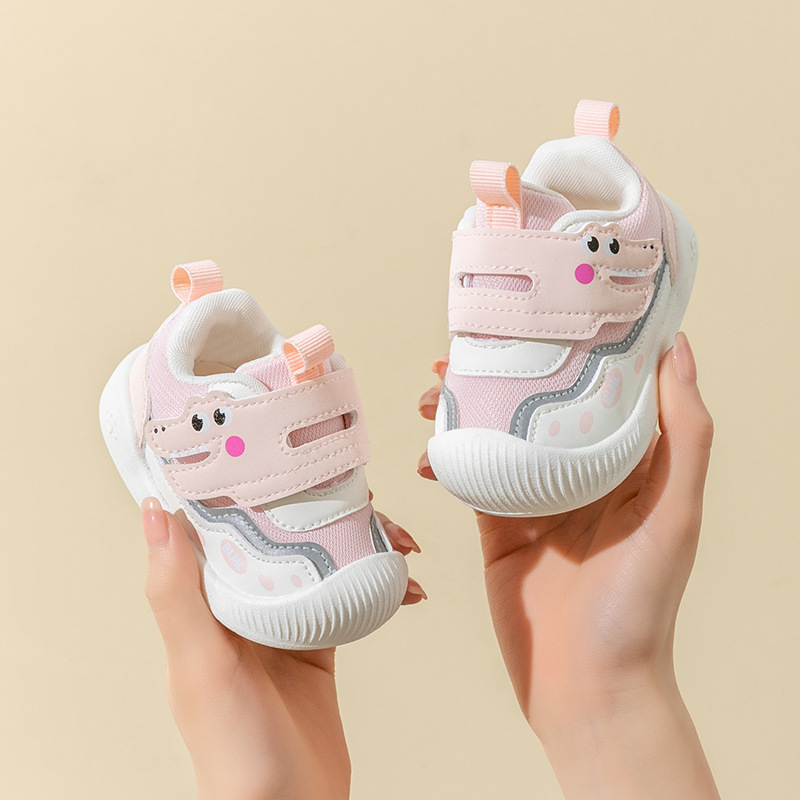 새로운 2024 스프링 키 신발 여성의 미끄럼 방지 내마모성 유아 신발 남성용 부드러운 바닥 메쉬 통기성 아기 신발 도매스토어 가기