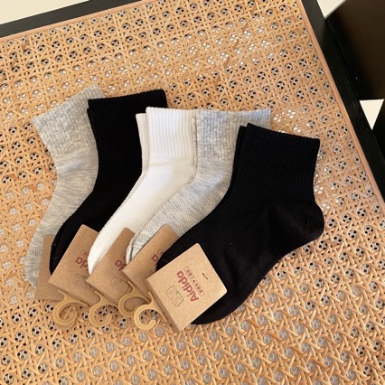 국경 간 대외 무역 어린이 양말 봄과 여름 새로운 흑백 회색 학생 양말 하프 메쉬 스포츠 양말 종아리 양말 도매스토어 가기