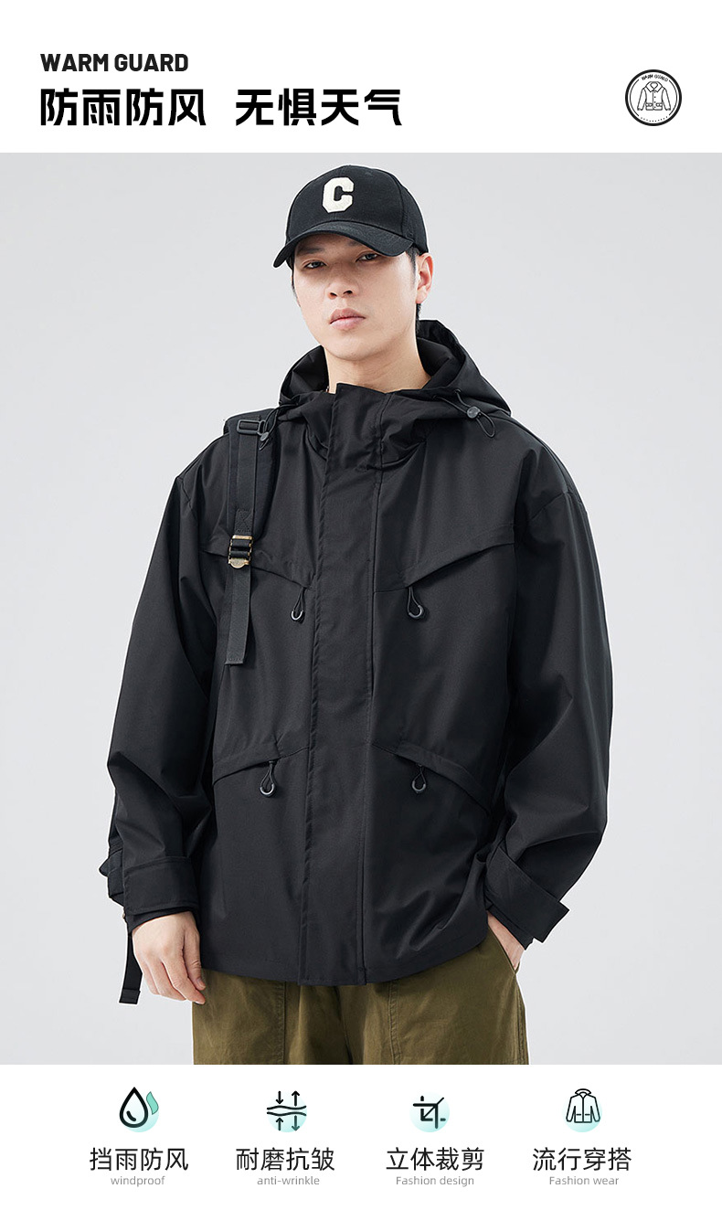 단보니 | 2025 봄 신상 작업복 재킷 후드 달린 일본식 아웃도어 남성용 통기성 재킷 스포츠