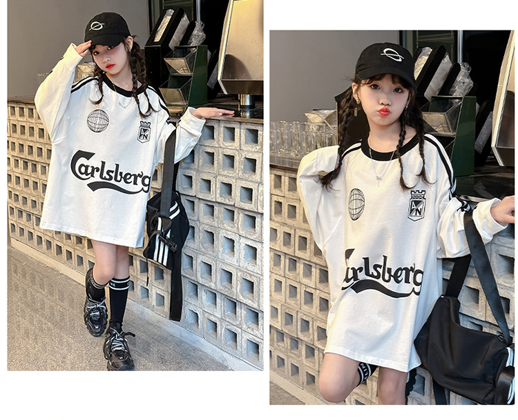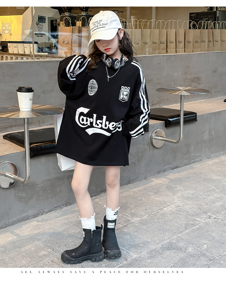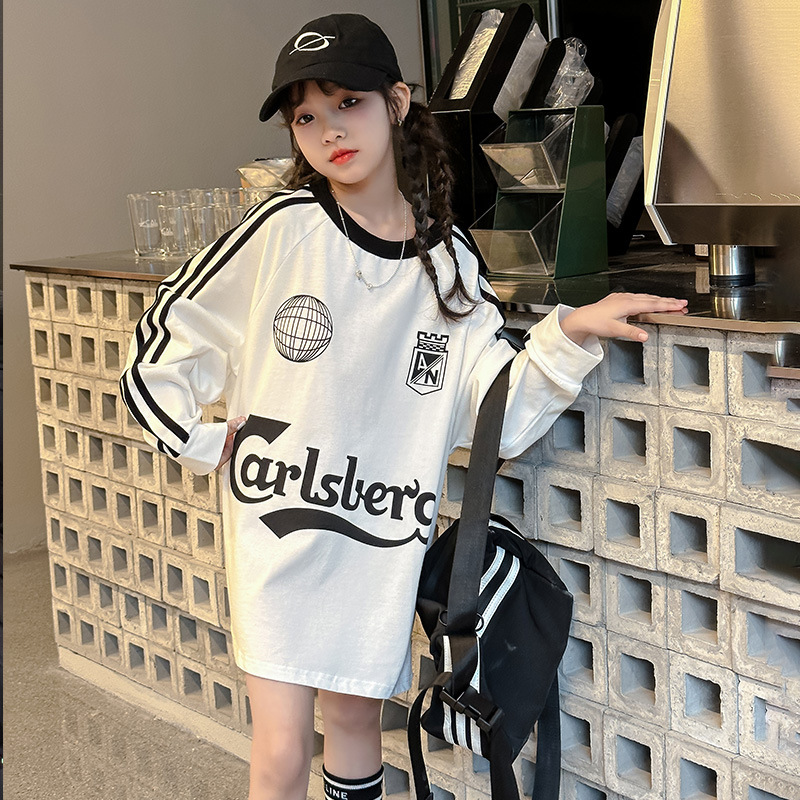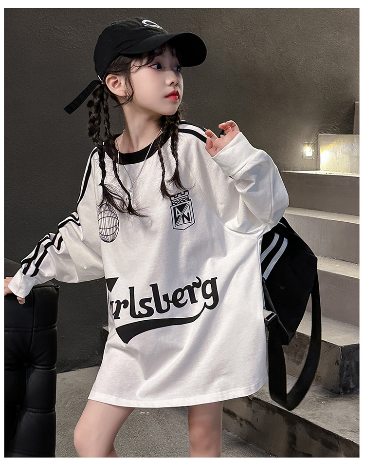 소녀 긴팔 티셔츠 스커트 느슨한 어린이 봄 탑 라운드 넥 스웨터 중장 소녀의 가을베이스 셔츠 트렌디스토어 가기