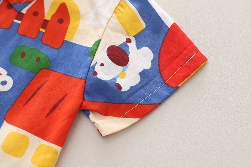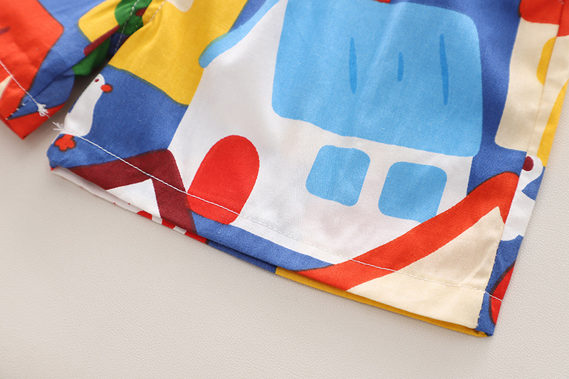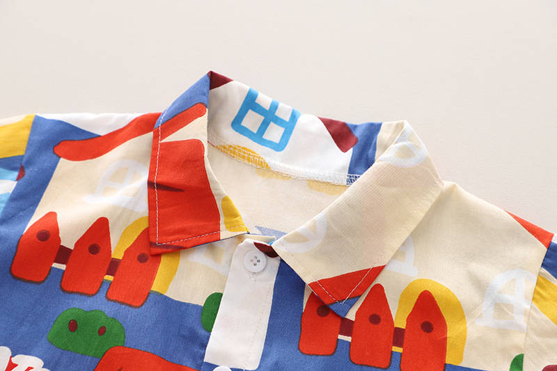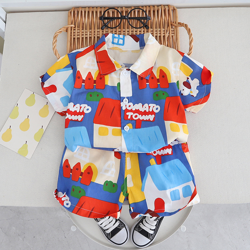 소년의 세련된 여름 꽃 무늬 셔츠 짧은 소매 세트 2024 여름 새로운 국경 어린이 여름 옷 아동복스토어 가기