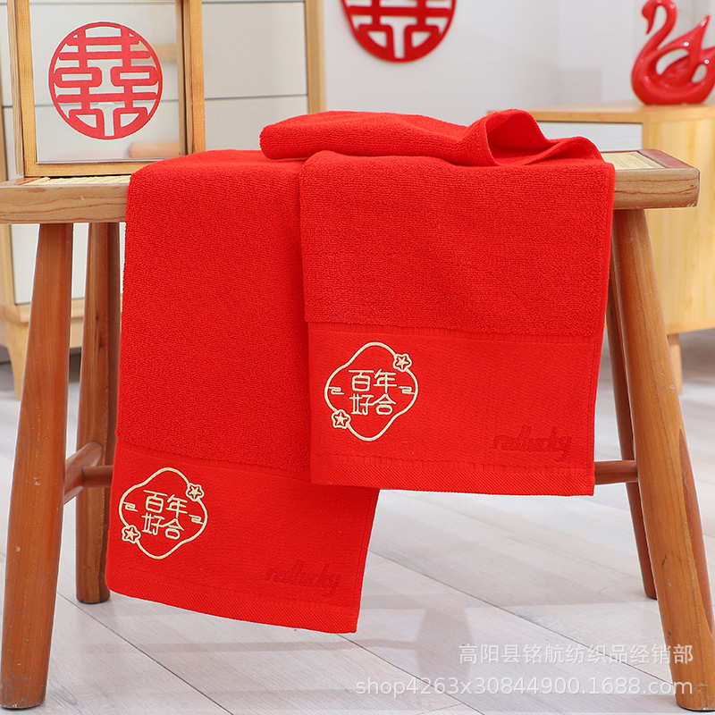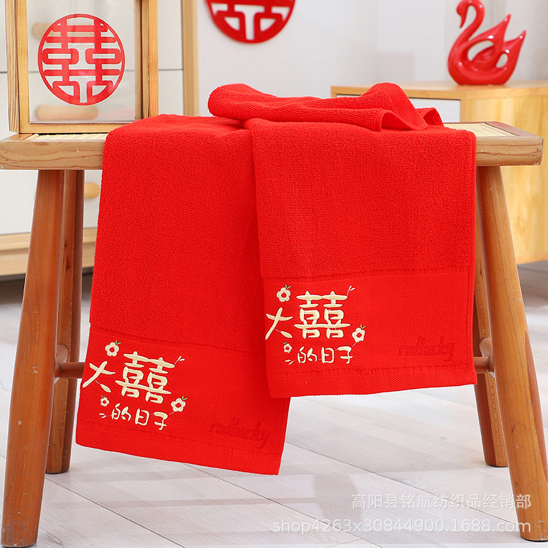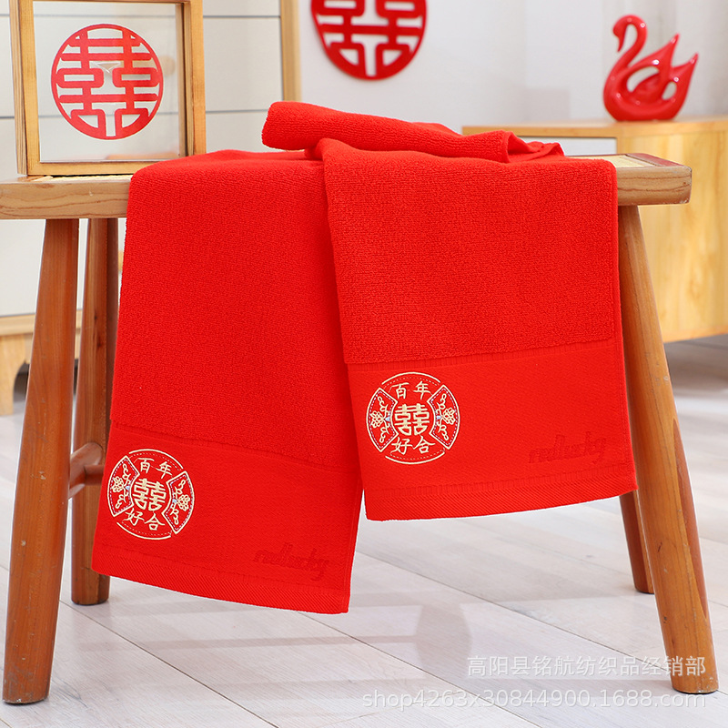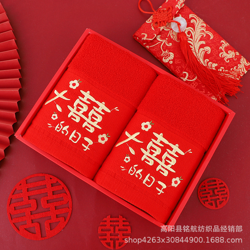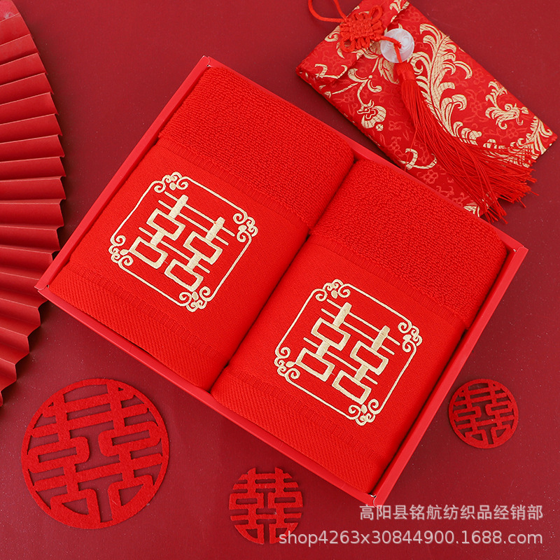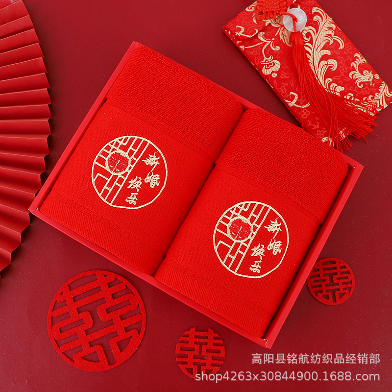 순수한면 레드 웨딩 타월 선물 손으로 선물 웨딩 타월 선물 상자 레드 웨딩 타월 원피스 배달스토어 가기