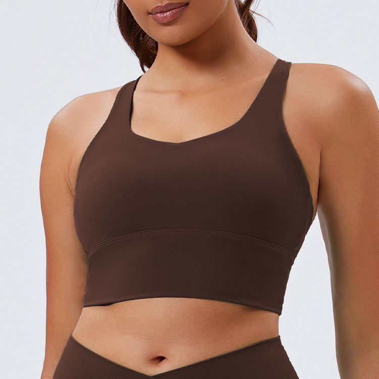 국경을 넘나드는 새로운 친환경 원단 러닝 타이트 피트니스 조끼 스타일 슈트 하이 웨이스트 가슴 패드 아름다운 등 요가 슈트