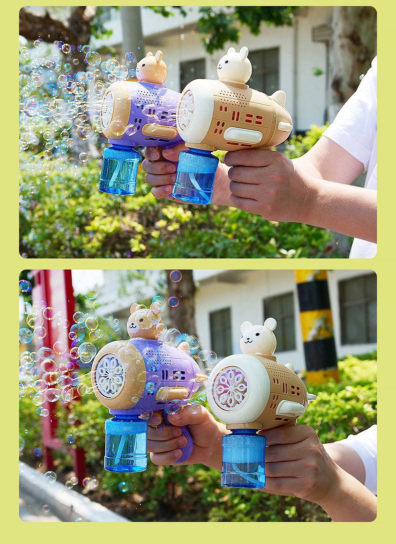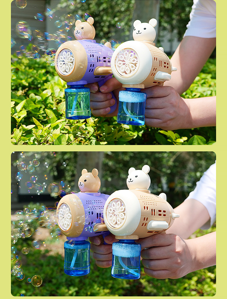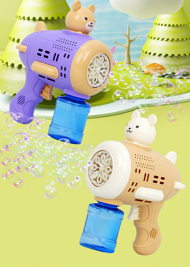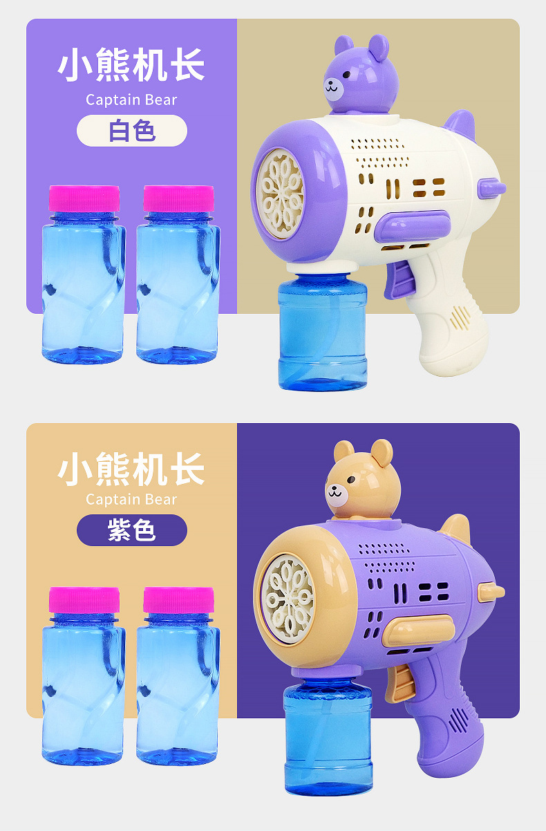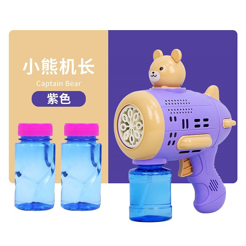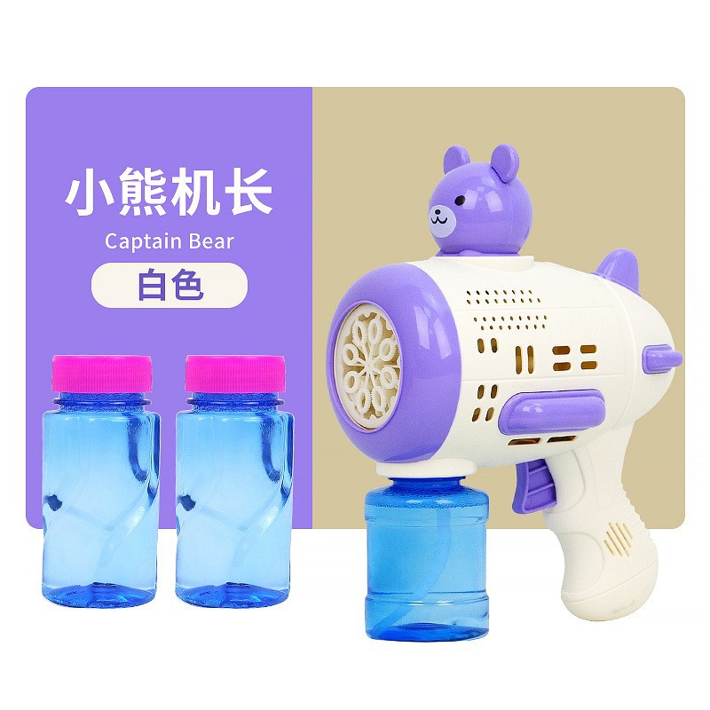 Huacai 버블 어린이 만화 곰 캡틴 버블 머신 전기 제어 가능한 자동 원 버튼 버블 블로우 장난감스토어 가기