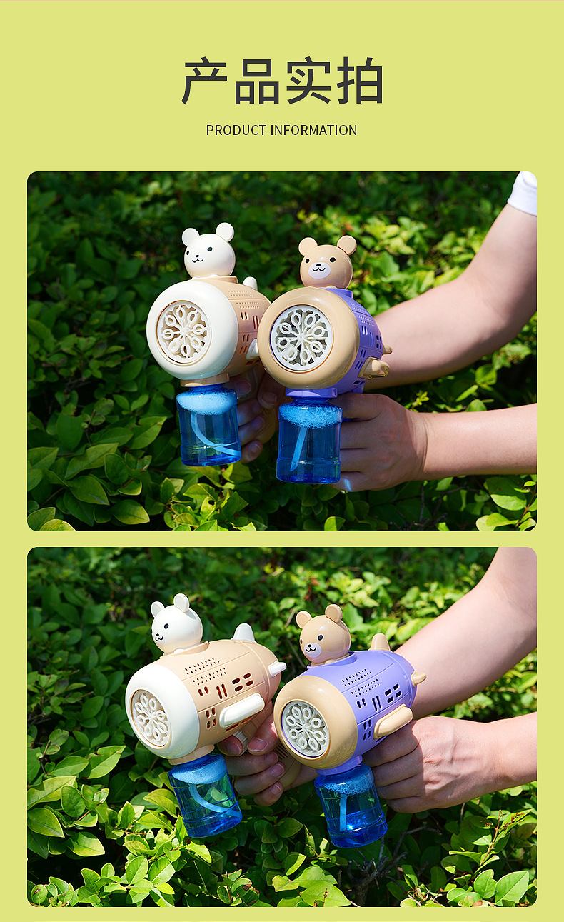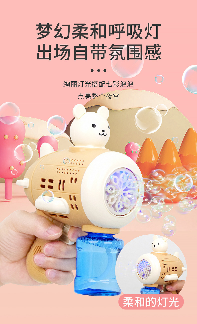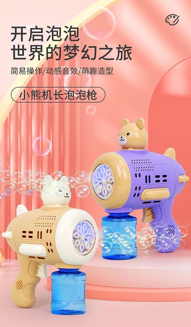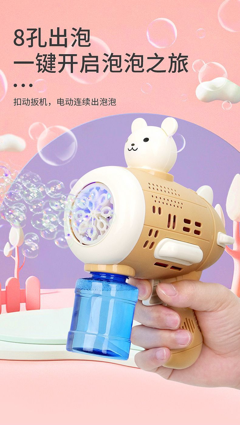 Huacai 버블 어린이 만화 곰 캡틴 버블 머신 전기 제어 가능한 자동 원 버튼 버블 블로우 장난감스토어 가기
