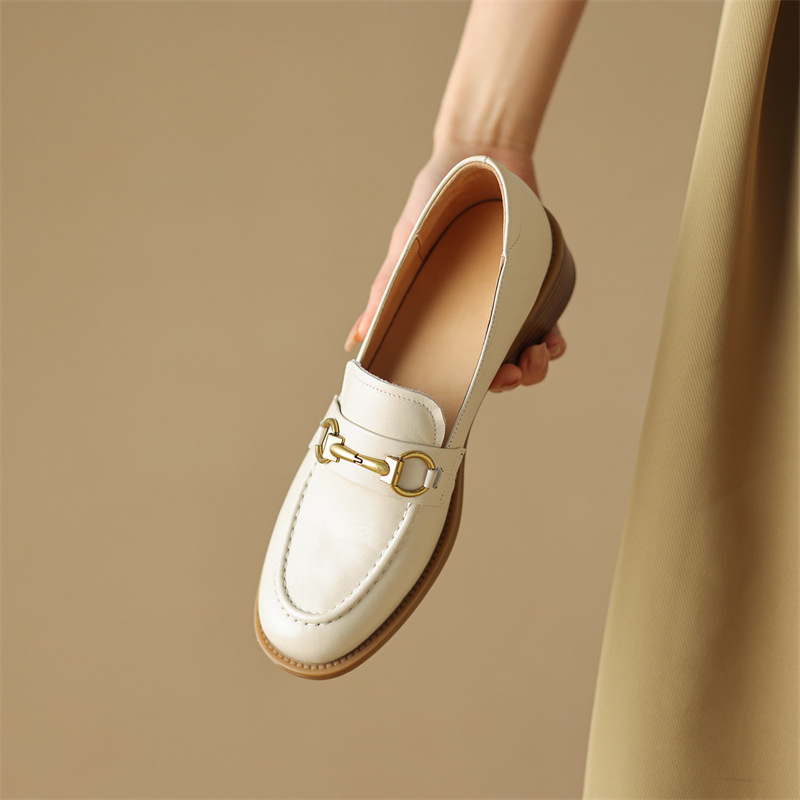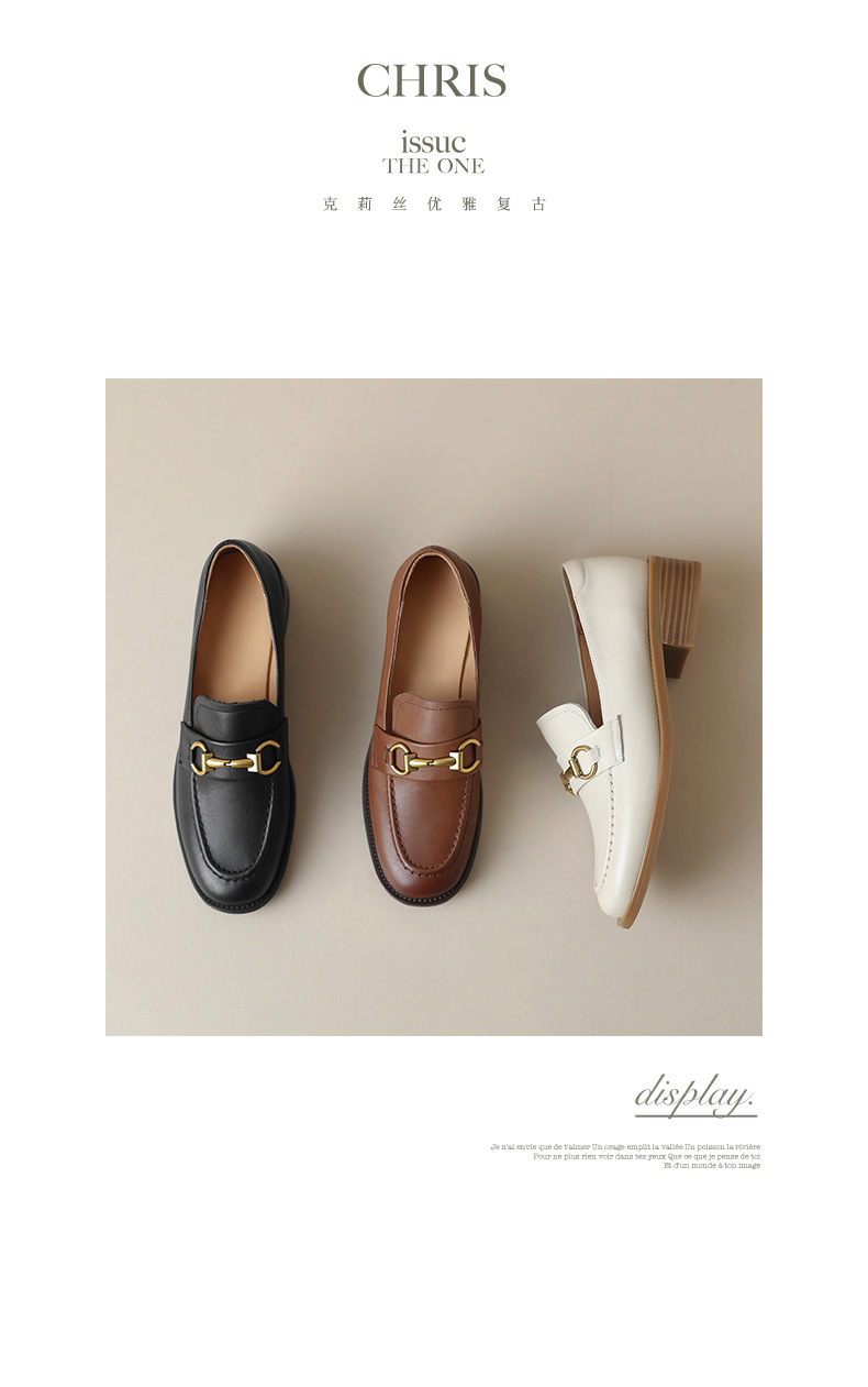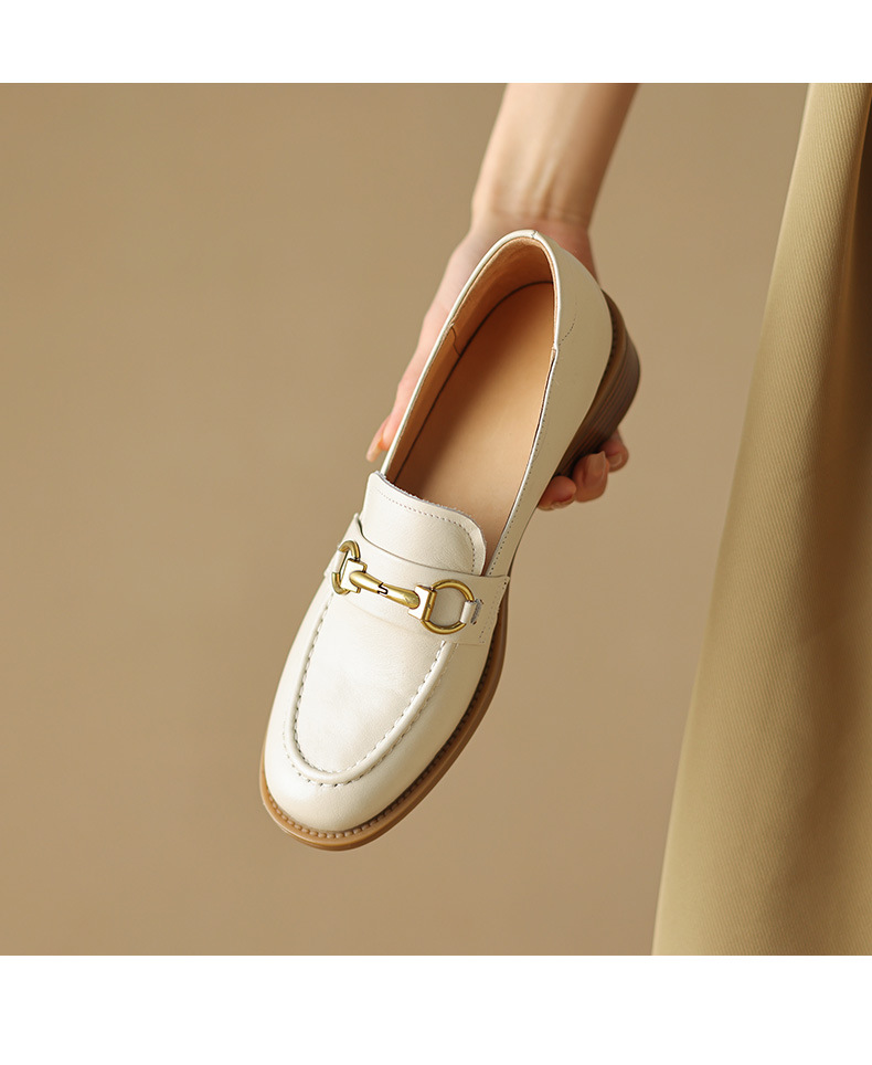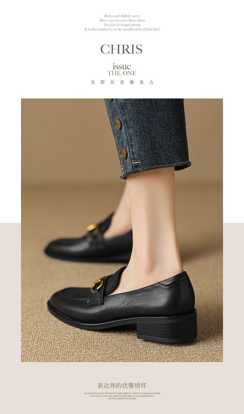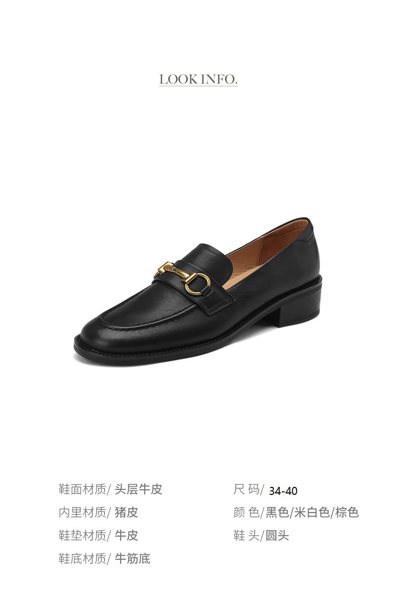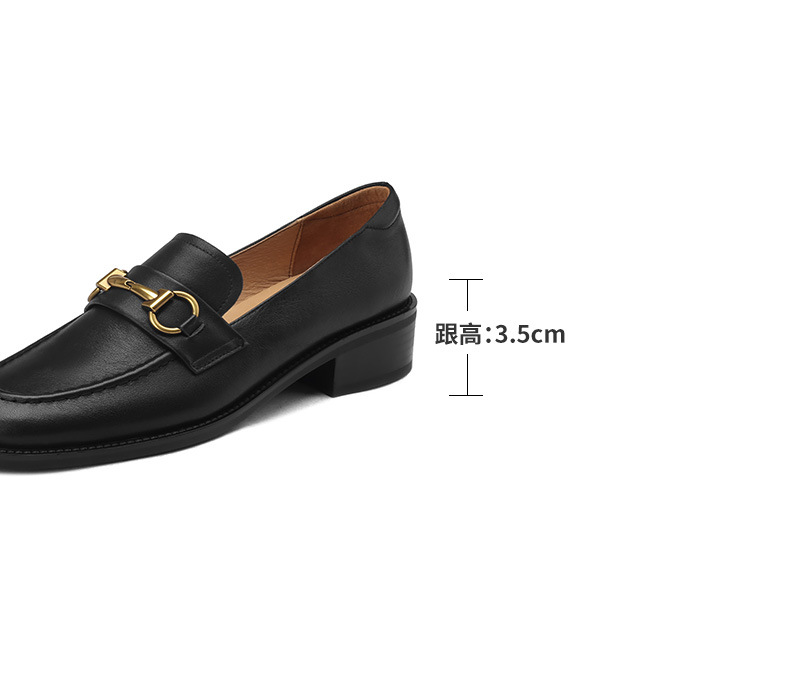 소프트 탑 레이어 소 가죽 3.5cm 로퍼 여성 2024 봄과 가을 가죽 싱글 레이어 신발 청키 힐 미드 힐 영국 스타일스토어 가기