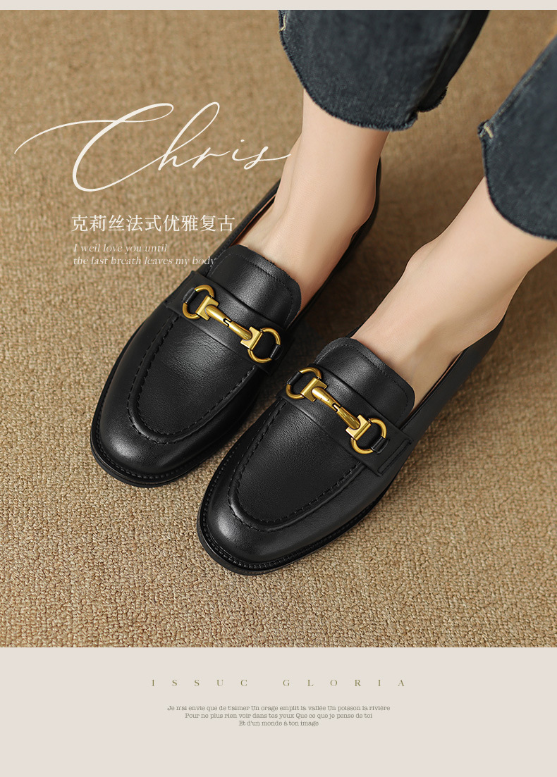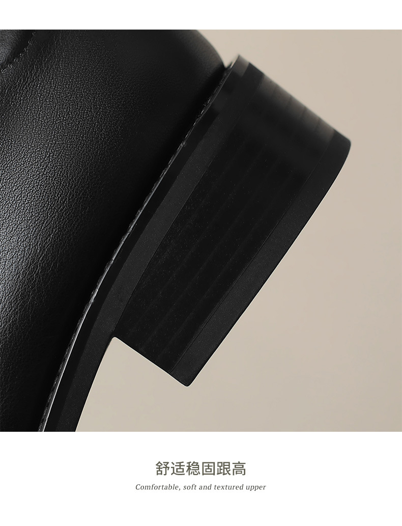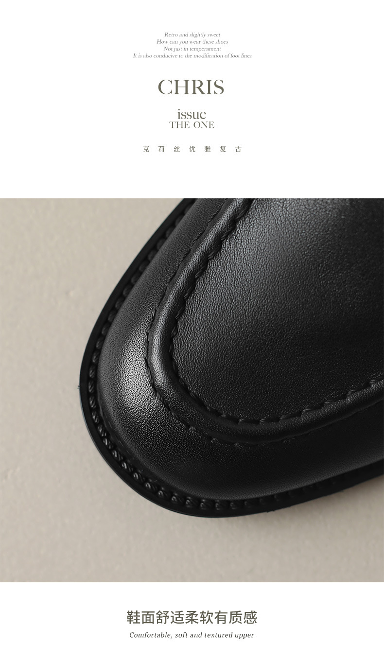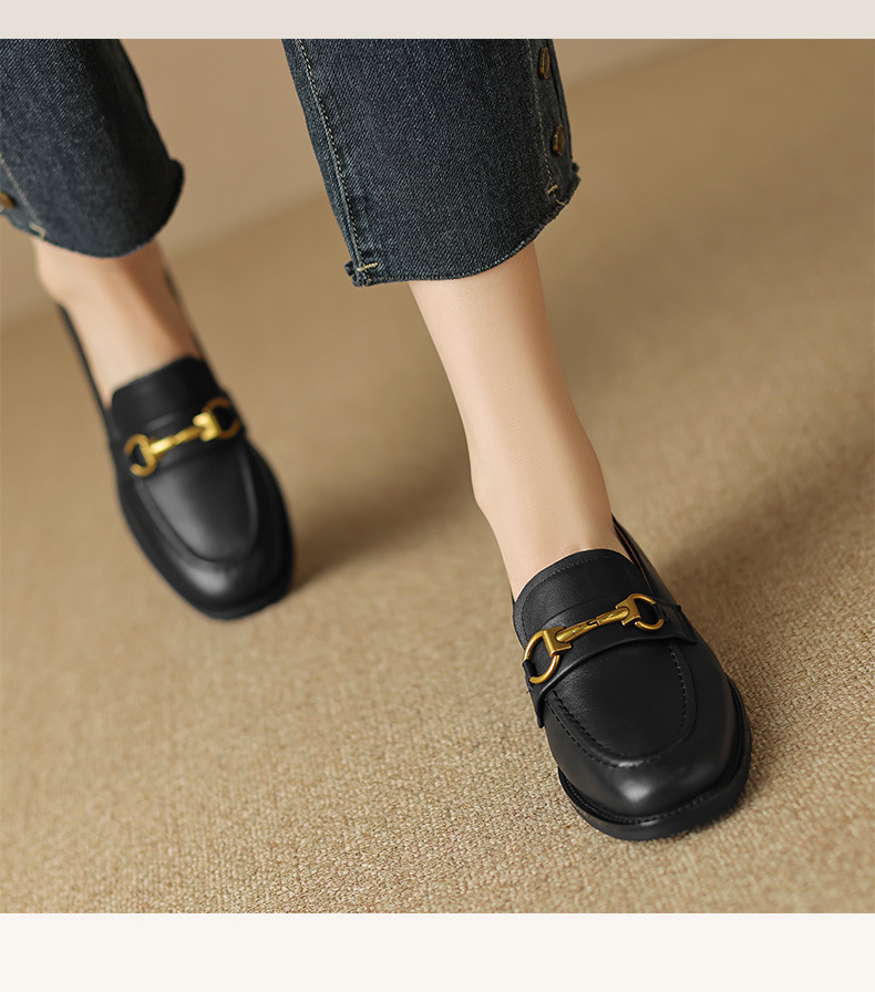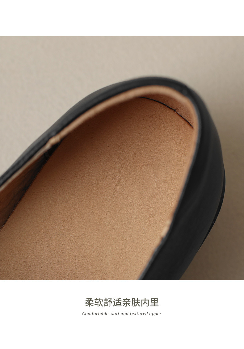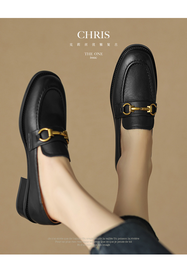소프트 탑 레이어 소 가죽 3.5cm 로퍼 여성 2024 봄과 가을 가죽 싱글 레이어 신발 청키 힐 미드 힐 영국 스타일스토어 가기