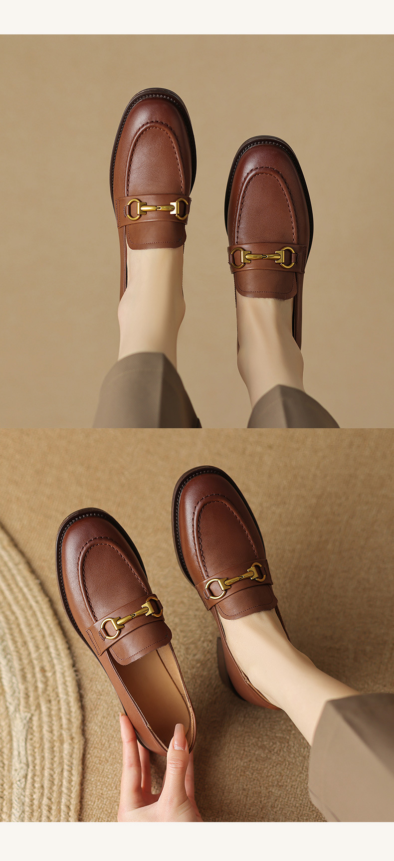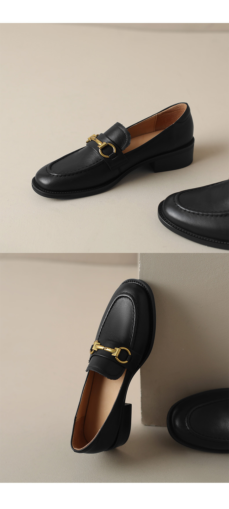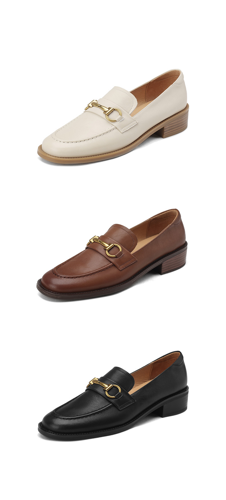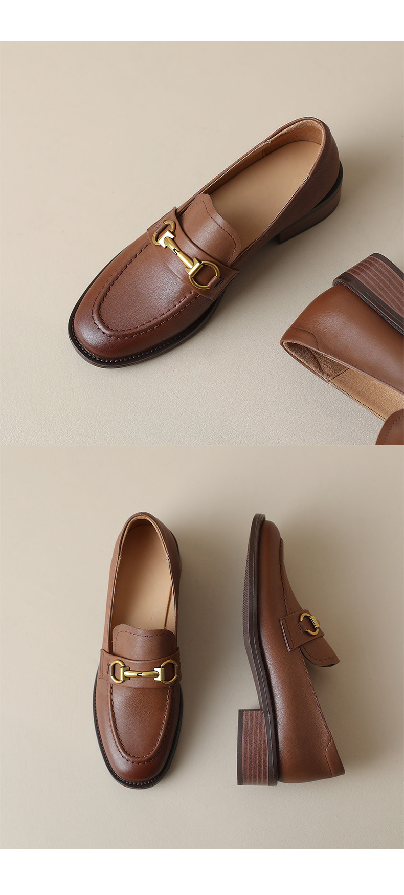 소프트 탑 레이어 소 가죽 3.5cm 로퍼 여성 2024 봄과 가을 가죽 싱글 레이어 신발 청키 힐 미드 힐 영국 스타일스토어 가기