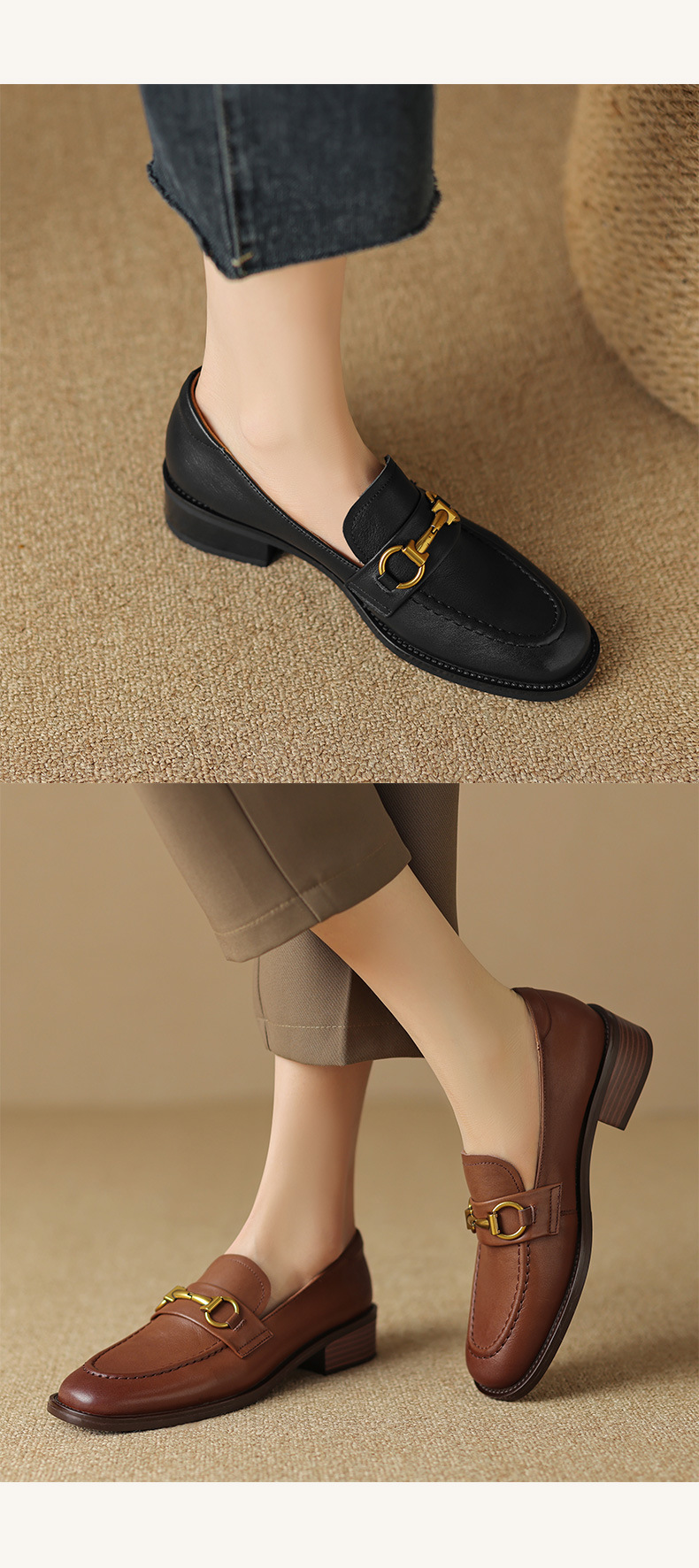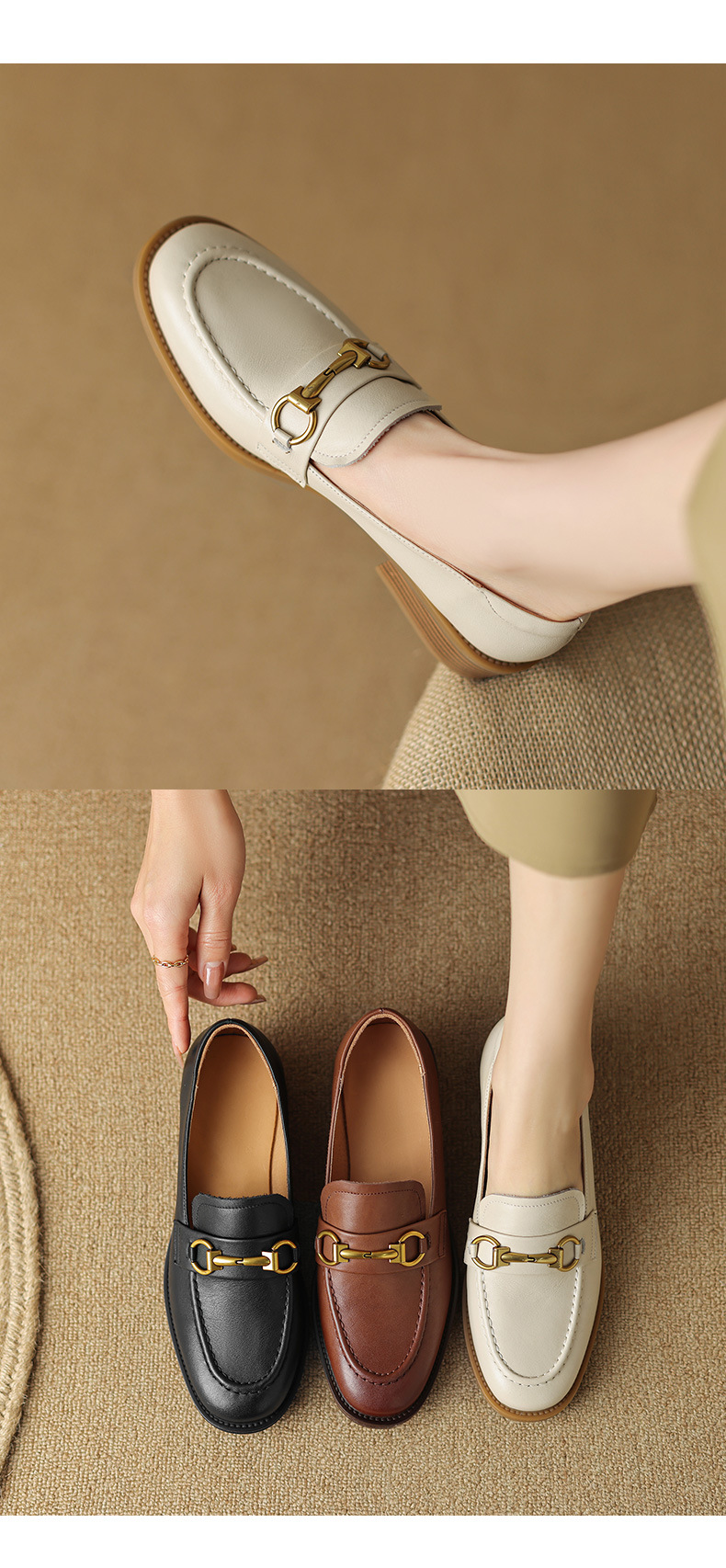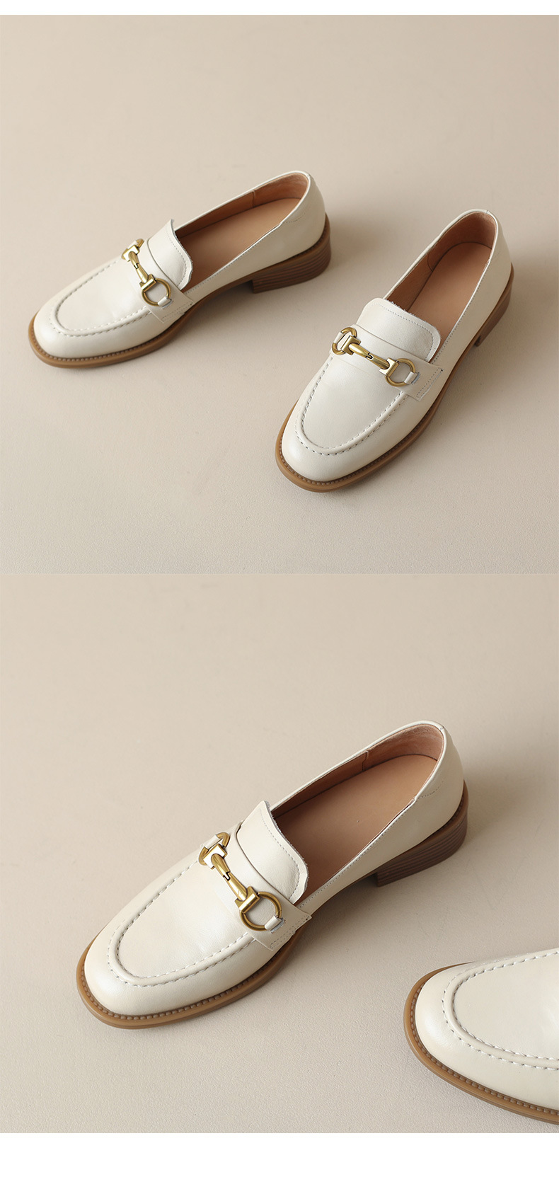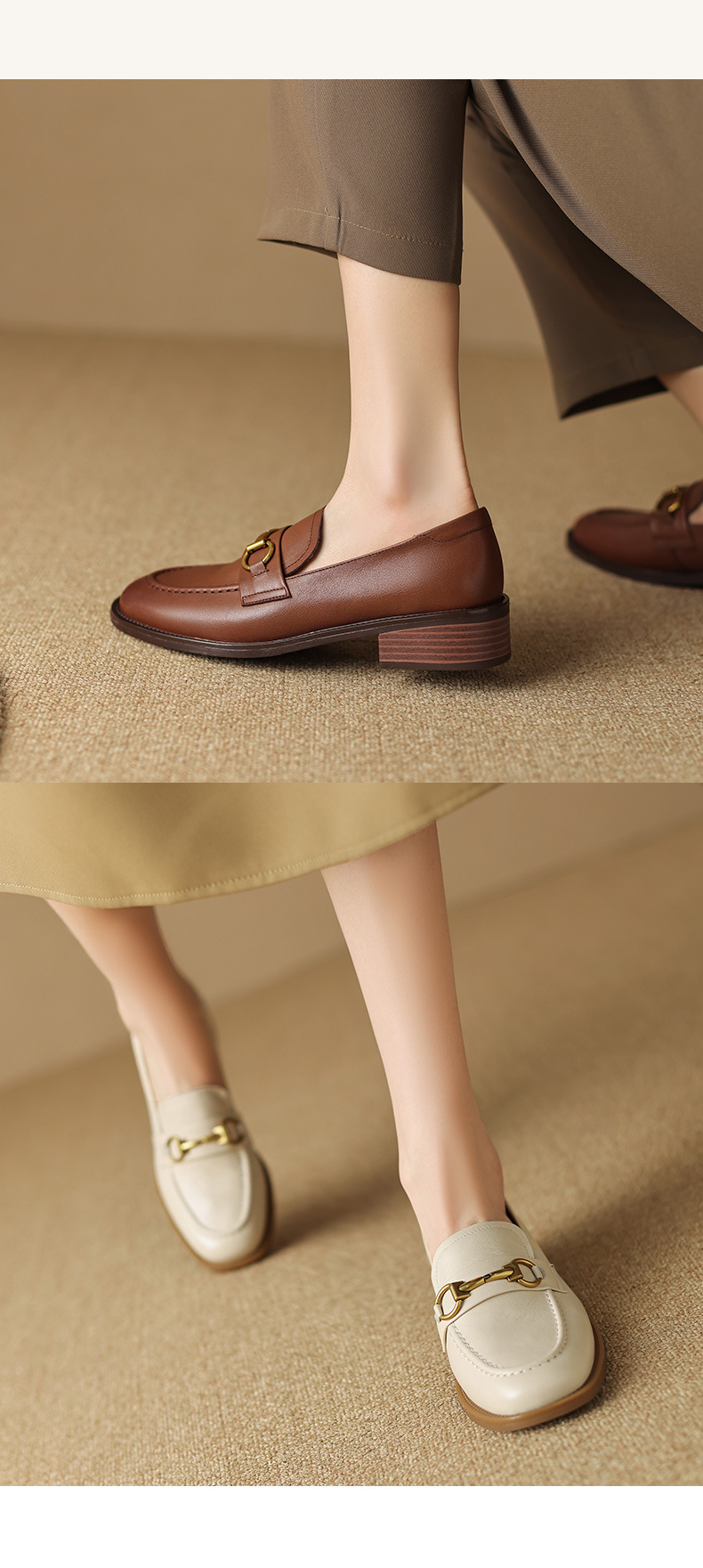 소프트 탑 레이어 소 가죽 3.5cm 로퍼 여성 2024 봄과 가을 가죽 싱글 레이어 신발 청키 힐 미드 힐 영국 스타일스토어 가기