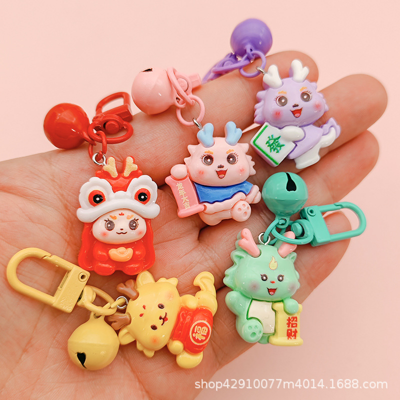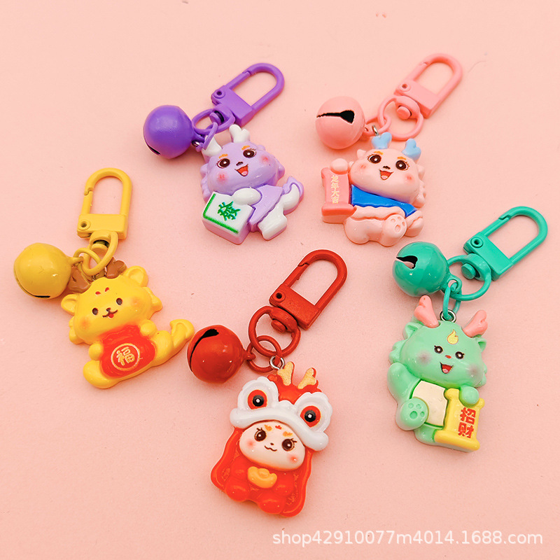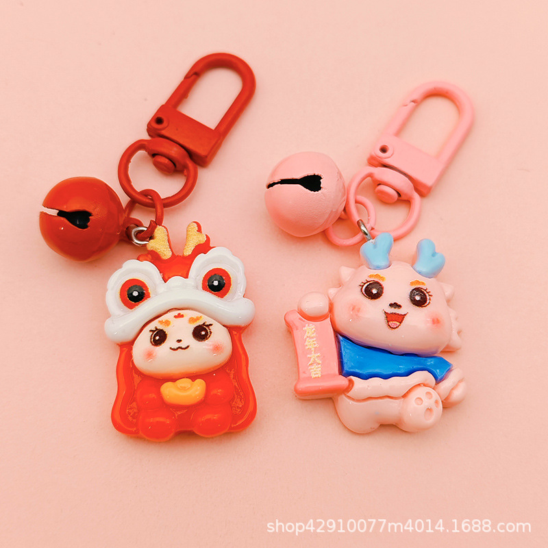 2024 년 새해 드래곤 라이온 키 체인 축제 레드 스쿨백 펜던트 학생 여자 친구 선물 액세서리스토어 가기