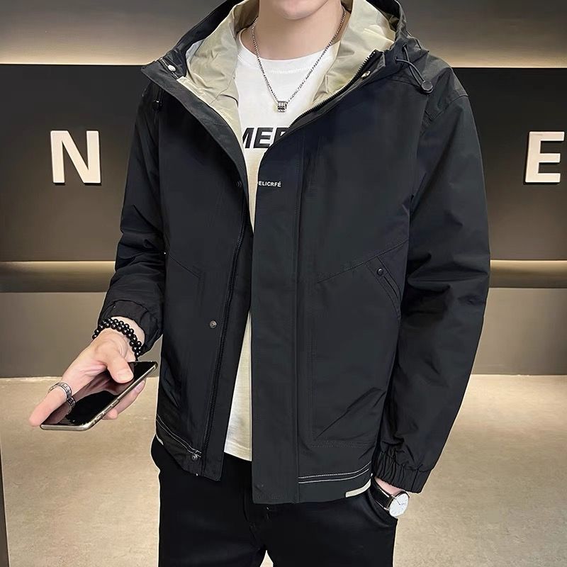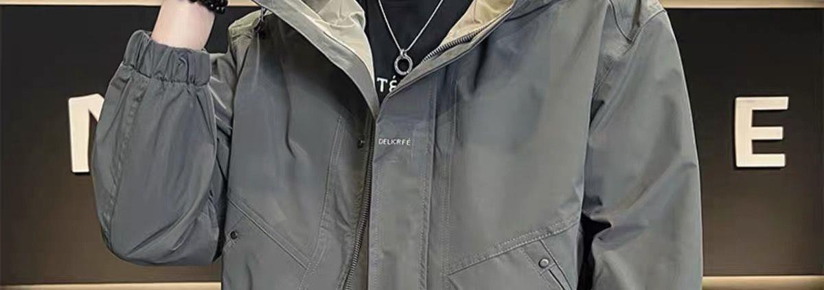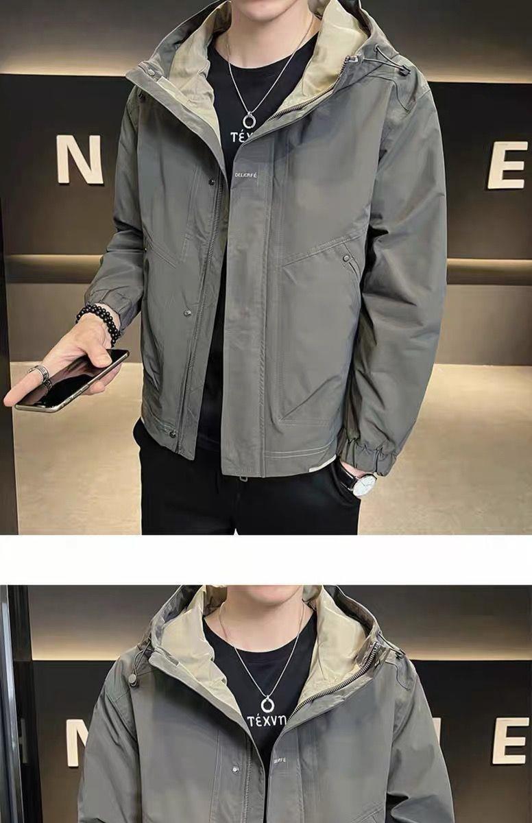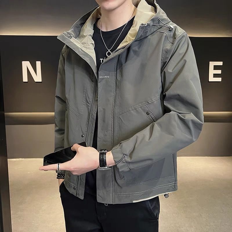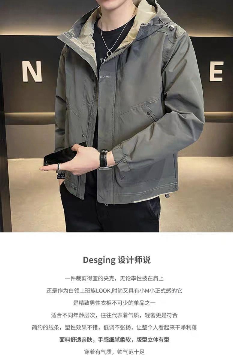 남자의 봄과 가을 2024 새로운 도착 더피 잘 생긴 유행 캐주얼 방수 후드 작업 자켓스토어 가기