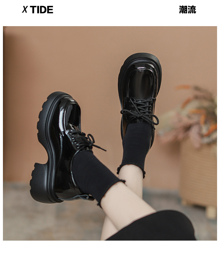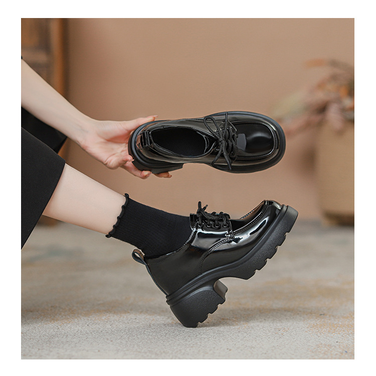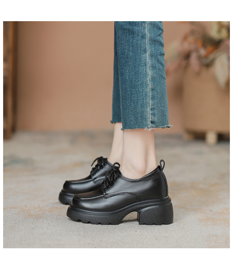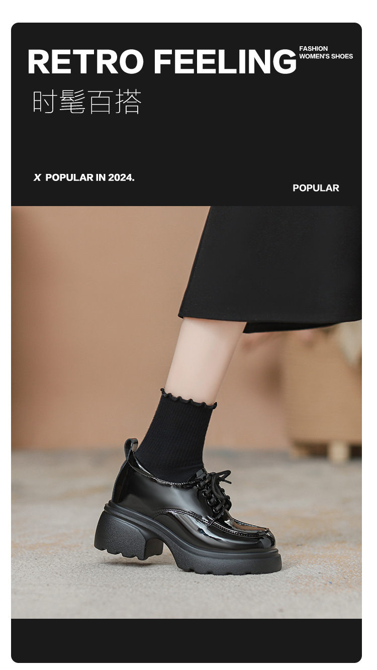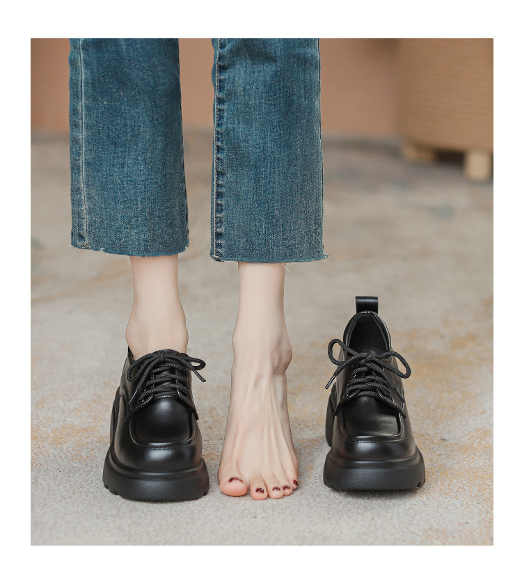 로퍼 여성 2024 뉴 칼리지 블랙 신발 영국 스타일 가죽 신발 인기있는 숨겨진 높이 증가 플랫폼 신발스토어 가기