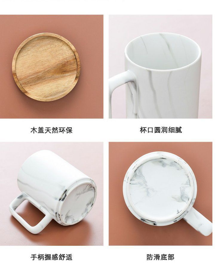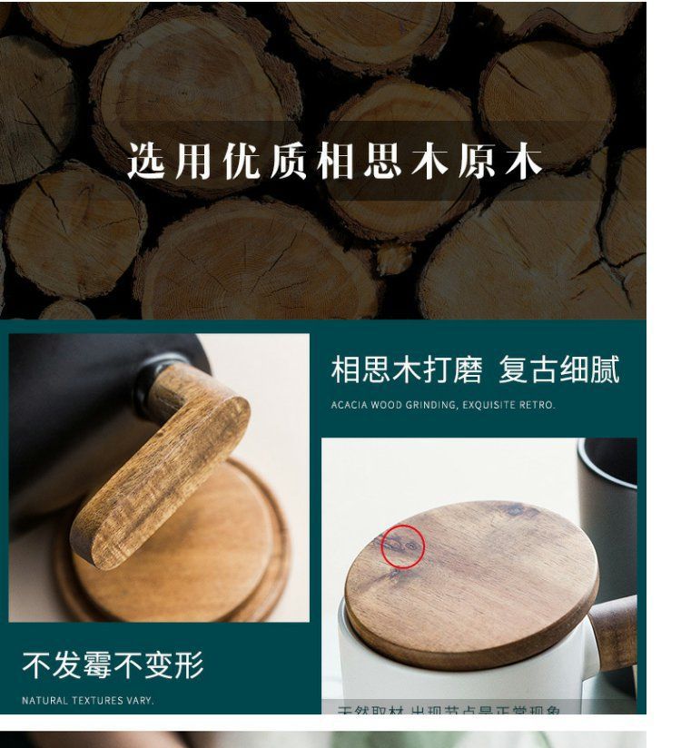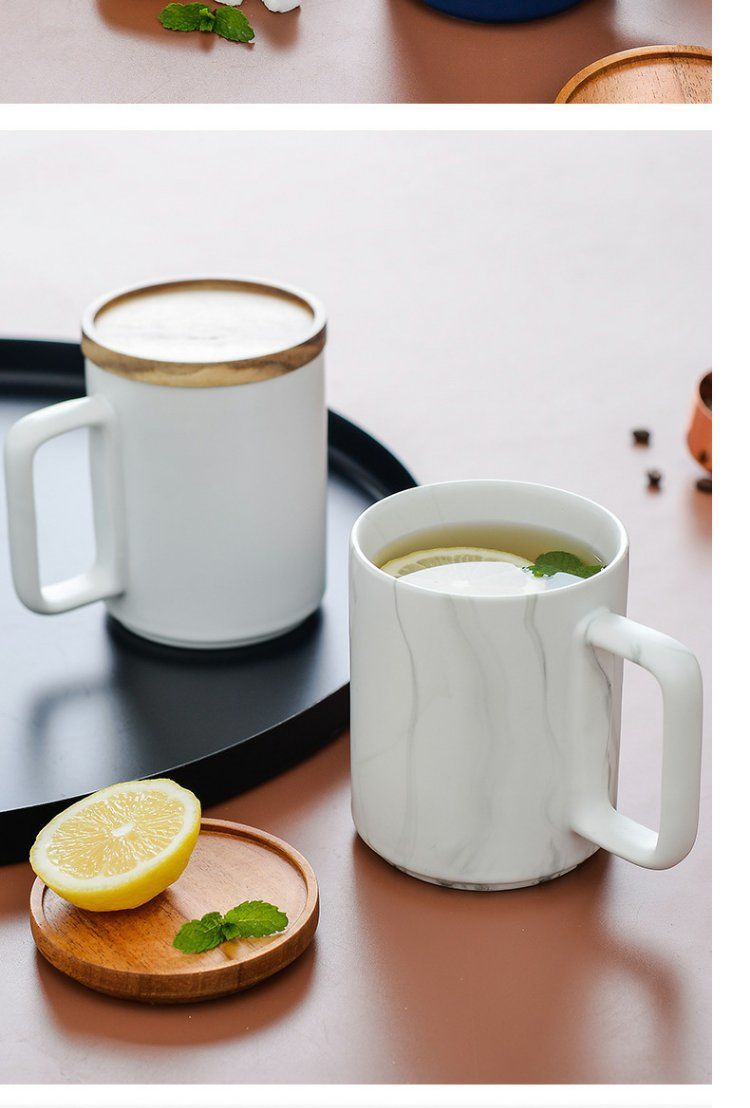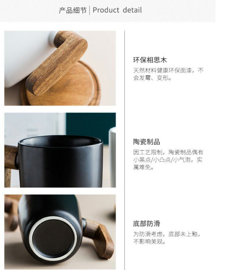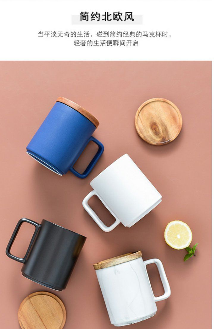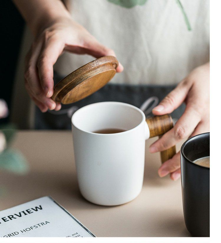 반 첸 창조적 인 노르딕 인 스타일 머그잔 나무 손잡이 뚜껑 커플 물 컵 선물 세트 빈티지 세라믹 컵