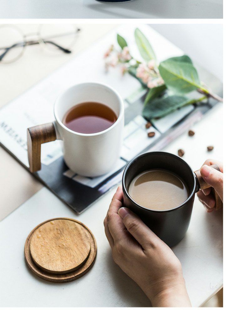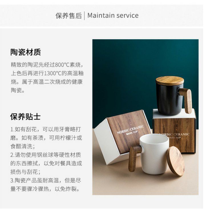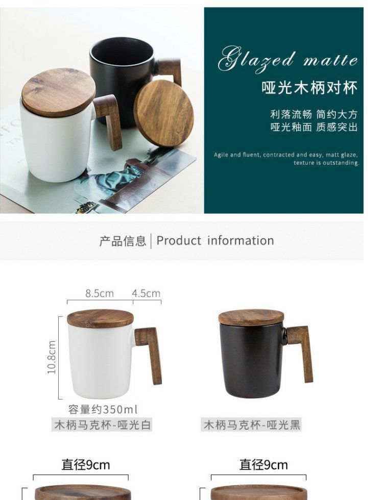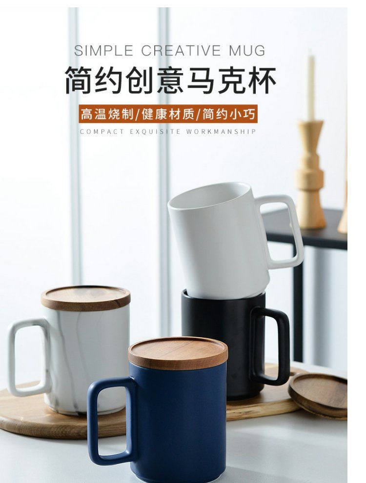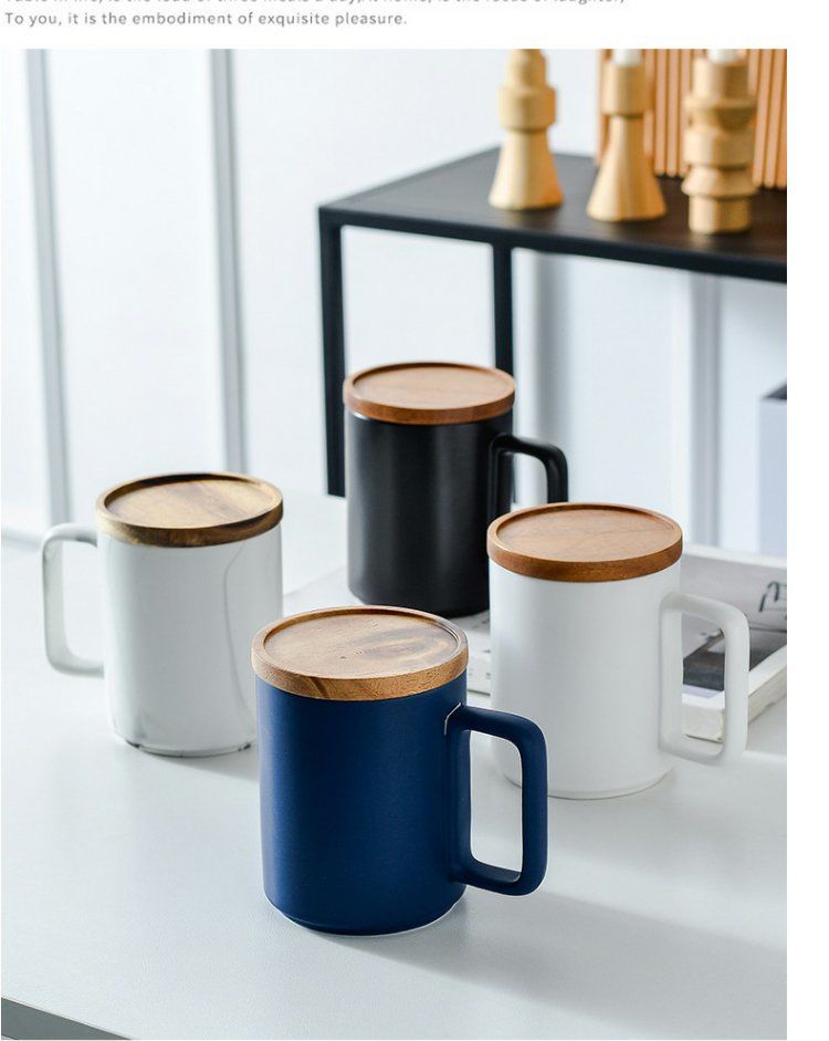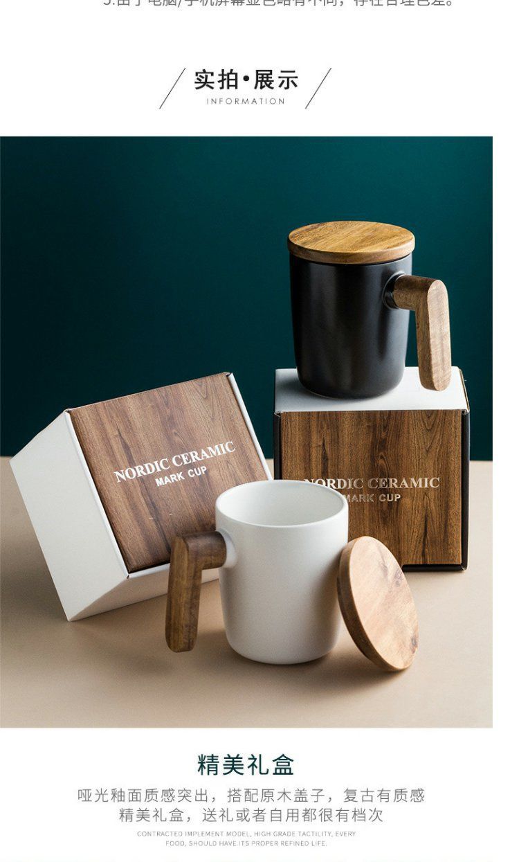 반 첸 창조적 인 노르딕 인 스타일 머그잔 나무 손잡이 뚜껑 커플 물 컵 선물 세트 빈티지 세라믹 컵스토어 가기