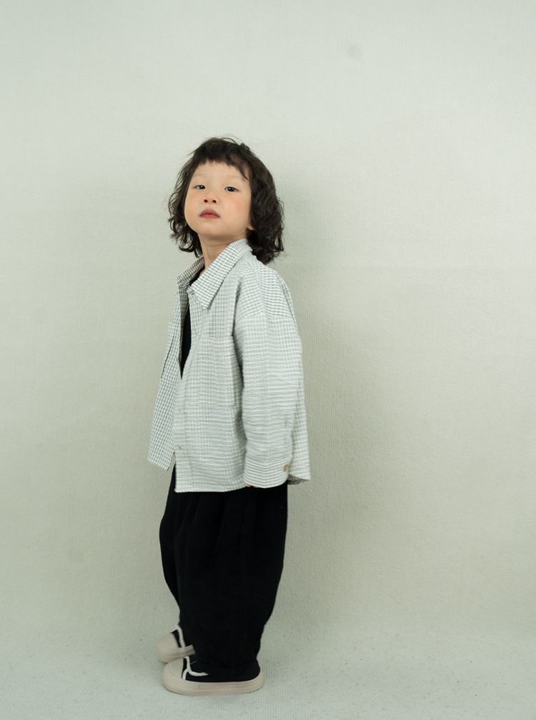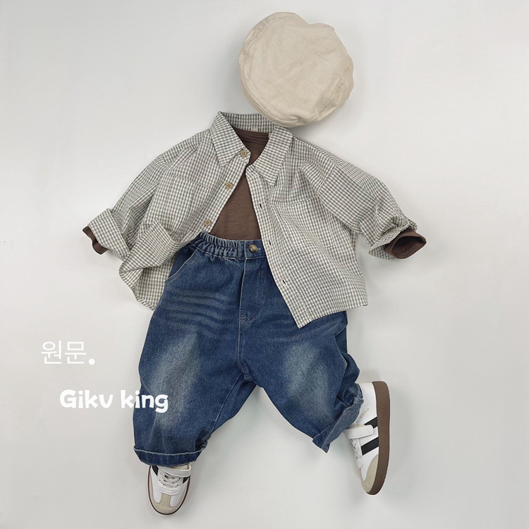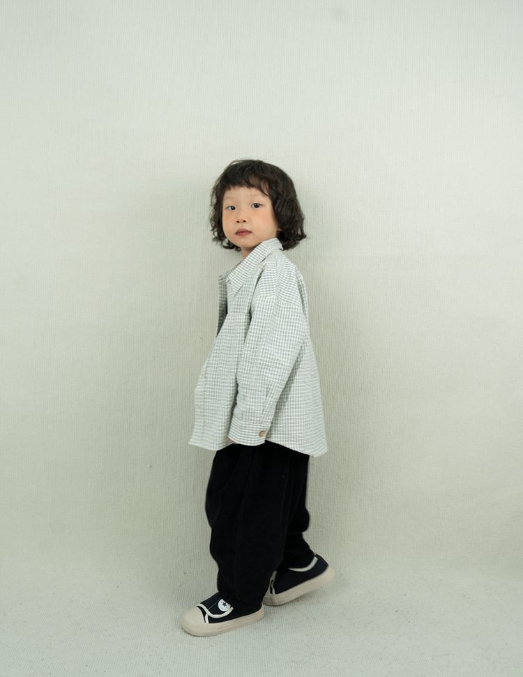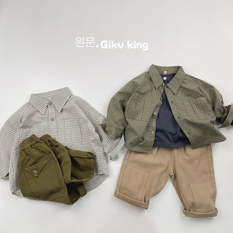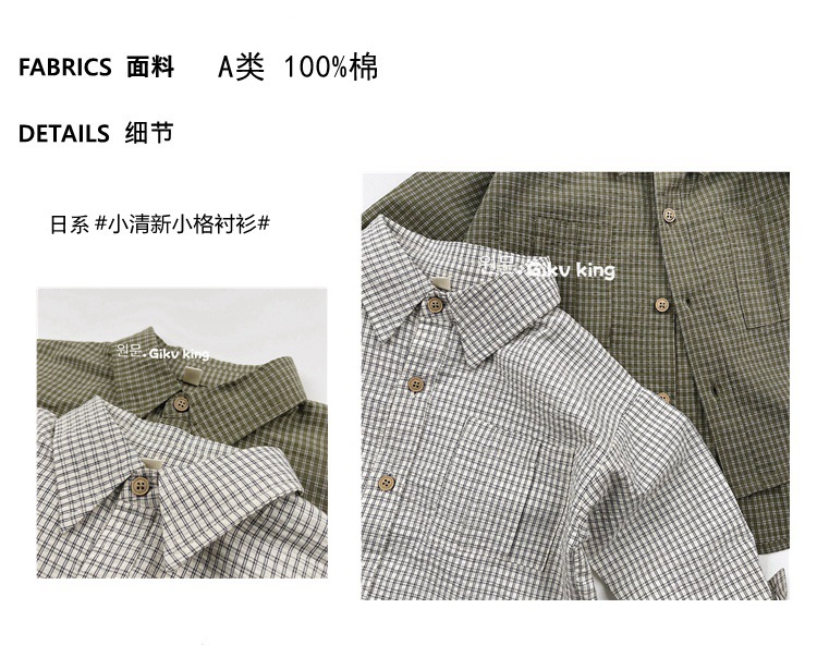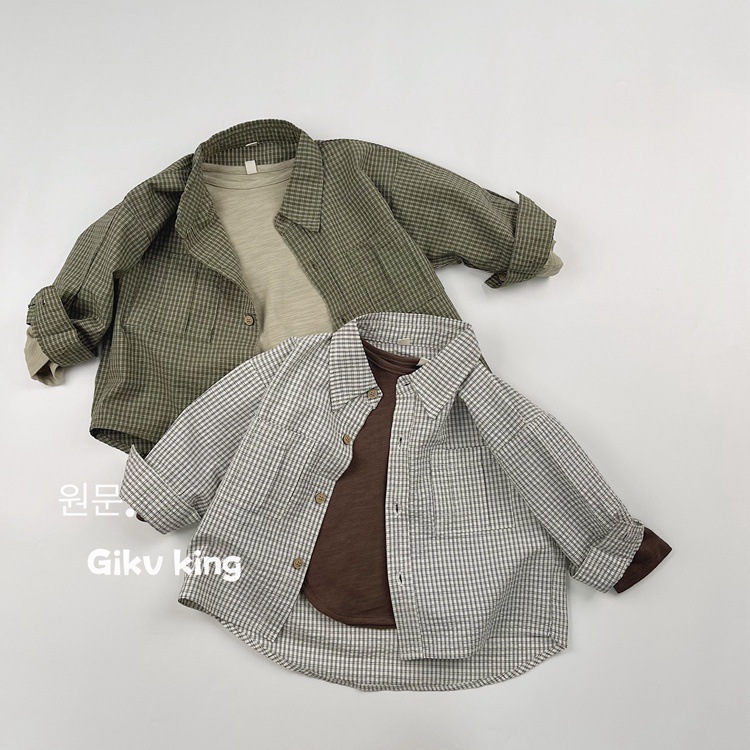 레트로 신선한 작은 옷깃 한국 스타일 어린이 격자 무늬 셔츠 24 봄 새 소년과 소녀 대칭 포켓 캐주얼 셔츠스토어 가기