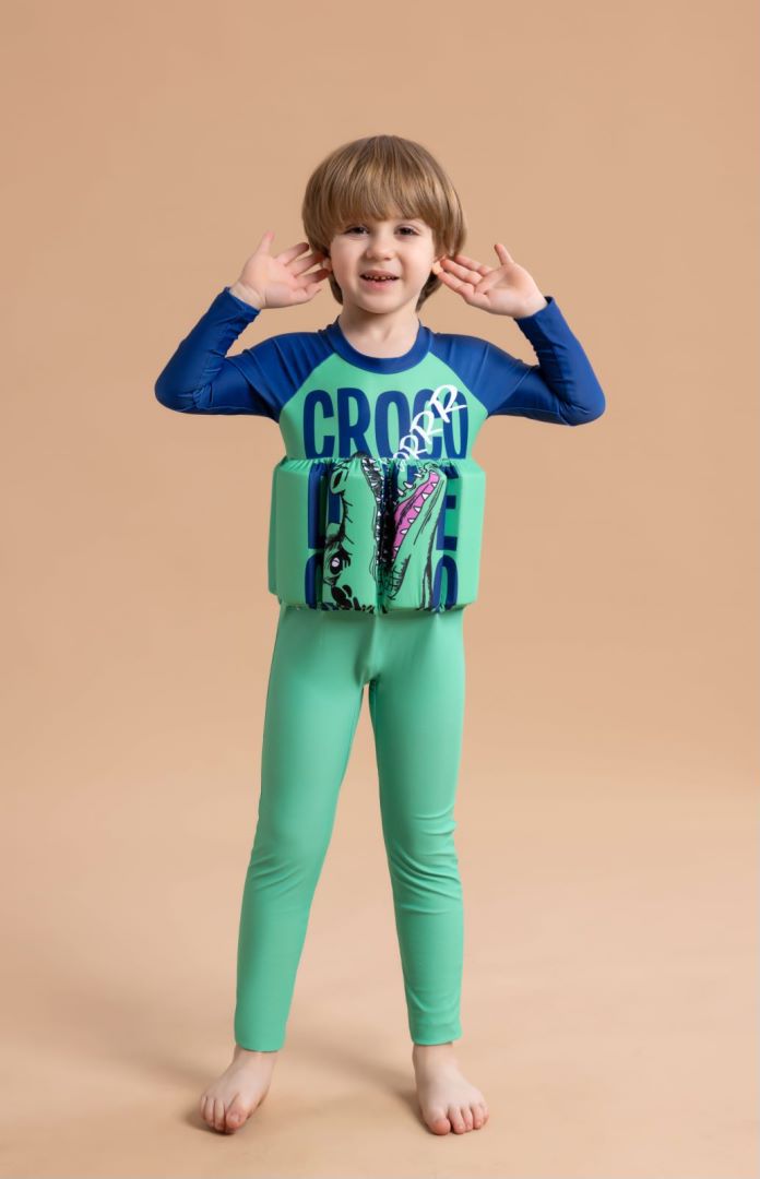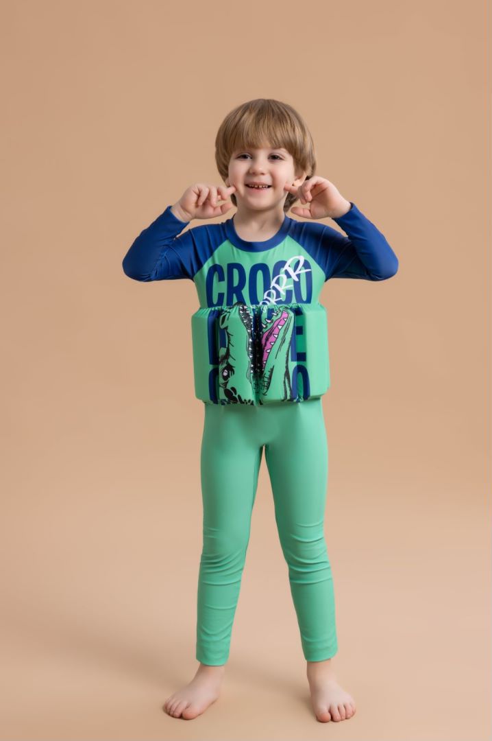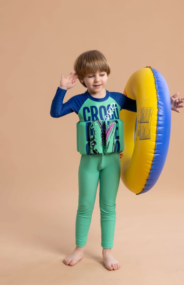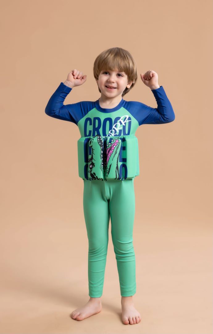 새로운 스타일의 부력 수영복 아기 남아용 긴팔 긴바지 수영복 원피스 플로팅 수영복