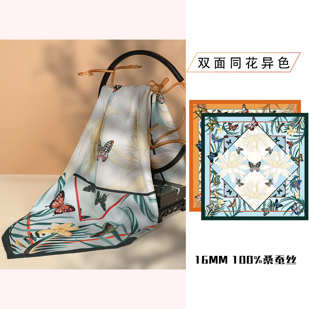 새로운 90 스퀘어 스카프 실크 스카프 실크 자외선 차단제 스카프 여성용 실크 스퀘어 스카프 목도리 스카프 도매스토어 가기