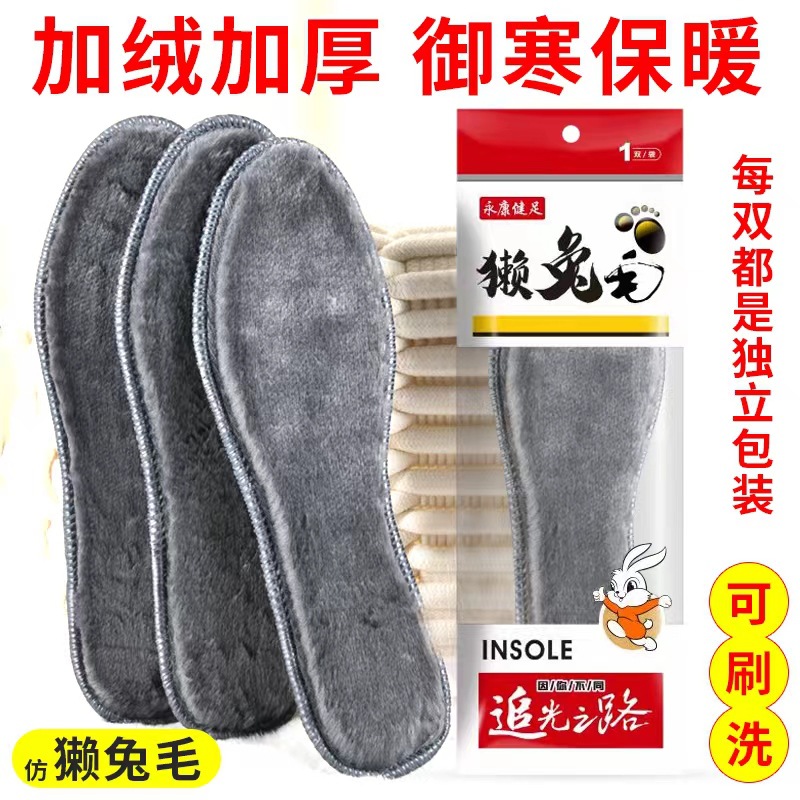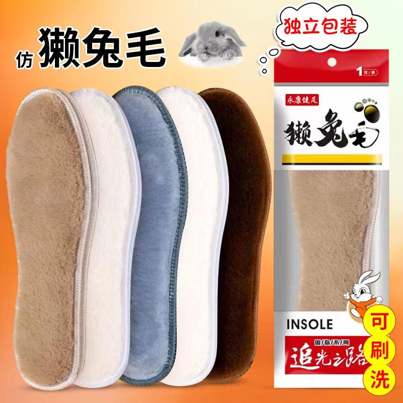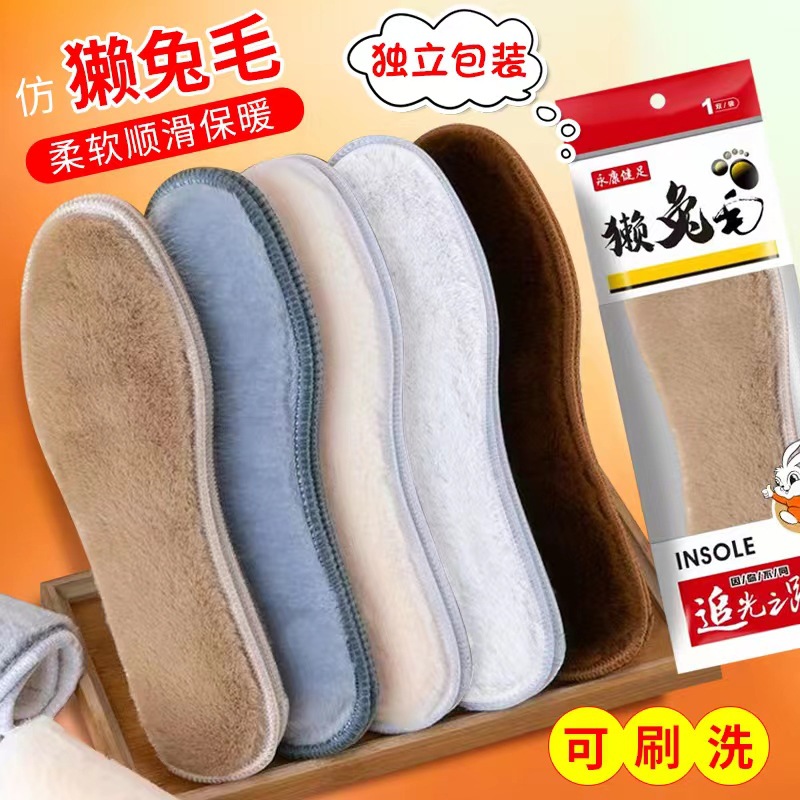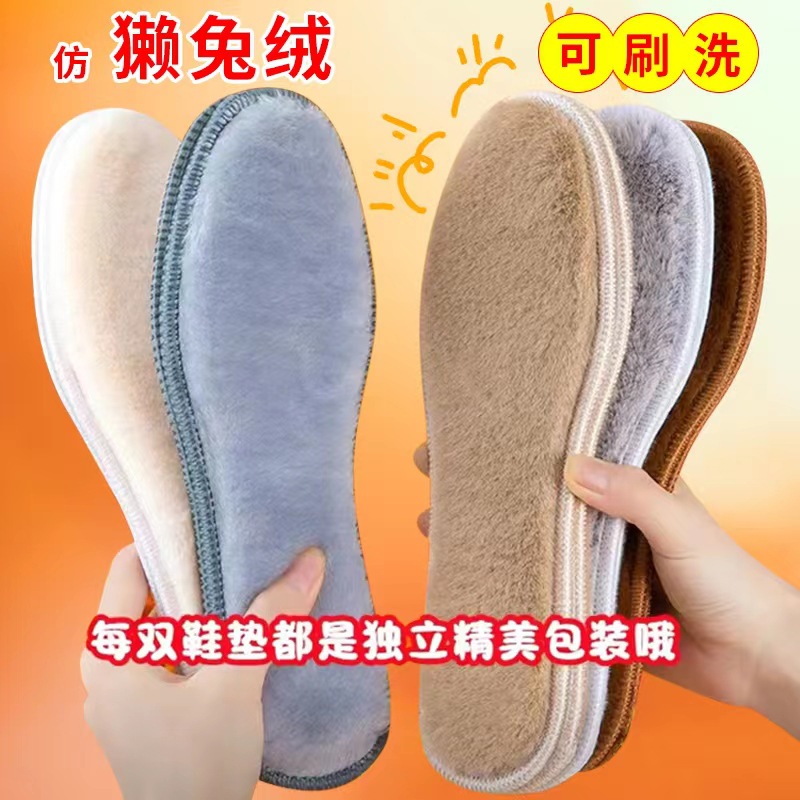 겨울용 모조 토끼털 두꺼운 플러시 깔창, 부드럽고 편안하며 온도 유지, 통기성 및 땀 흡수 기능이 있는 남녀 공용 보온 깔창
