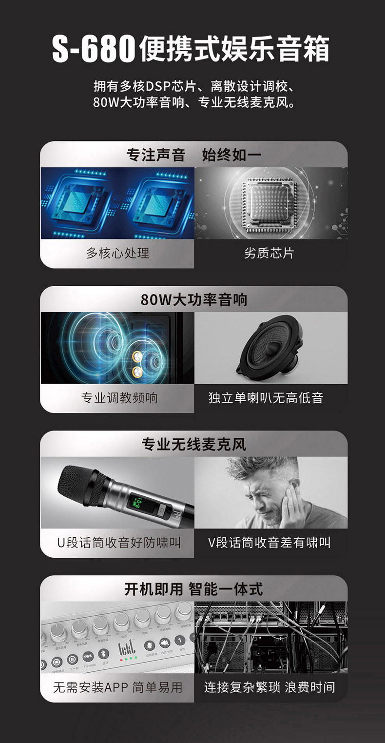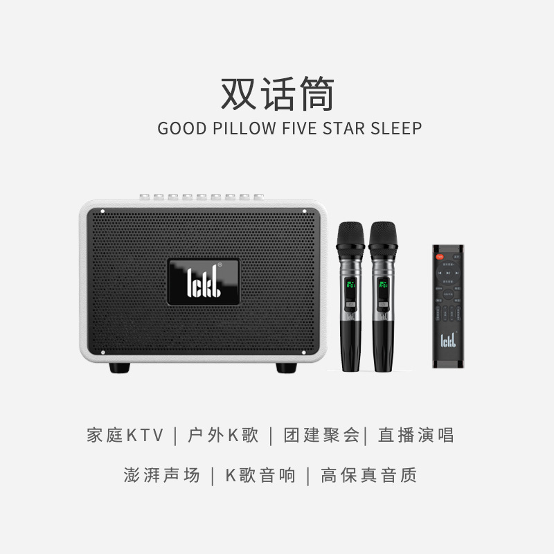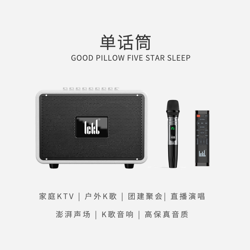 Ickb s680 오디오 블루투스 스피커 홈 야외 노래방 높은 음질 라이브 노래 무선 마이크 풀 세트
