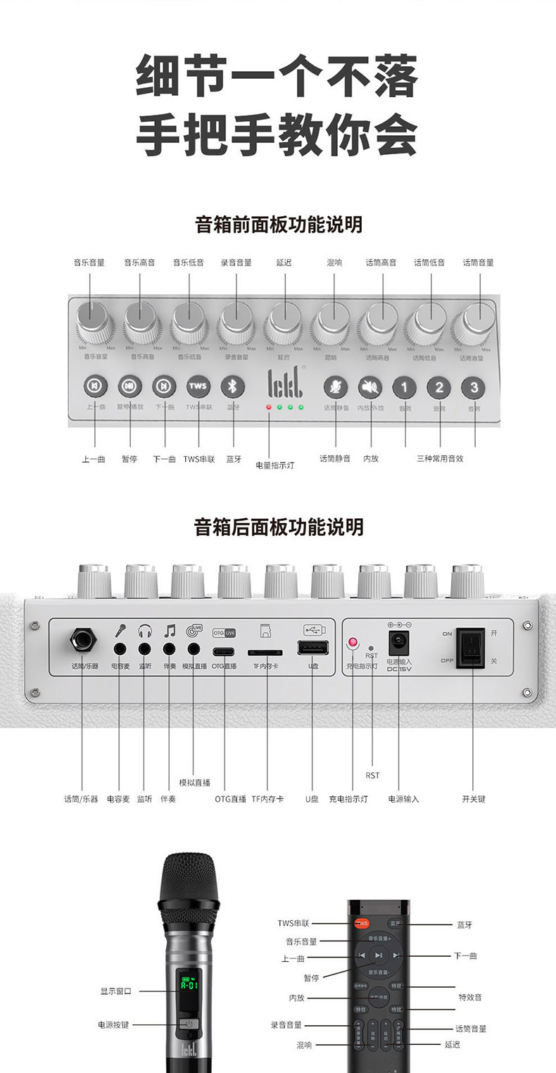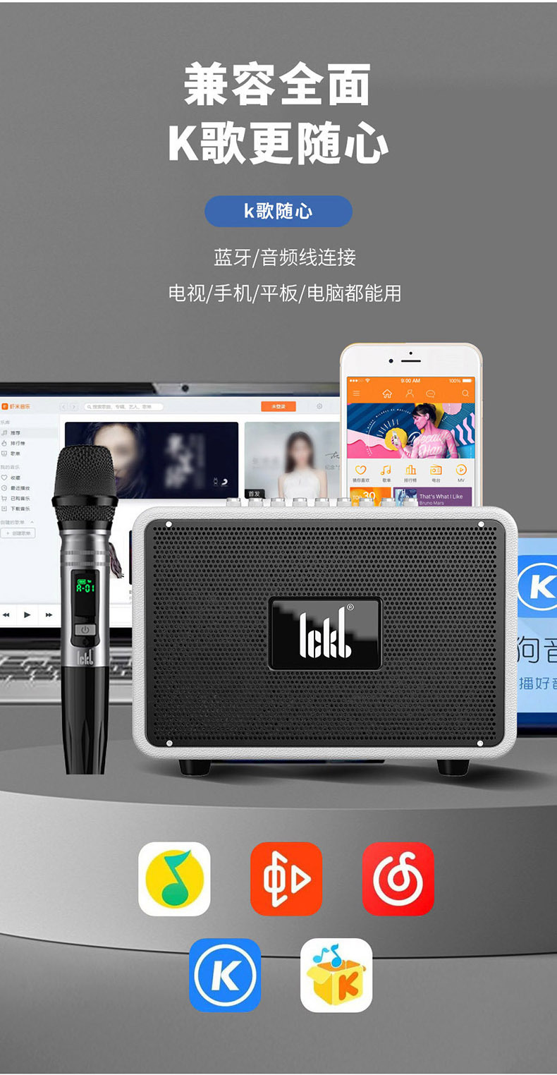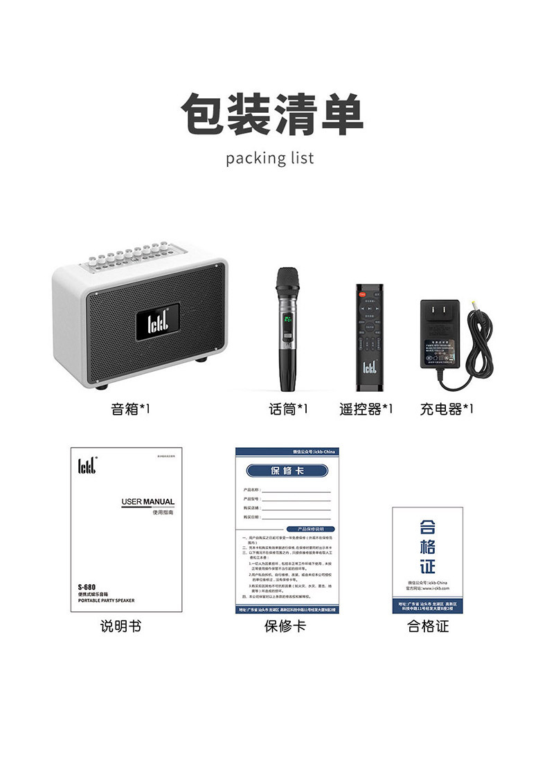 Ickb s680 오디오 블루투스 스피커 홈 야외 노래방 높은 음질 라이브 노래 무선 마이크 풀 세트스토어 가기