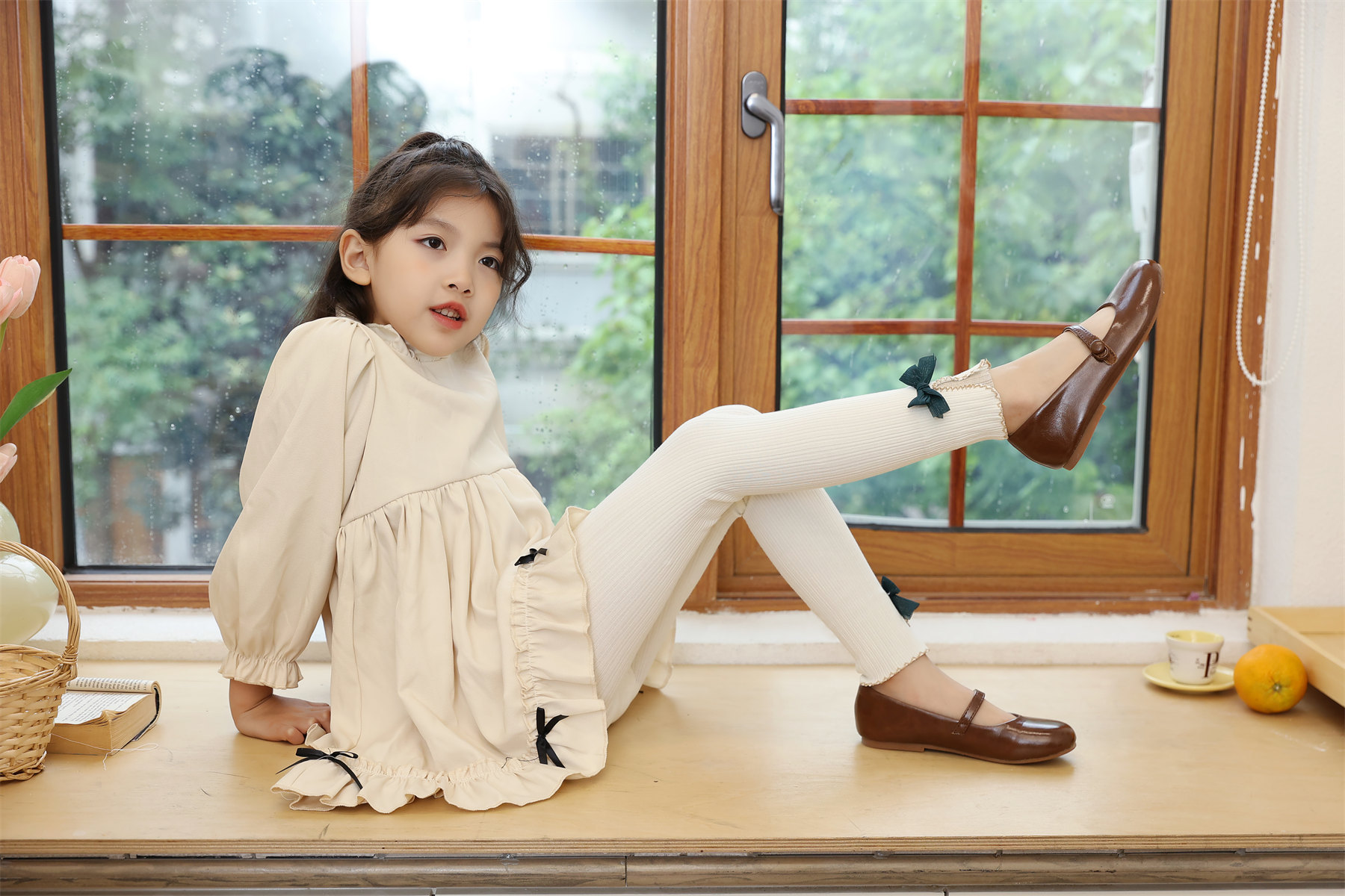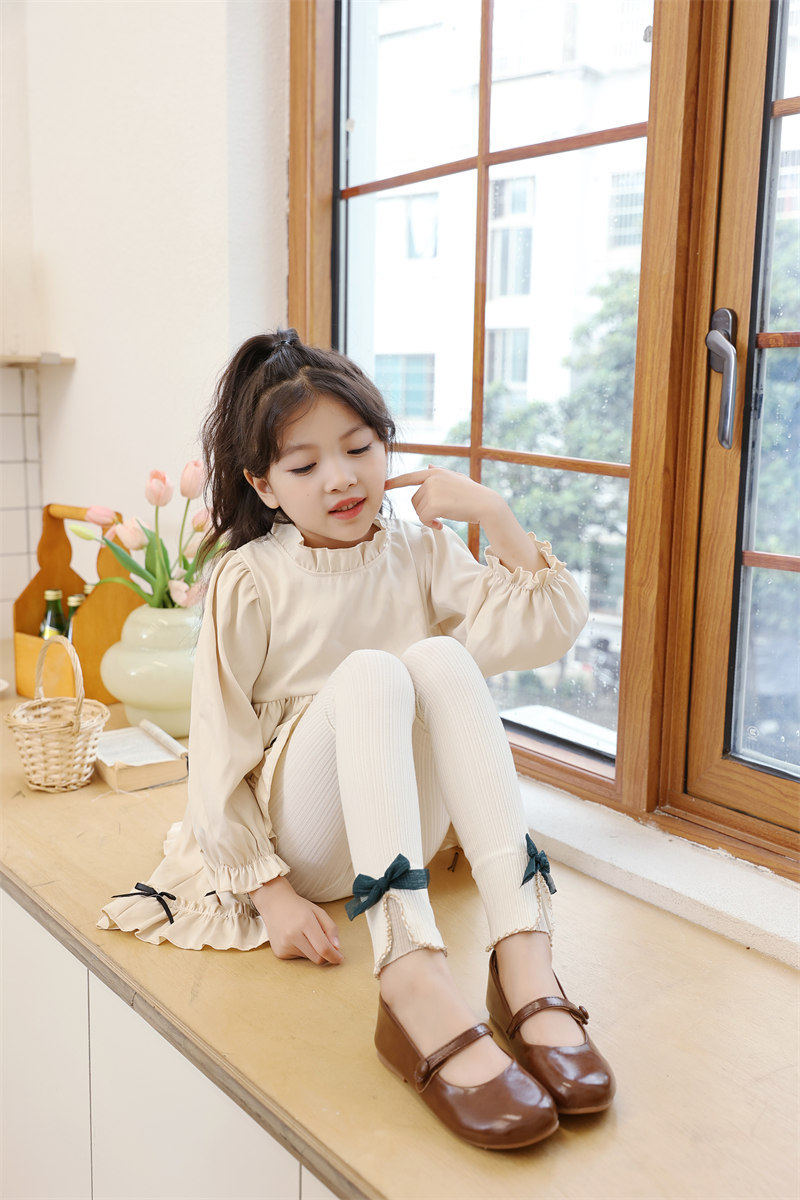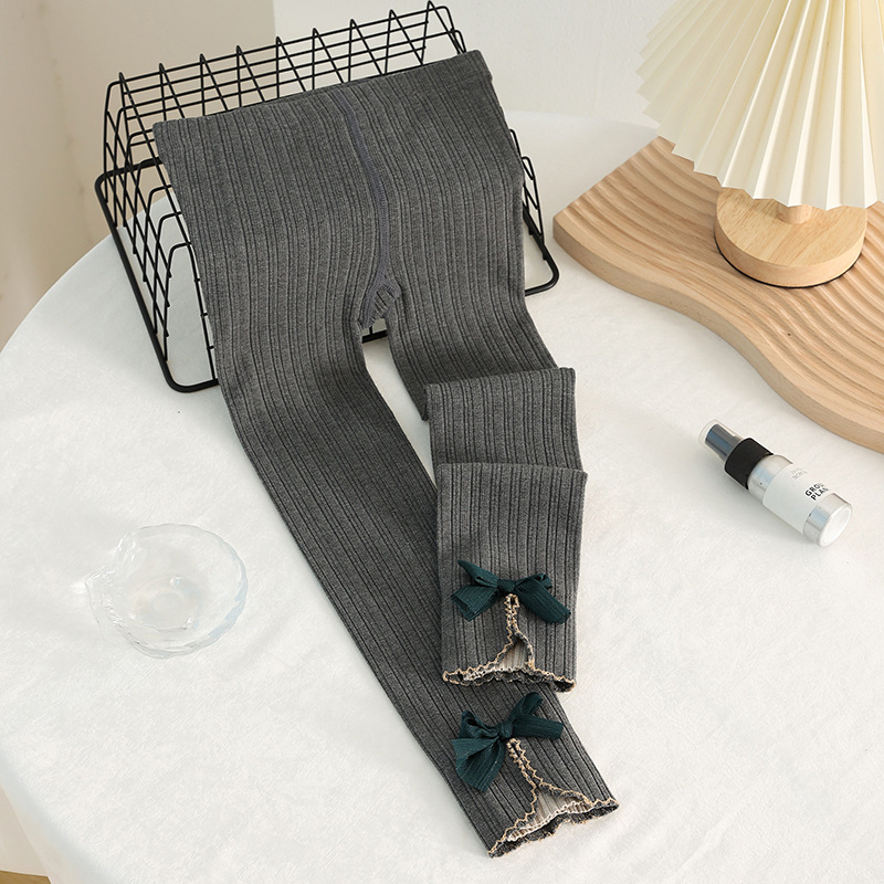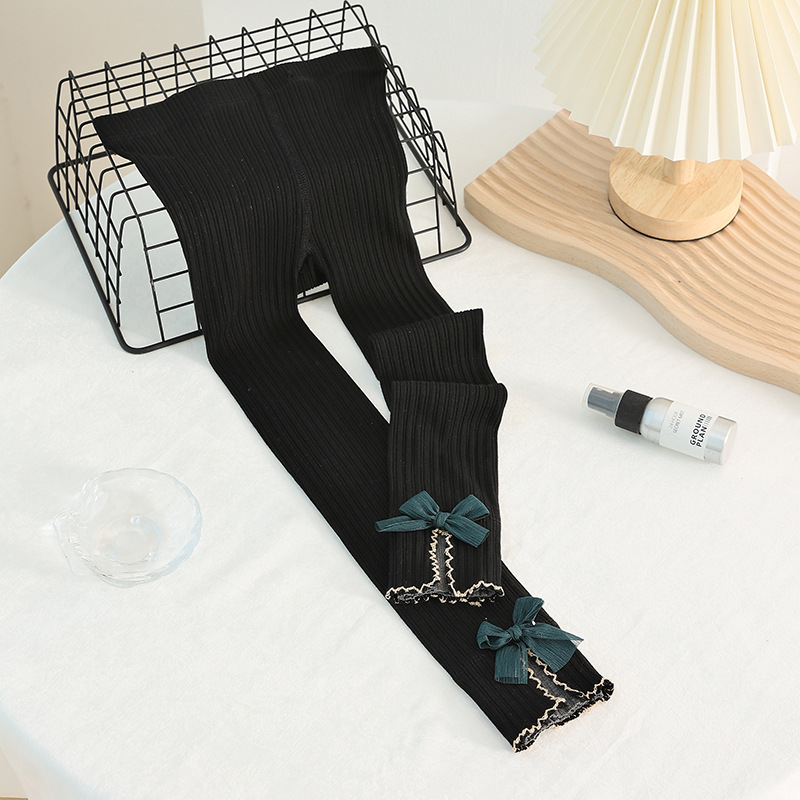 새로운 소녀 레깅스 봄과 가을 얇은 겉옷 중간 및 큰 어린이 검은 자른 서양식 어린이 바지 높은 허리 바지