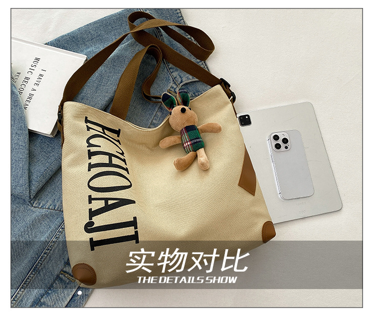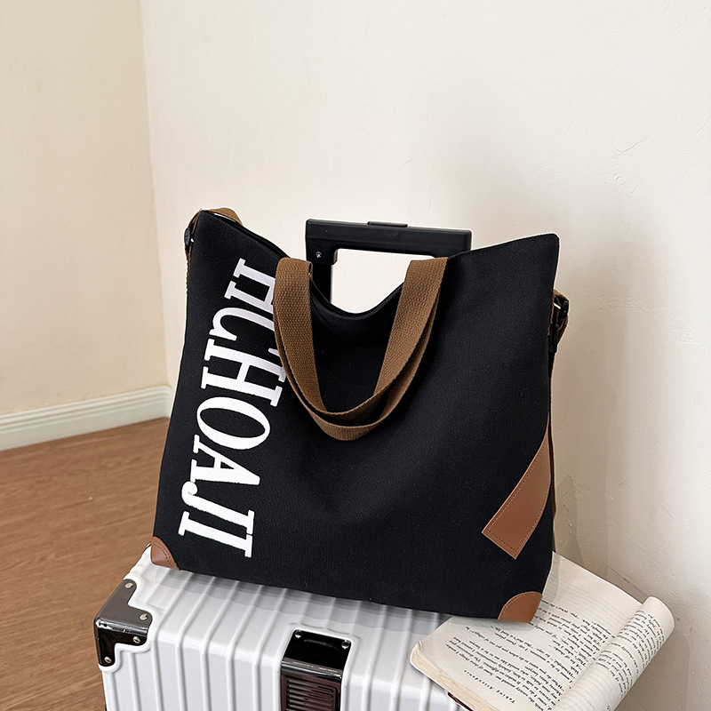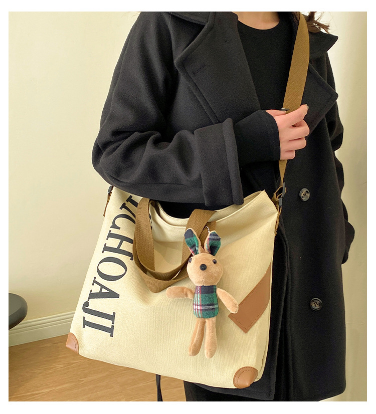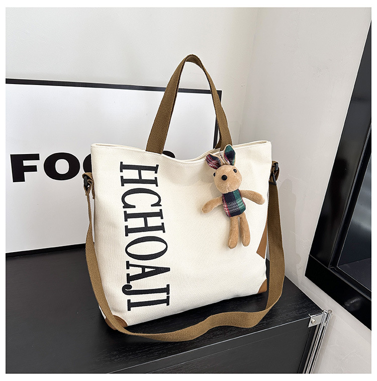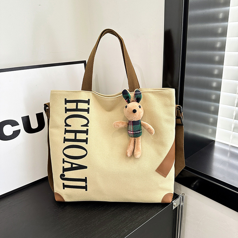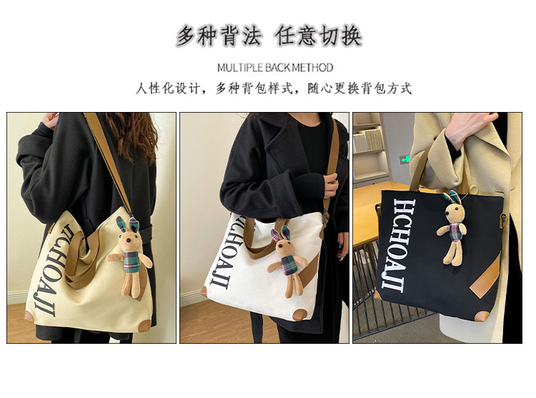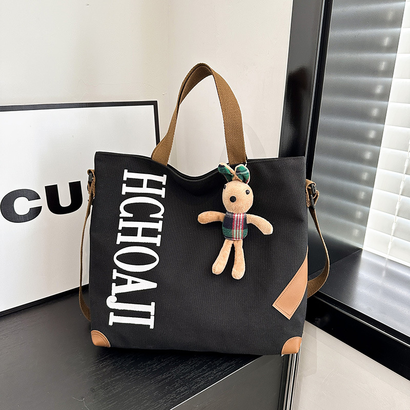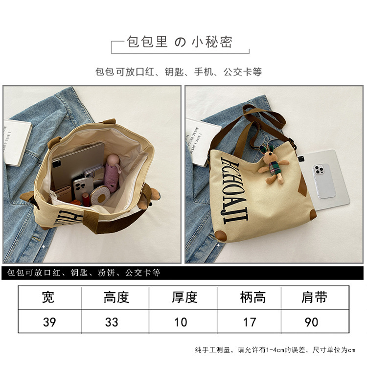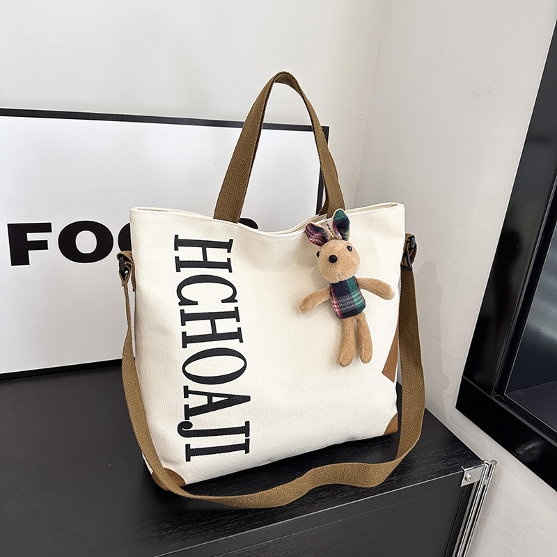 대용량 가방 여성의 귀여운 캔버스 가방 2024 새로운 가을과 겨울 어깨 가방 대학 학생 클래스 통근 토트 백