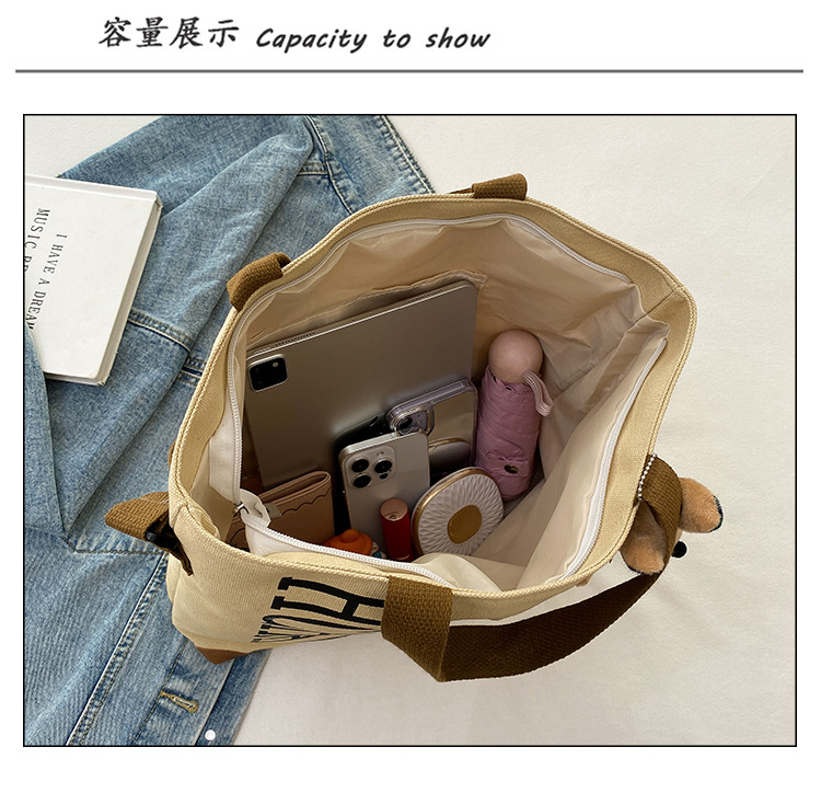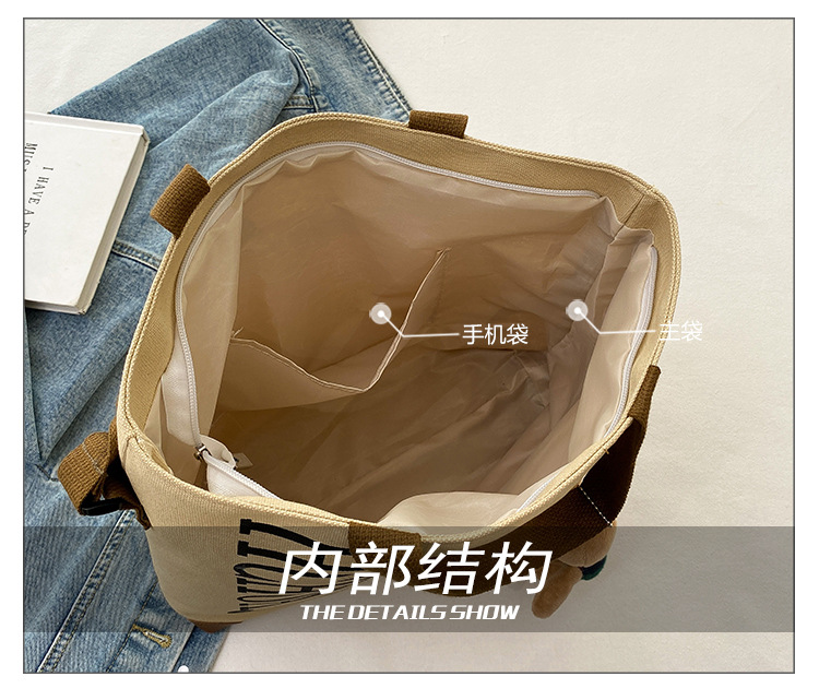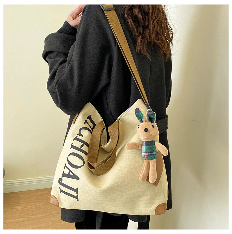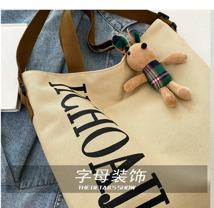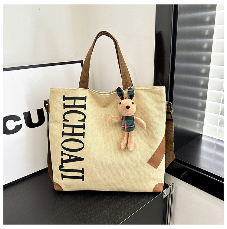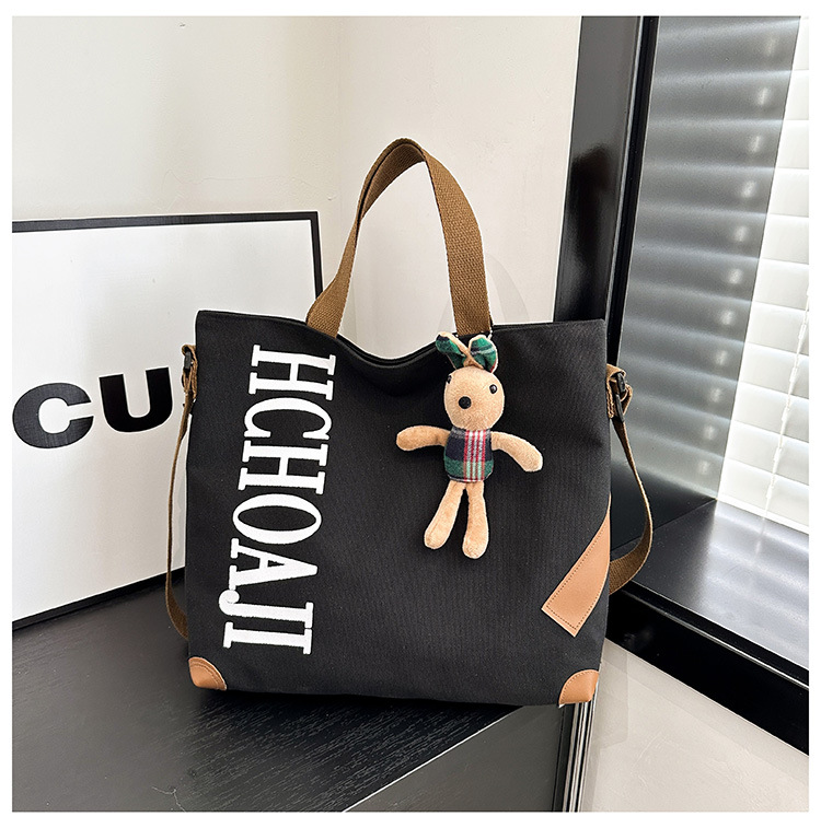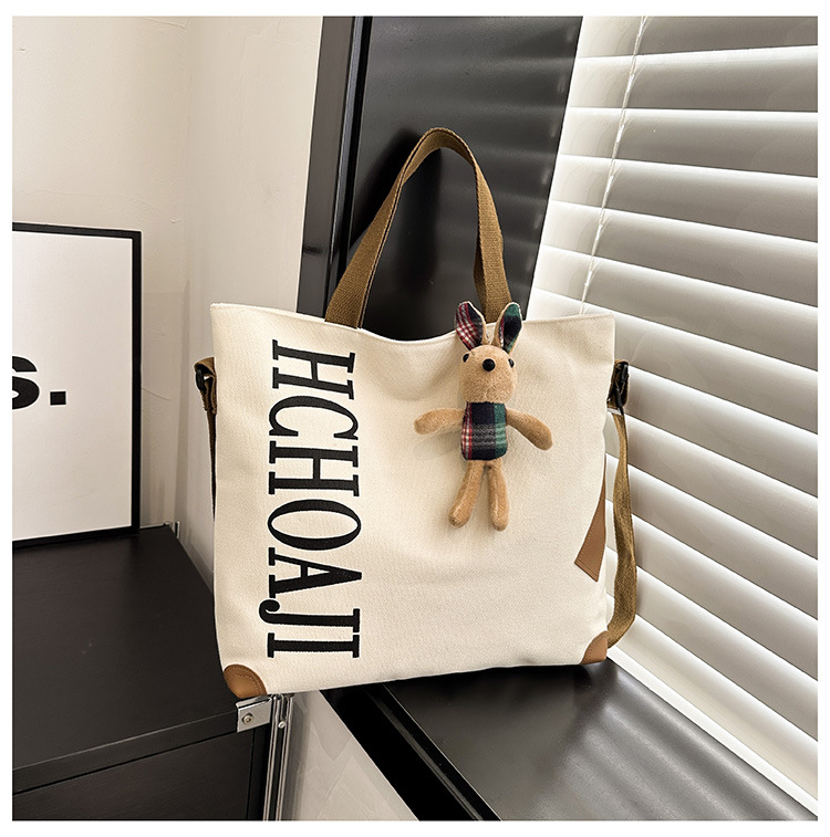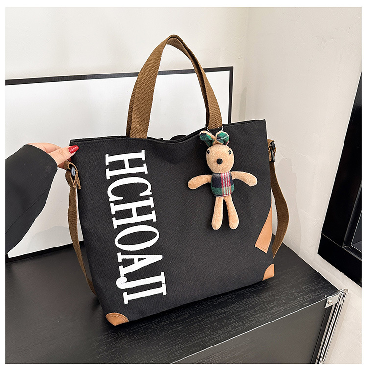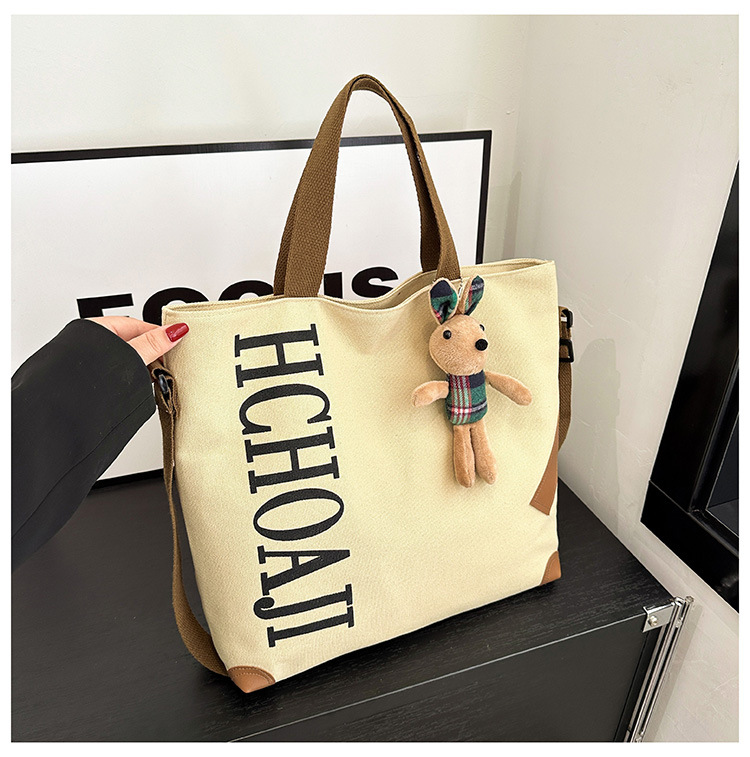 대용량 가방 여성의 귀여운 캔버스 가방 2024 새로운 가을과 겨울 어깨 가방 대학 학생 클래스 통근 토트 백