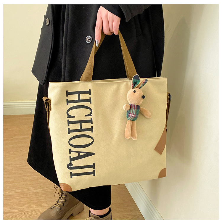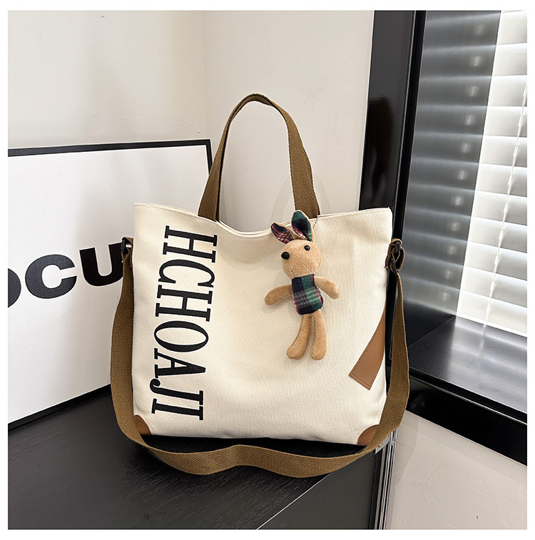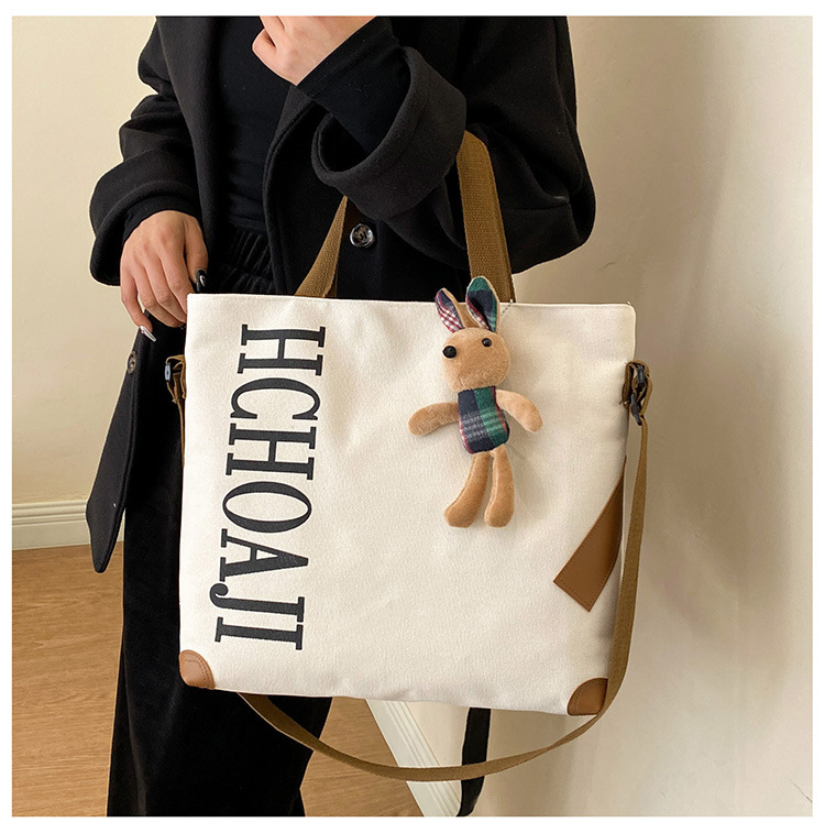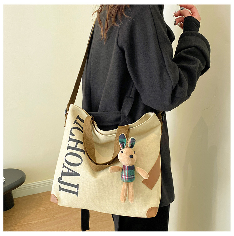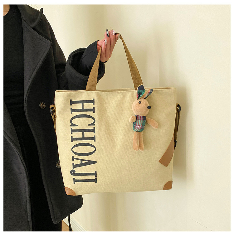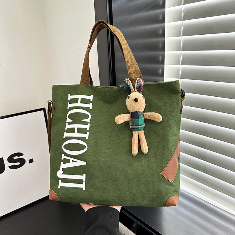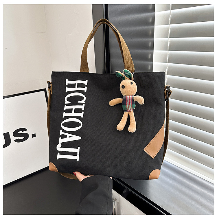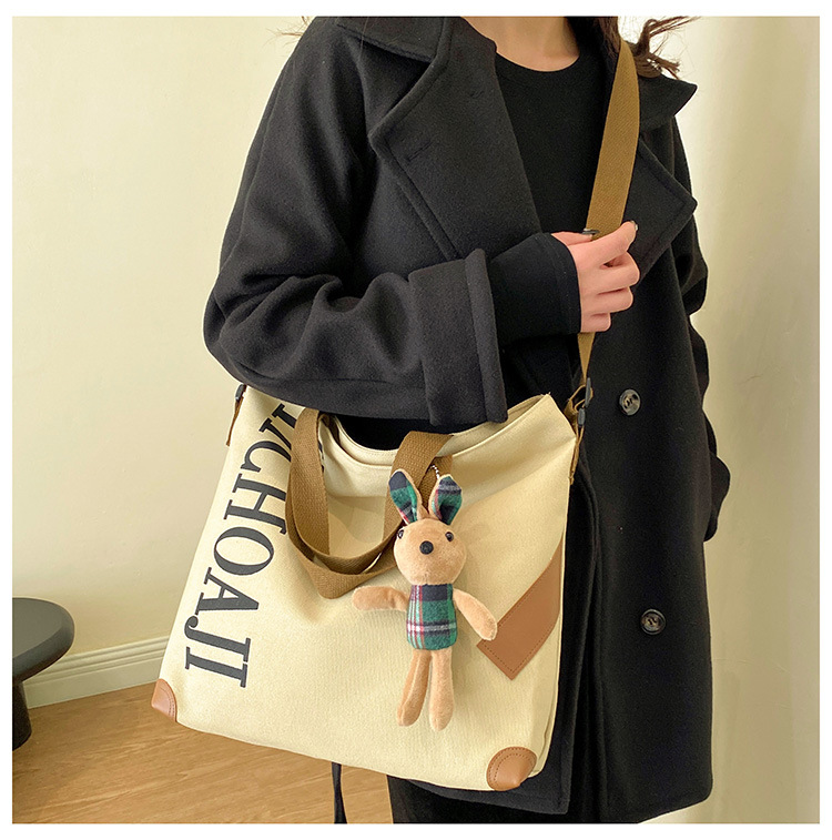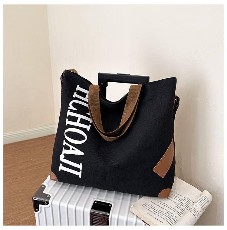 대용량 가방 여성의 귀여운 캔버스 가방 2024 새로운 가을과 겨울 어깨 가방 대학 학생 클래스 통근 토트 백