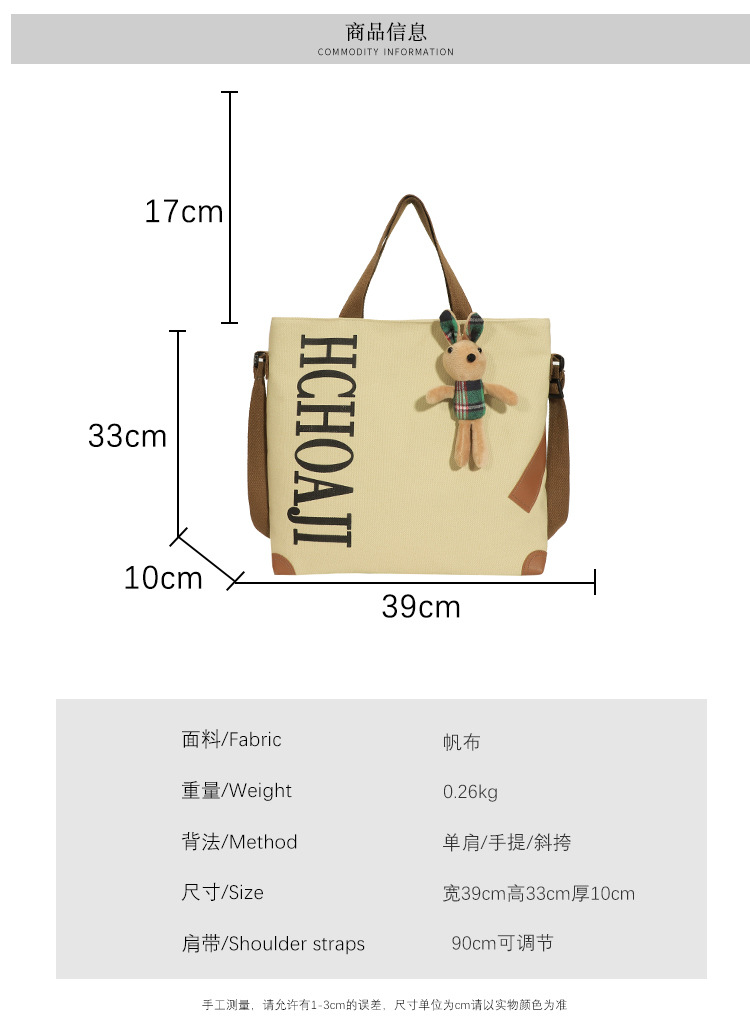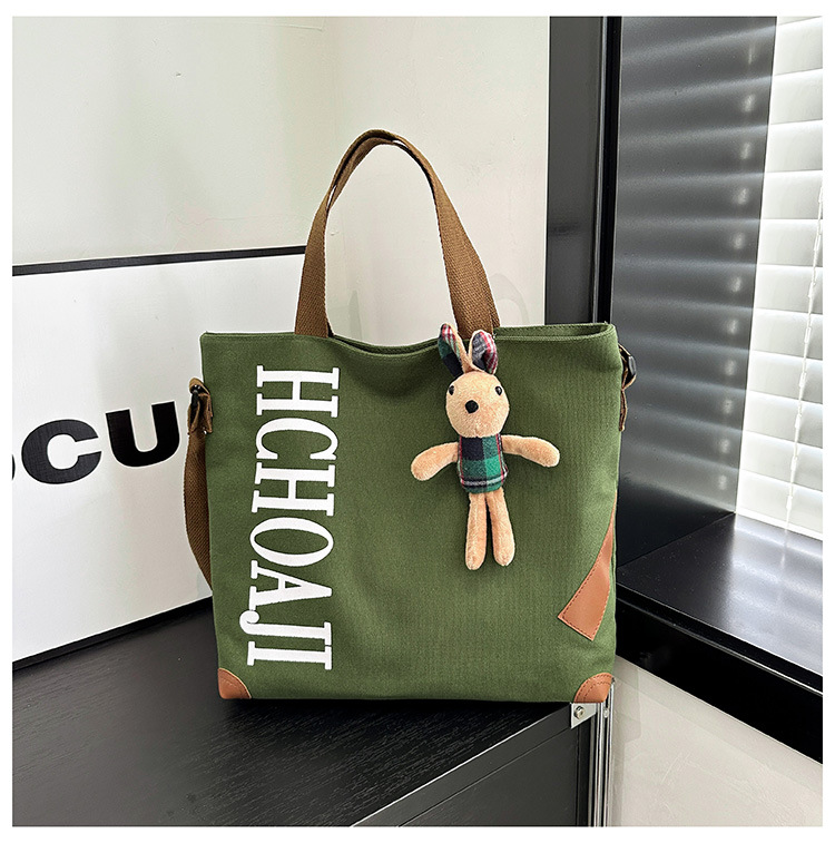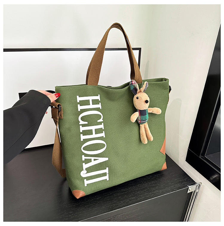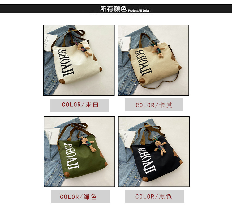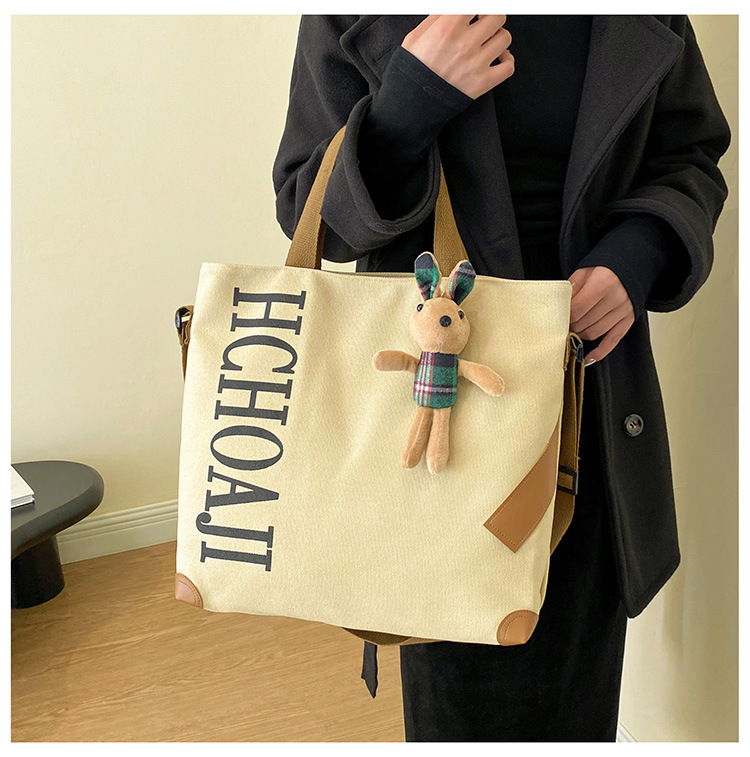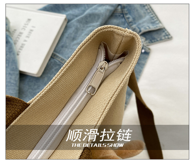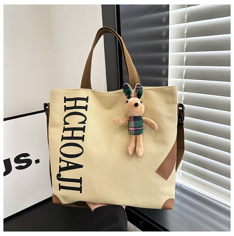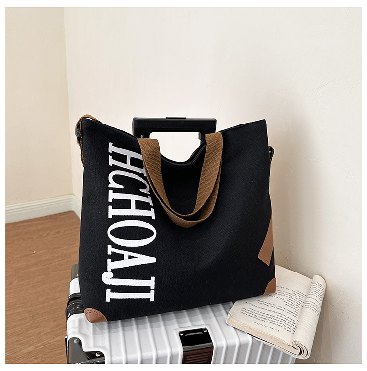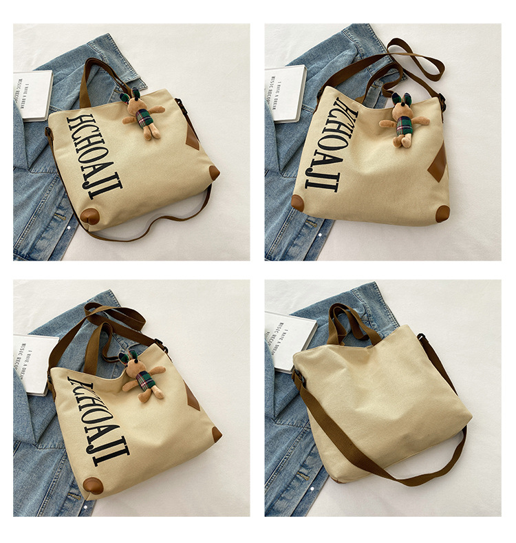 대용량 가방 여성의 귀여운 캔버스 가방 2024 새로운 가을과 겨울 어깨 가방 대학 학생 클래스 통근 토트 백