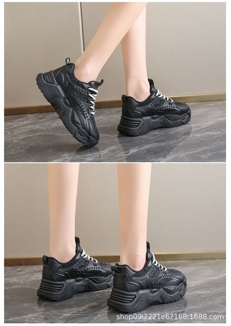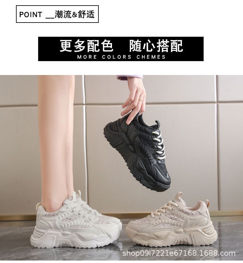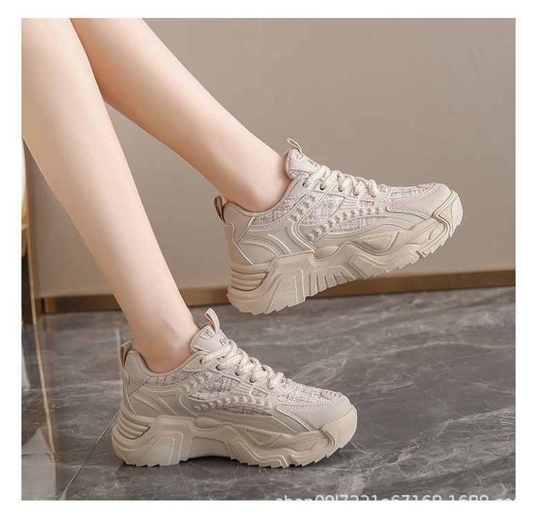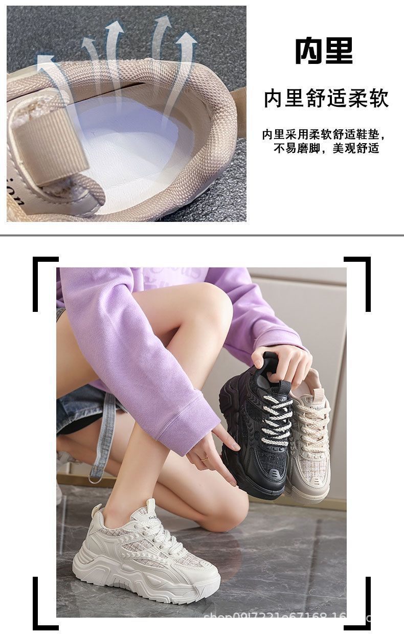 스포츠 여성 신발 2025 새로운 가을 패션 한국 스타일 싱글 신발 캐주얼 두꺼운 밑창 신발 여성 러닝 레이스 업 아빠 신발스토어 가기