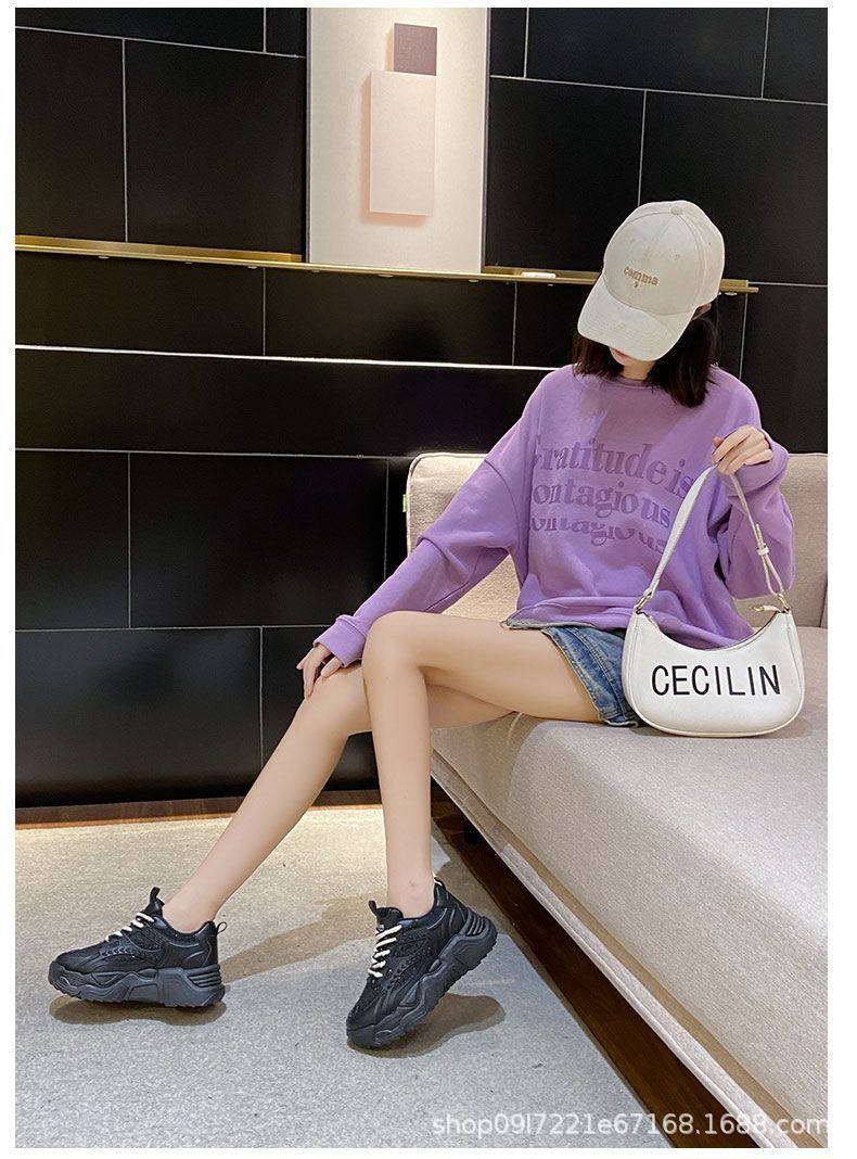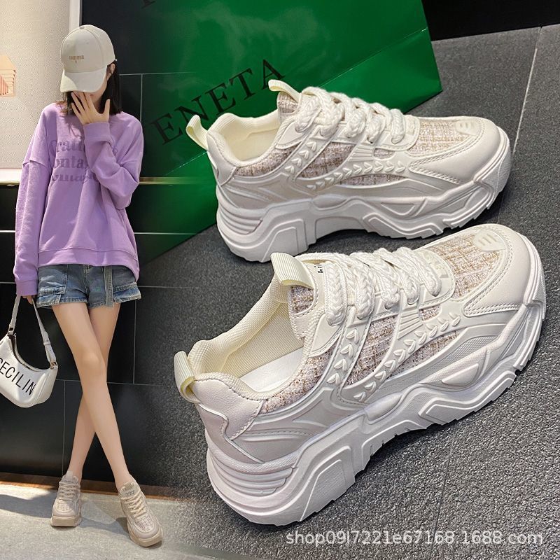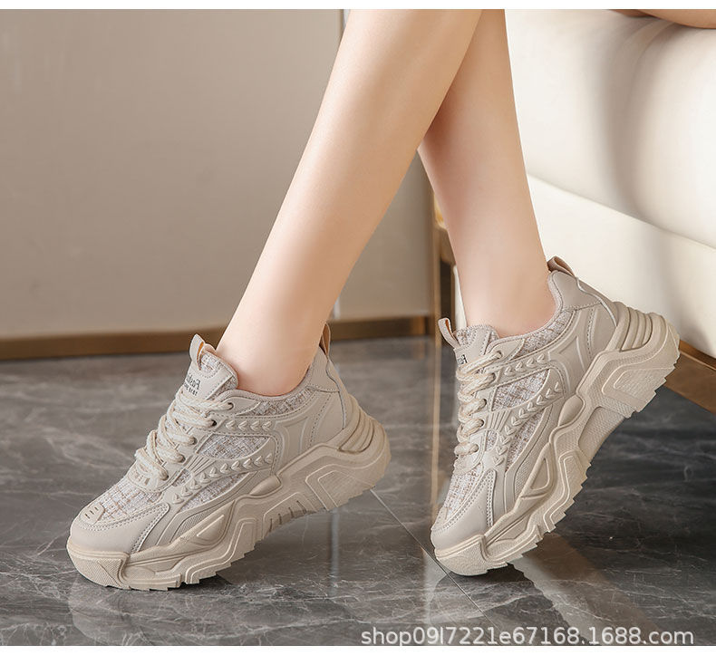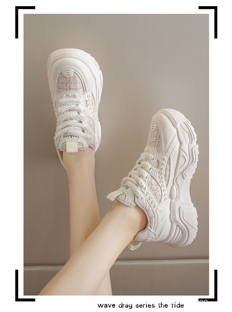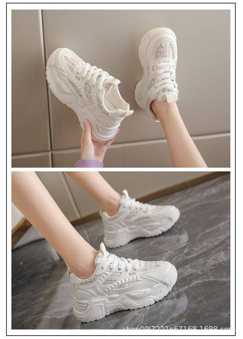 스포츠 여성 신발 2025 새로운 가을 패션 한국 스타일 싱글 신발 캐주얼 두꺼운 밑창 신발 여성 러닝 레이스 업 아빠 신발스토어 가기