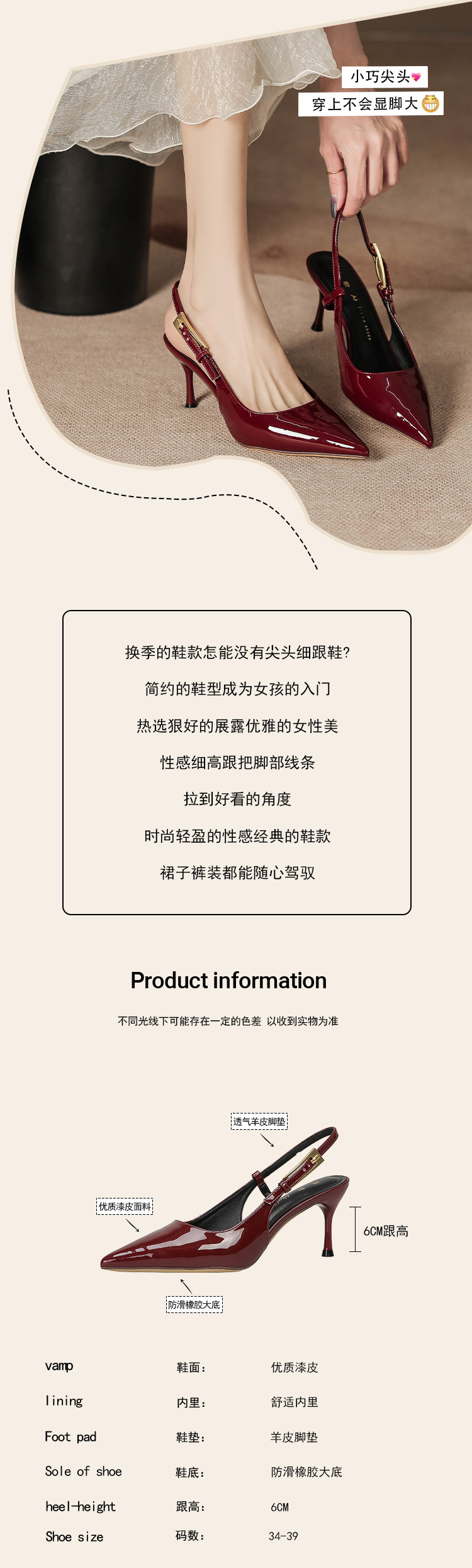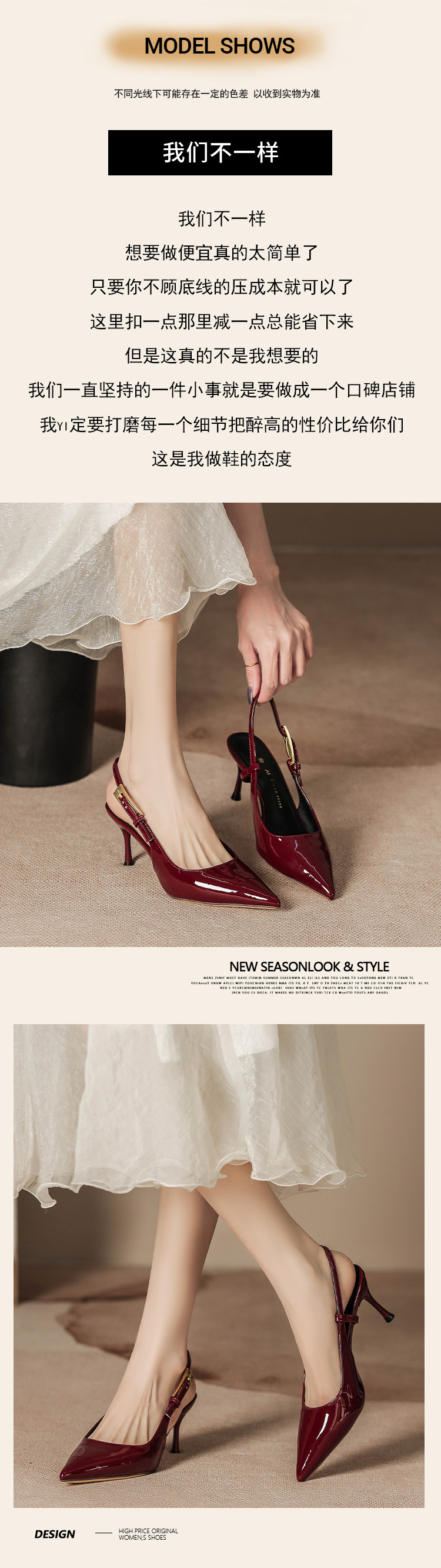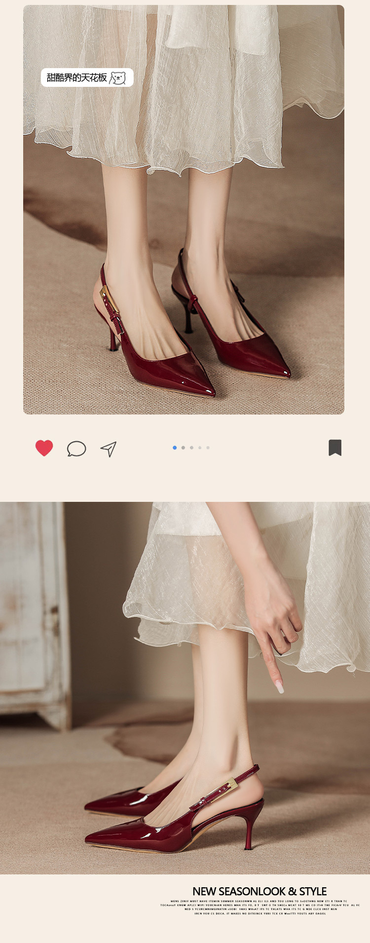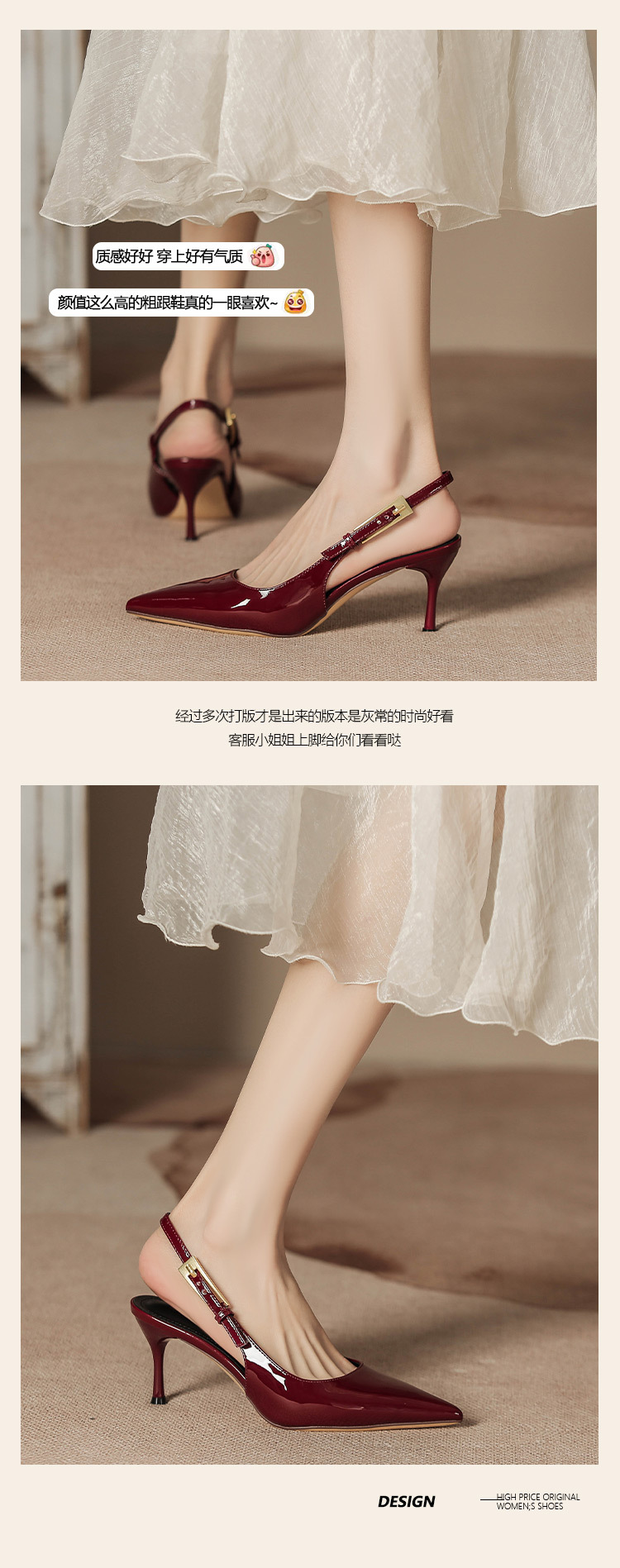 H1933-39 버건디 하이힐 샌들 여성 반 닫힌 발가락 속이 빈 뾰족한 스틸레토 힐 여성 신발 샤넬 스타일 신발 여성스토어 가기