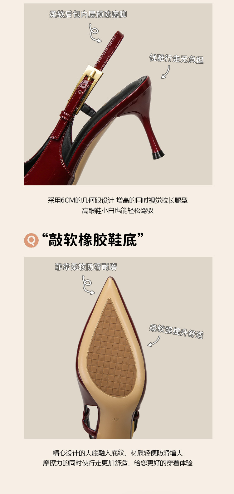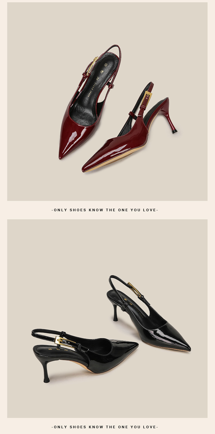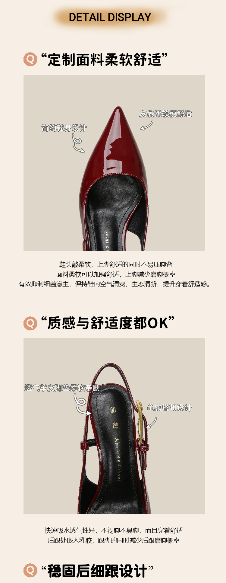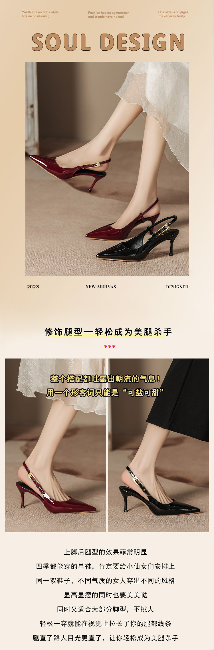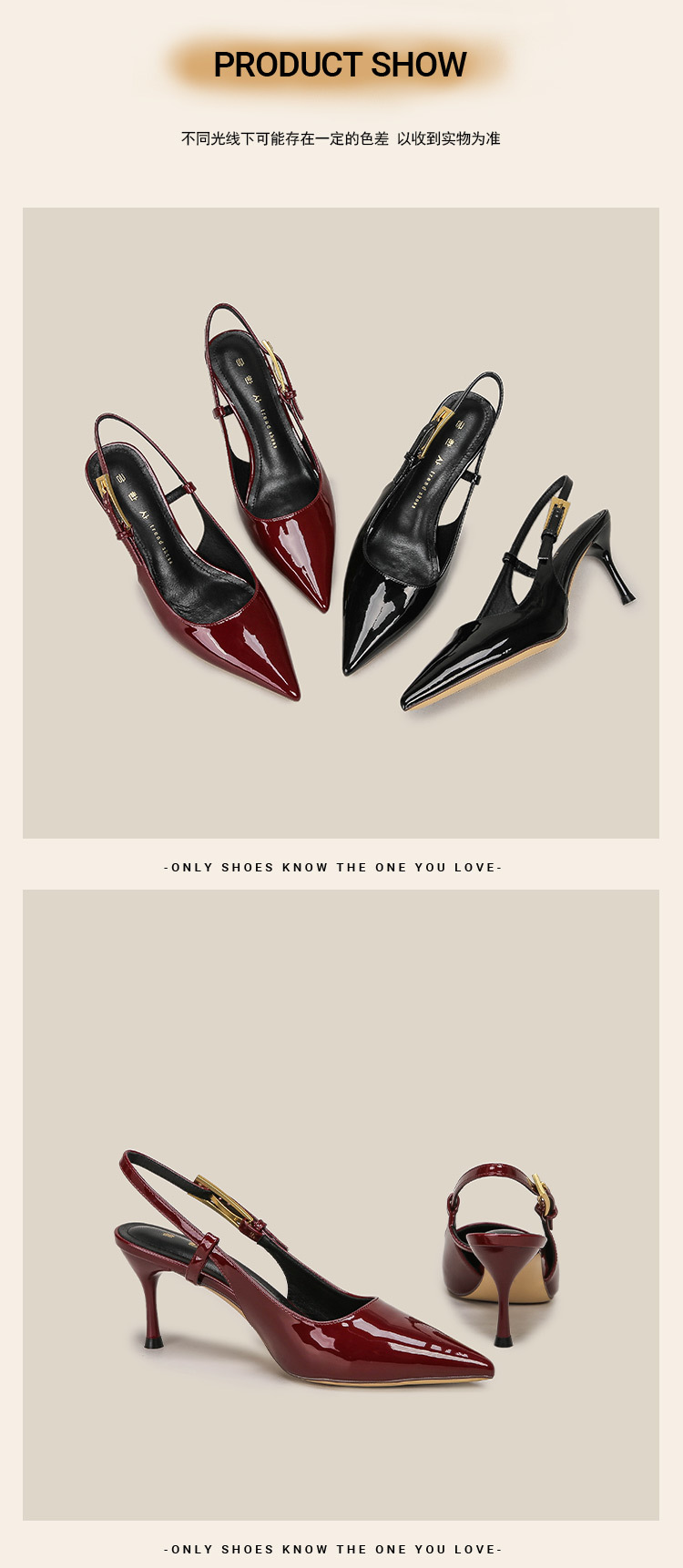 H1933-39 버건디 하이힐 샌들 여성 반 닫힌 발가락 속이 빈 뾰족한 스틸레토 힐 여성 신발 샤넬 스타일 신발 여성스토어 가기
