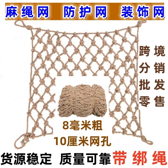 [도매] 대마 로프 그물 어린이 계단 발코니 보호 그물 명승지 울타리 그물 사진 벽 장식 그물 천장 그물