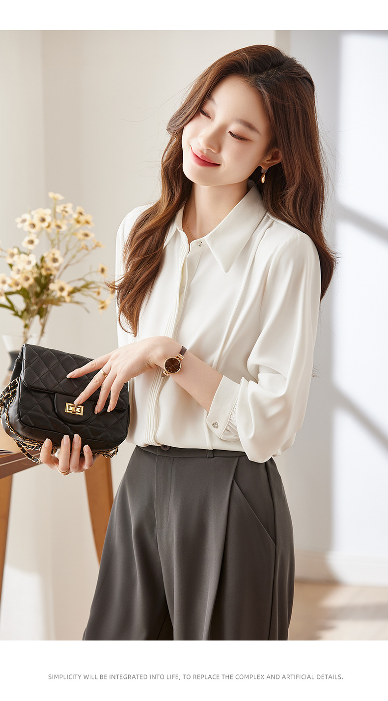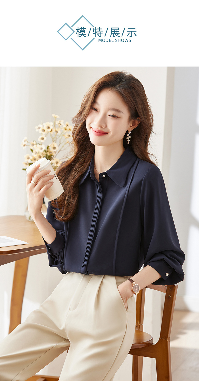 여성을위한 쉬폰 셔츠 2024 봄 새로운 디자인 유행 서양식 최고 전문 기질 드레이프 긴 소매 셔츠스토어 가기