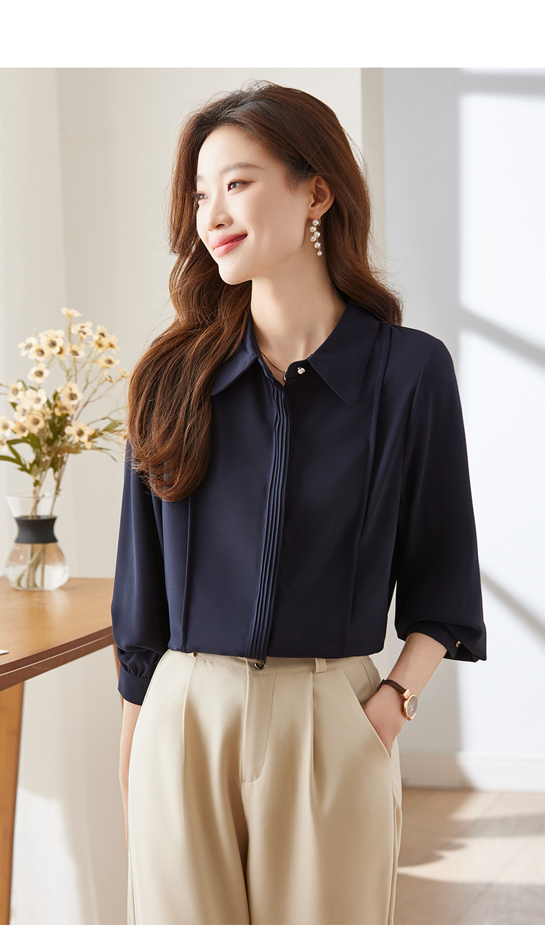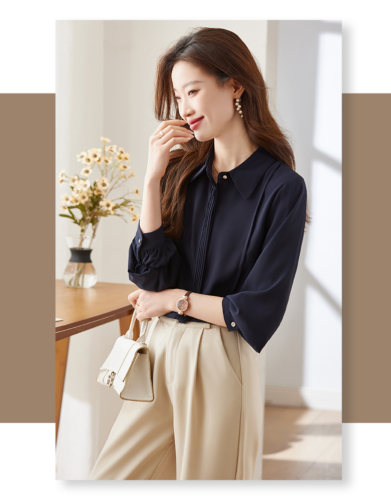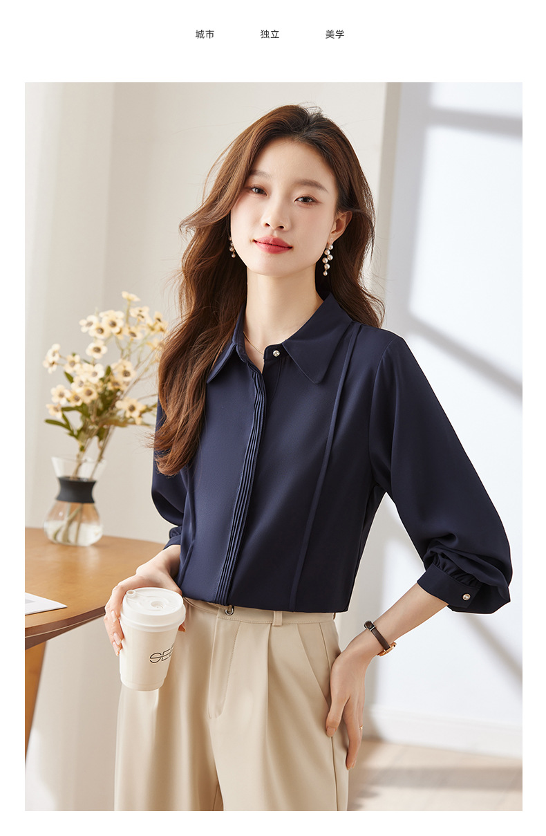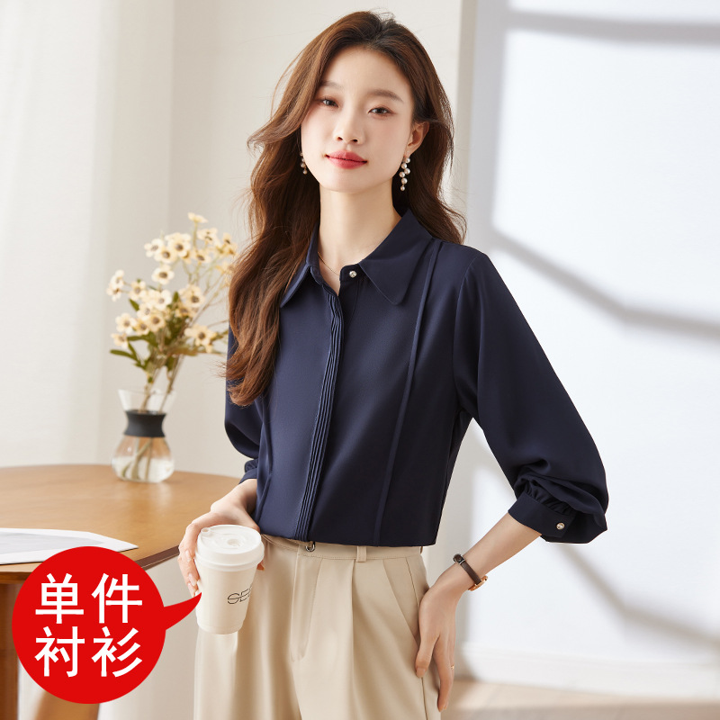 여성을위한 쉬폰 셔츠 2024 봄 새로운 디자인 유행 서양식 최고 전문 기질 드레이프 긴 소매 셔츠