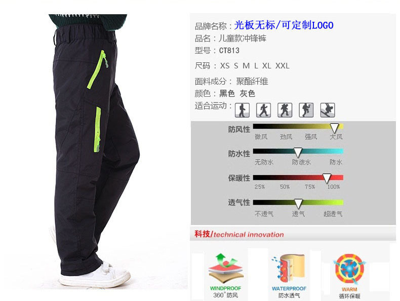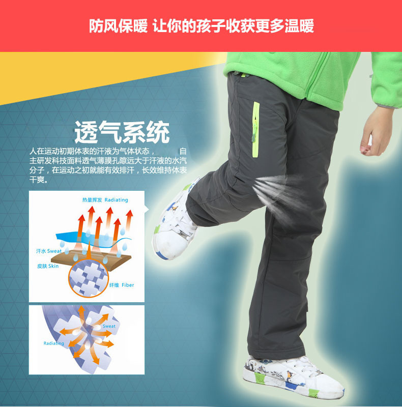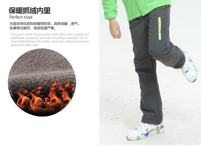 가을과 겨울 야외 어린이 부드러운 쉘 바지 소년 소녀 방풍 기모 중형 및 대형 어린이 따뜻한 등산 바지