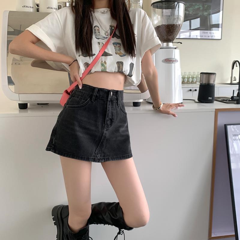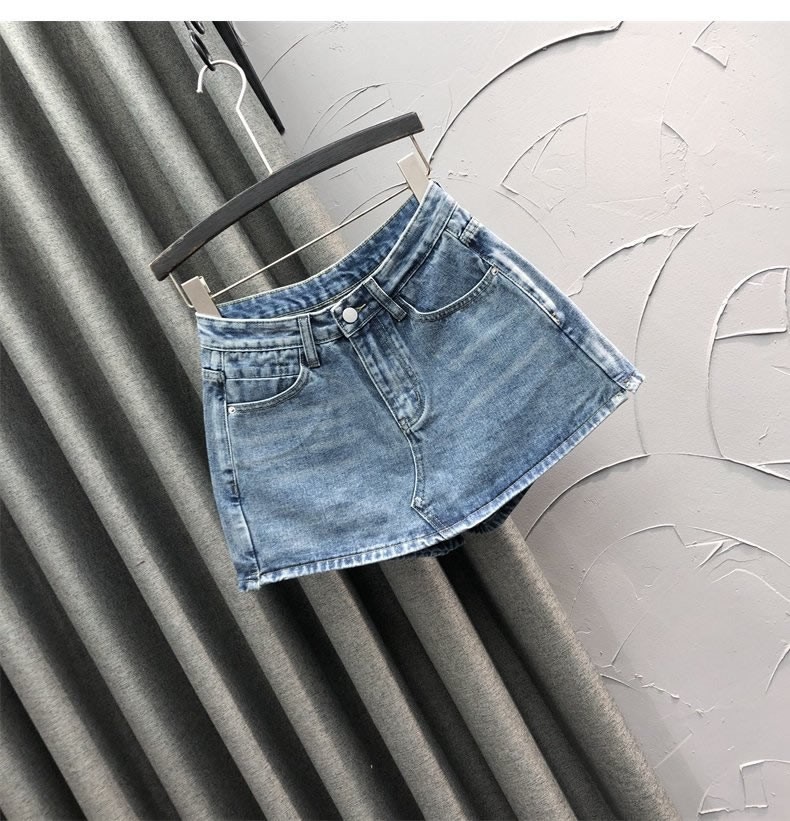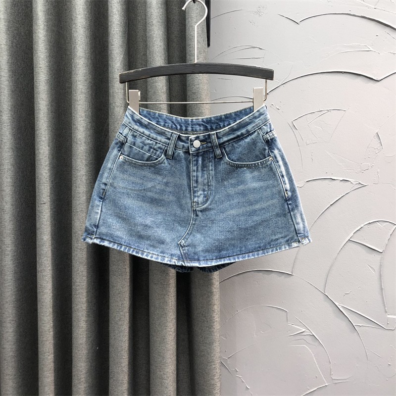 노출 방지 데님 스커트 여성의 봄과 가을 2023 새로운 플러스 사이즈 통통녀 슬리밍 핫 소녀 시스 A 라인 스커트 바지스토어 가기