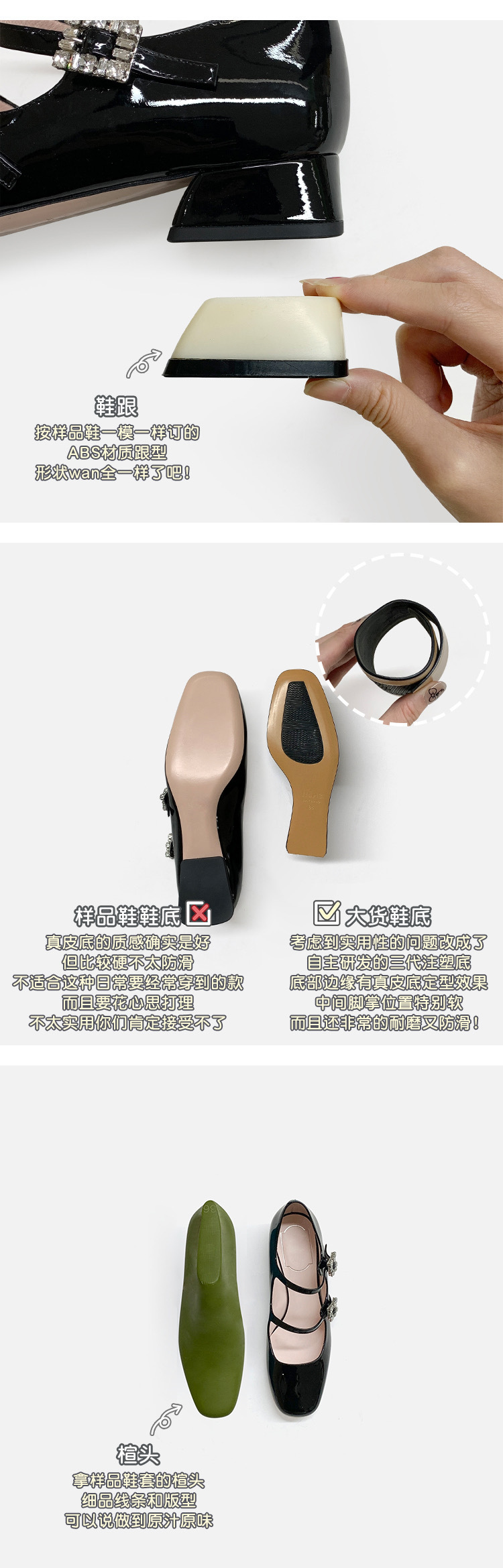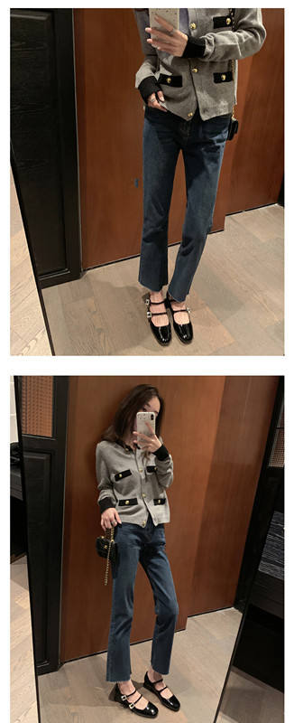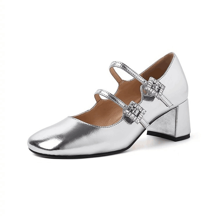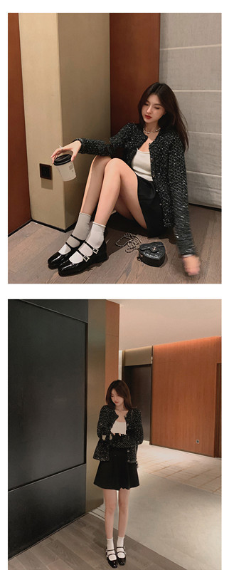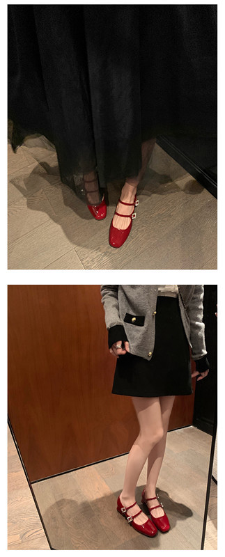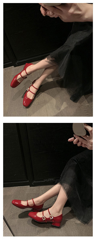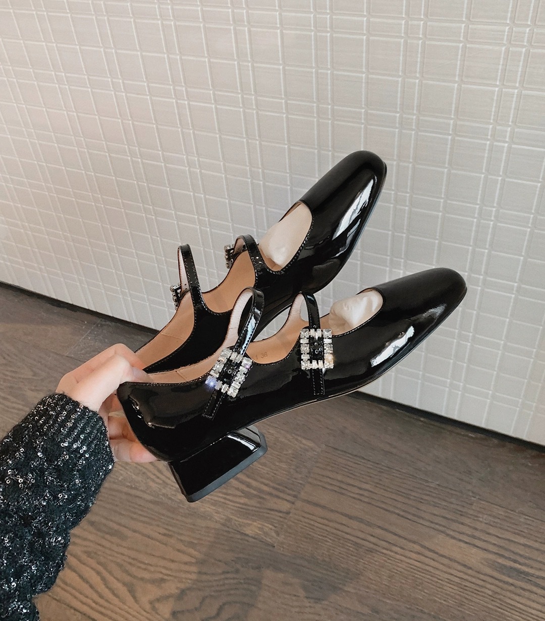 프렌치 스타일 메리제인 슈즈, 봄철 원스트랩, 라인스톤 스퀘어토 하이힐, 두꺼운 굽 가죽 슈즈, 레트로스토어 가기