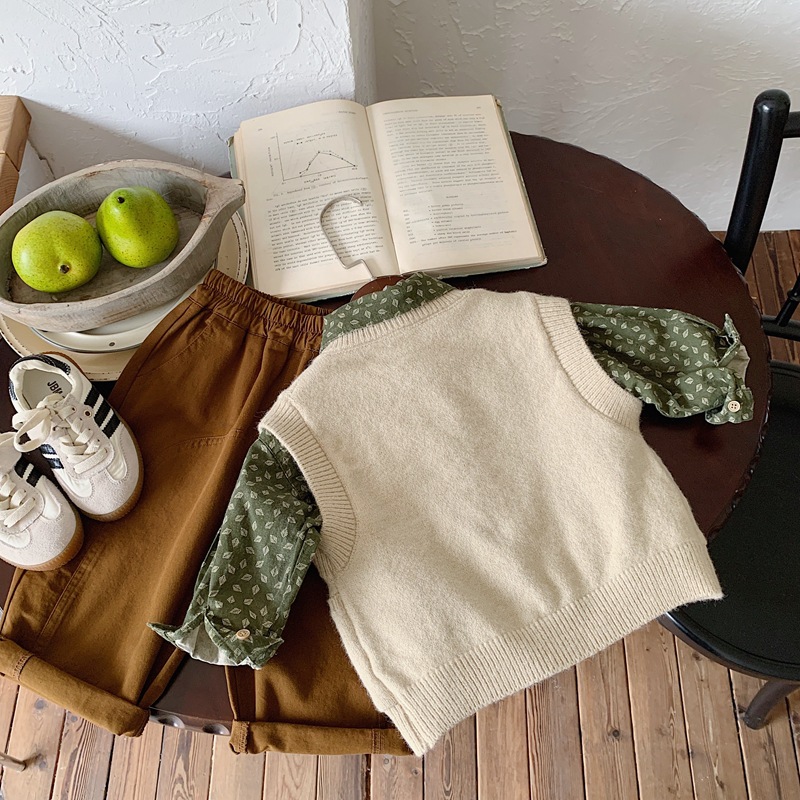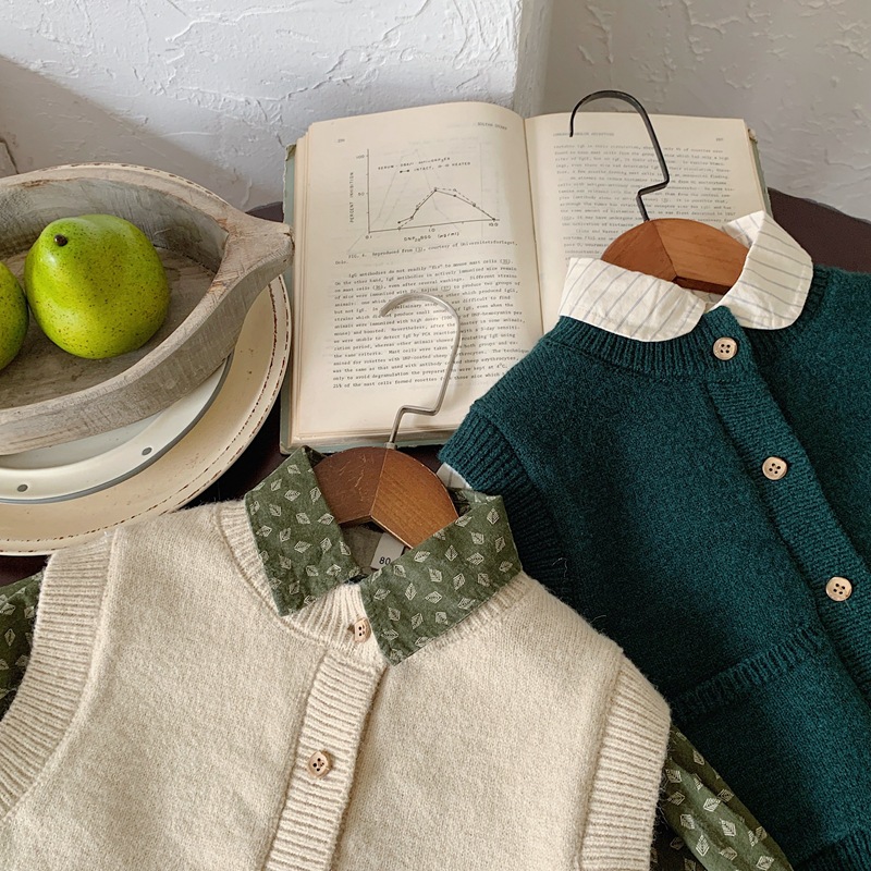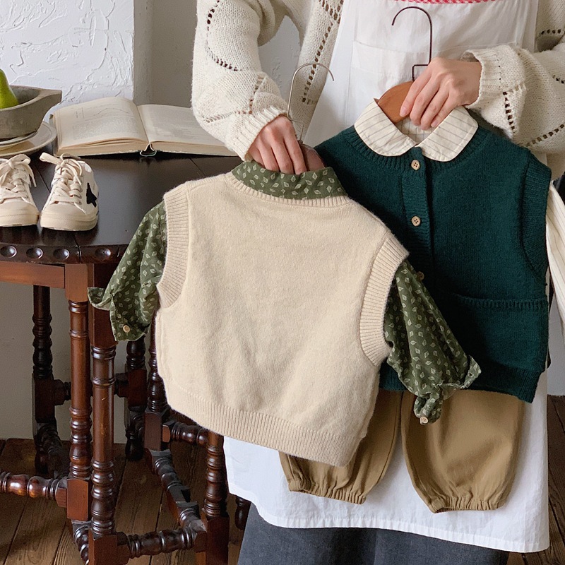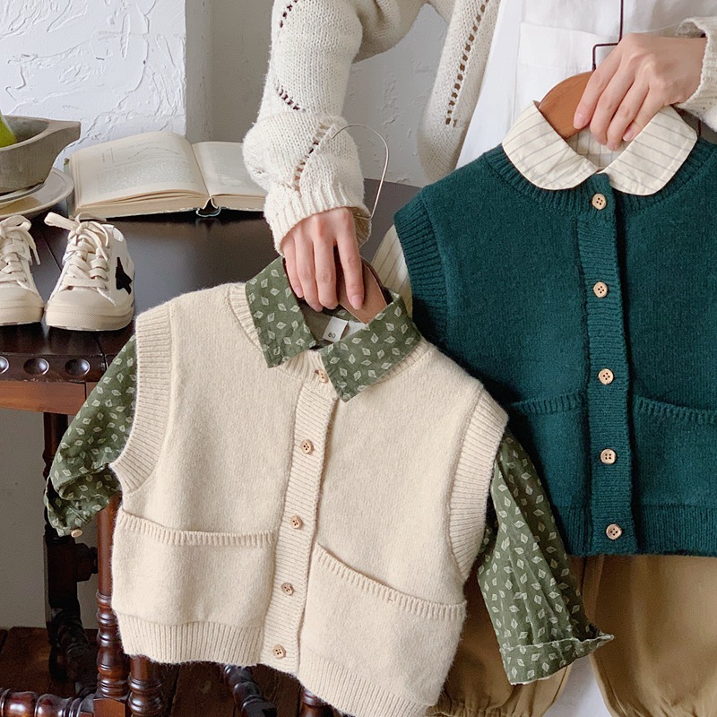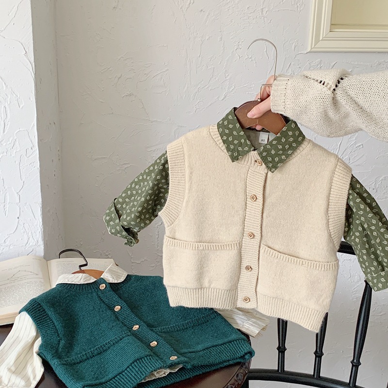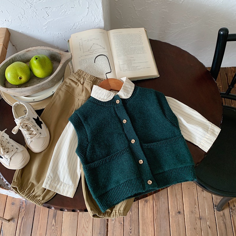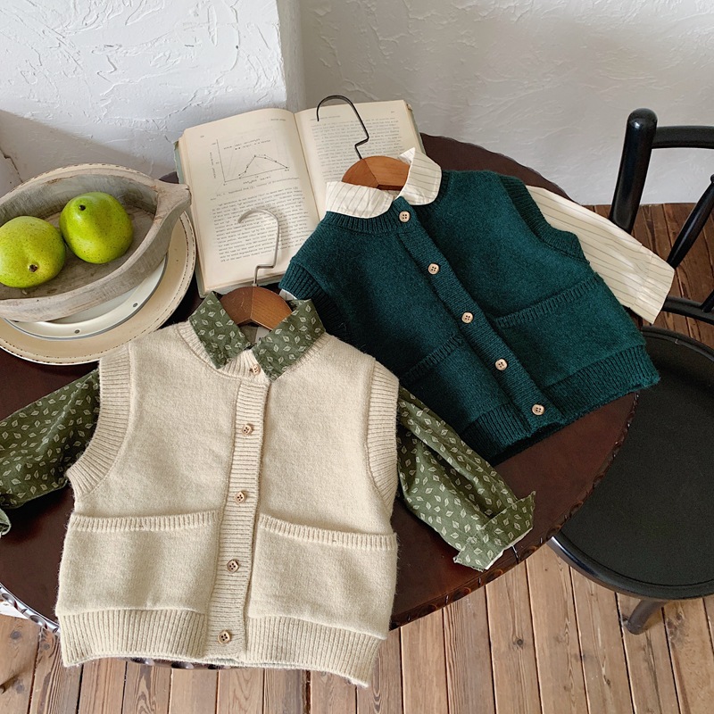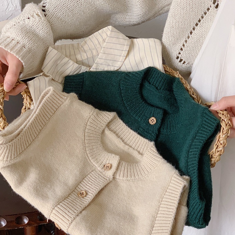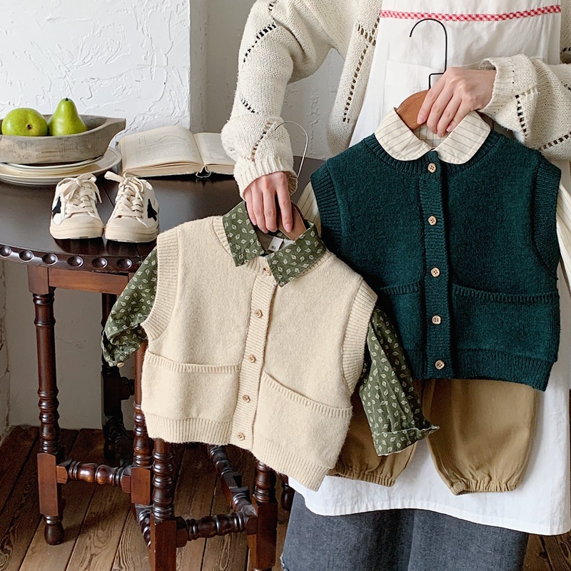 소년과 소녀 니트 카디건 조끼 2024 새로운 봄과 가을 어린이 한국 스타일 서양식 조끼 봄 느슨한 버전스토어 가기