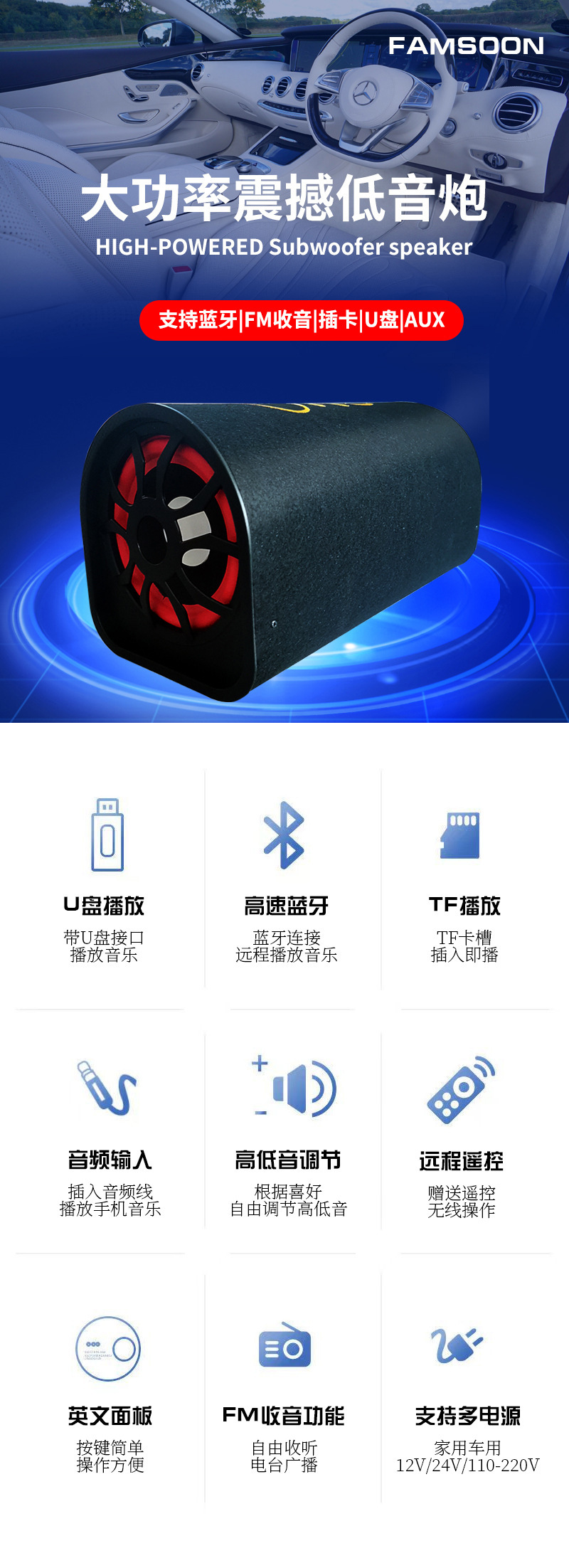고출력 서브우퍼 블루투스 USB 카드 터널 오디오 도매 제조업체 직접 공급 10inch 자동차 자동차 오디오스토어 가기
