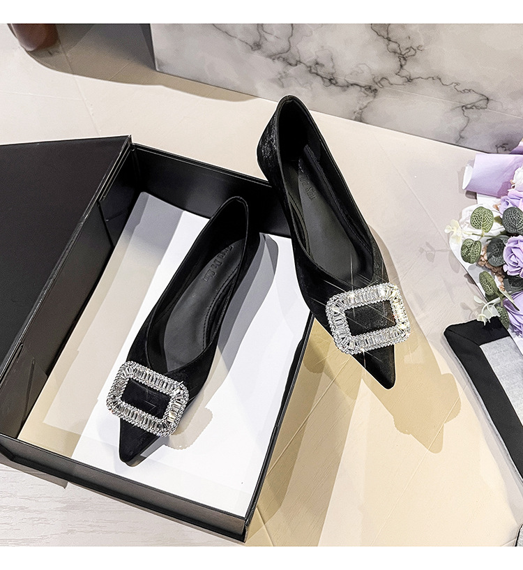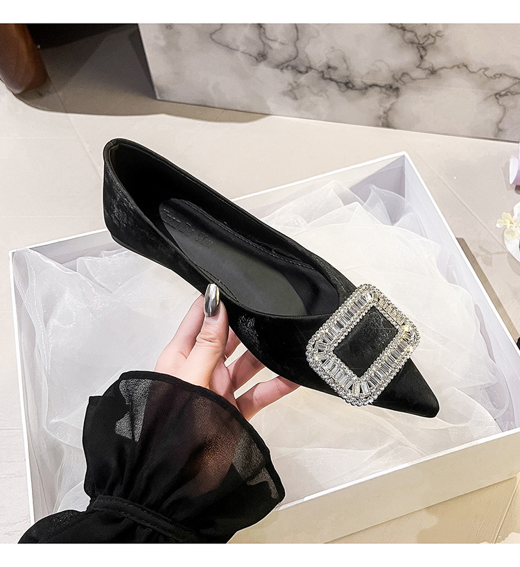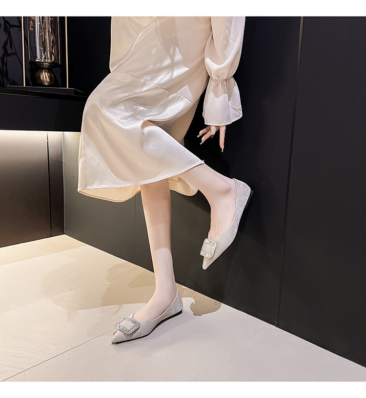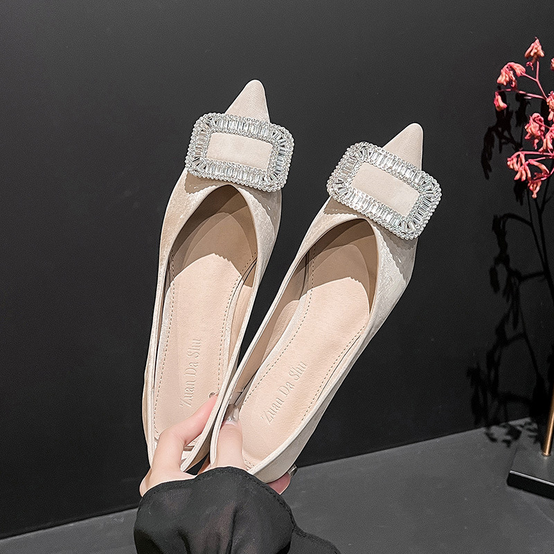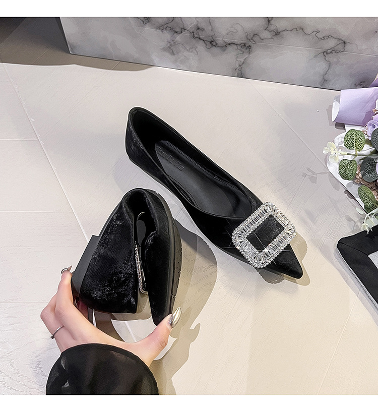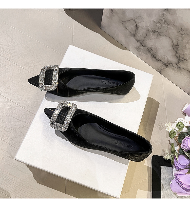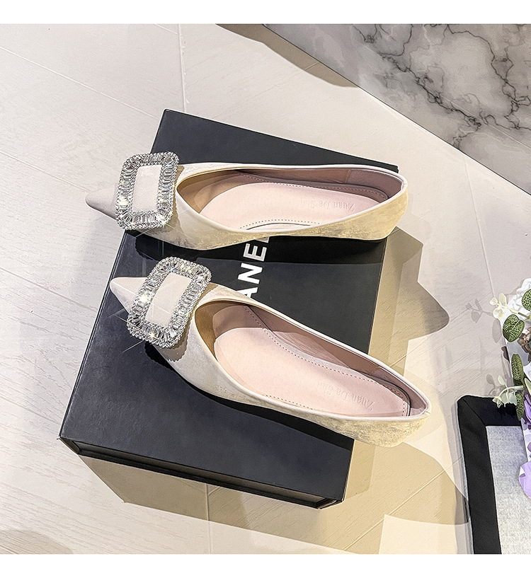 프렌치 스타일 뾰족코 여성용 신발 2026 신상 사각 버클 크리스탈 플랫 바닥 다용도 부드러운 밑창 슬립온 대형 여성 신발 41-43스토어 가기