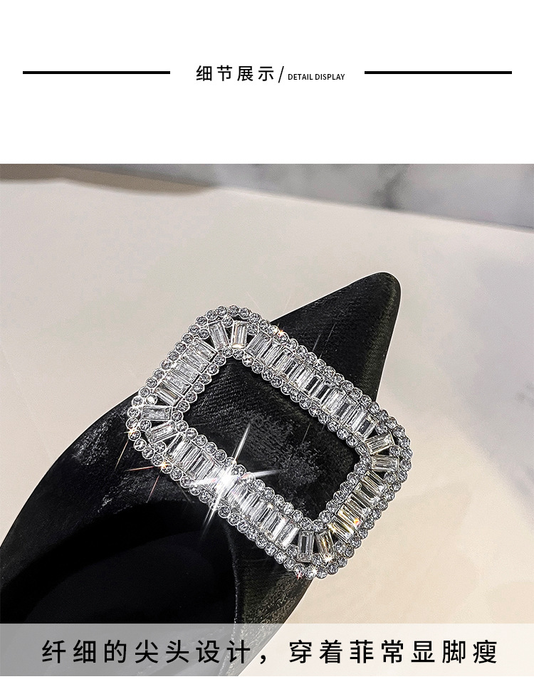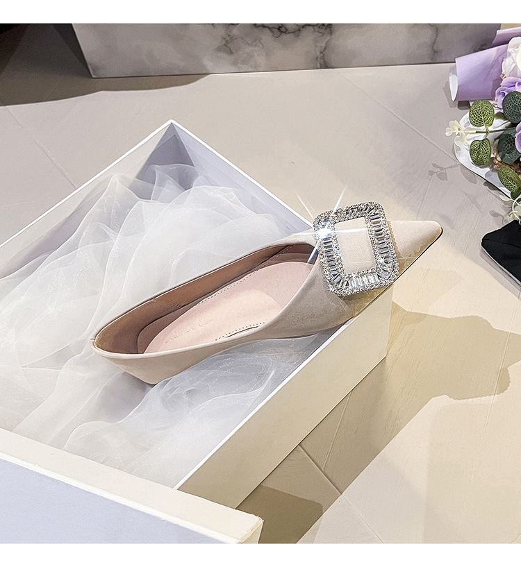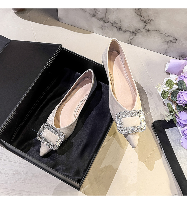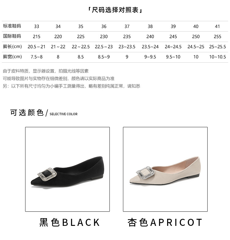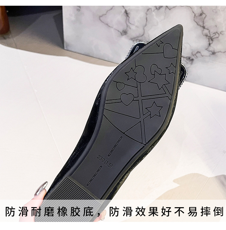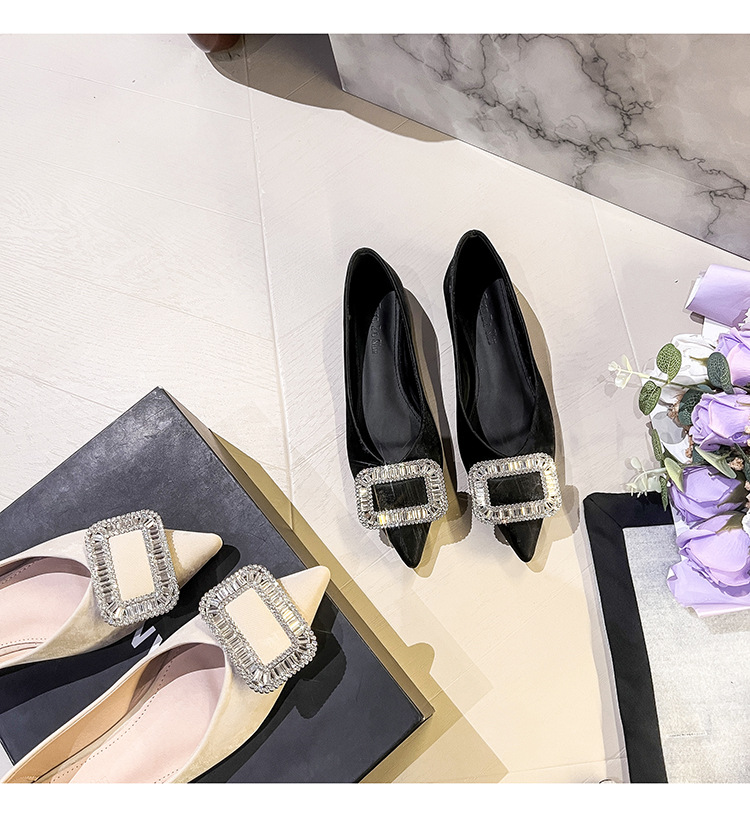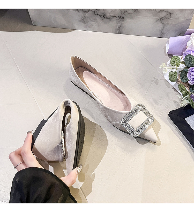 프렌치 스타일 뾰족코 여성용 신발 2026 신상 사각 버클 크리스탈 플랫 바닥 다용도 부드러운 밑창 슬립온 대형 여성 신발 41-43스토어 가기