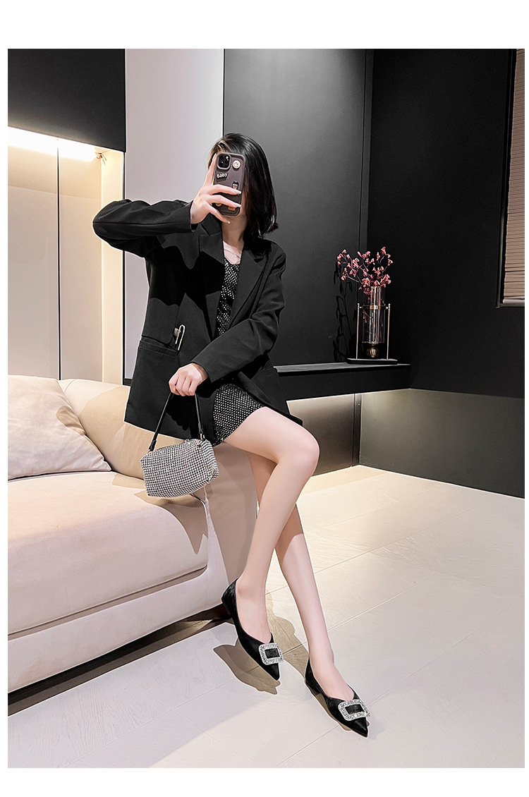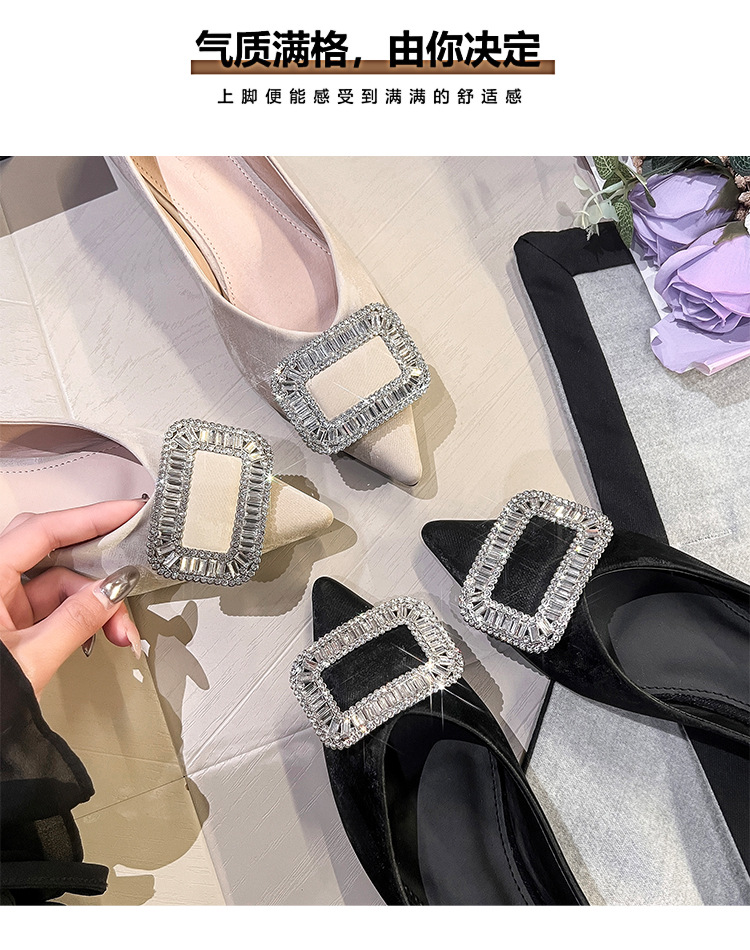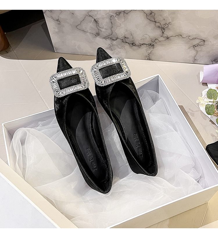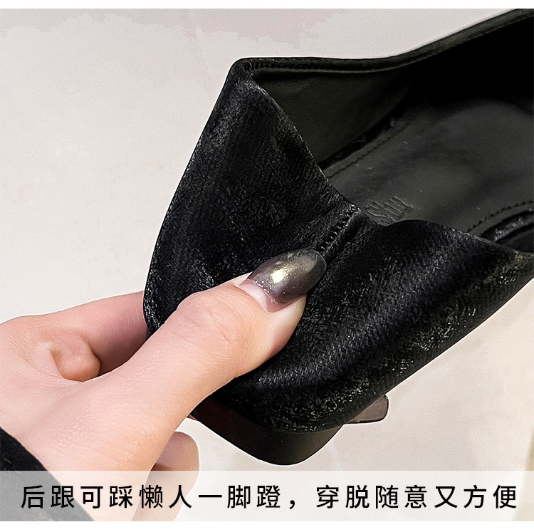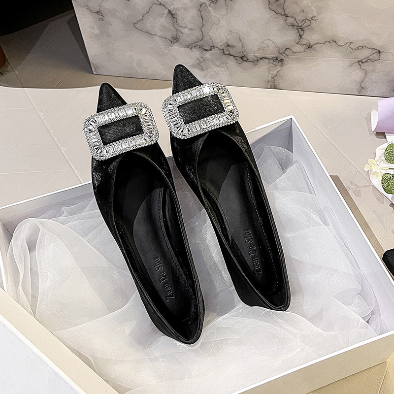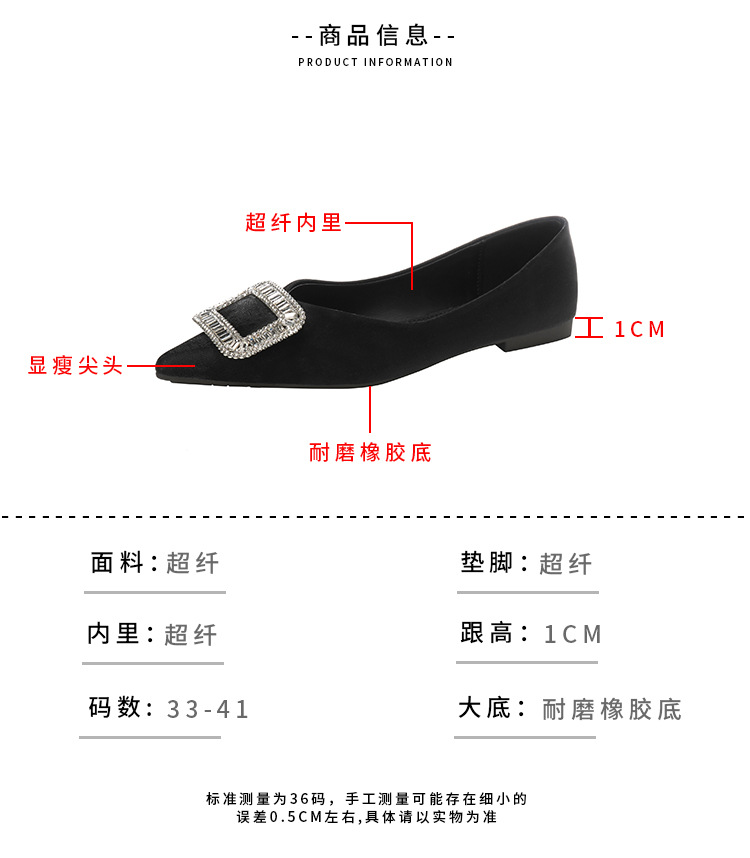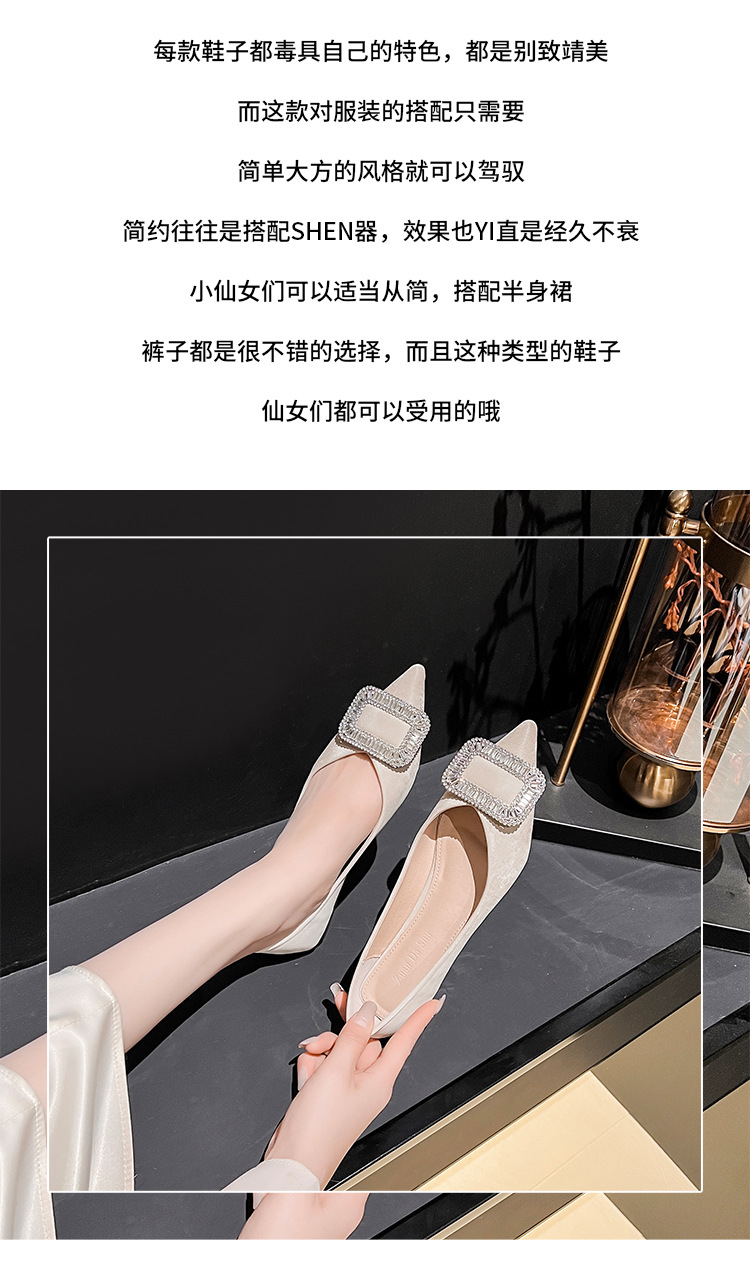 프렌치 스타일 뾰족코 여성용 신발 2026 신상 사각 버클 크리스탈 플랫 바닥 다용도 부드러운 밑창 슬립온 대형 여성 신발 41-43스토어 가기