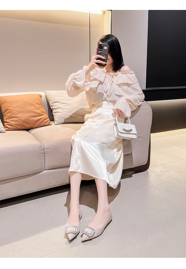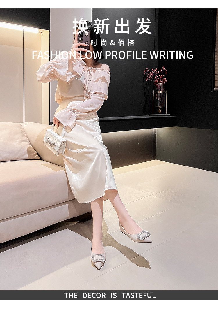프렌치 스타일 뾰족코 여성용 신발 2026 신상 사각 버클 크리스탈 플랫 바닥 다용도 부드러운 밑창 슬립온 대형 여성 신발 41-43