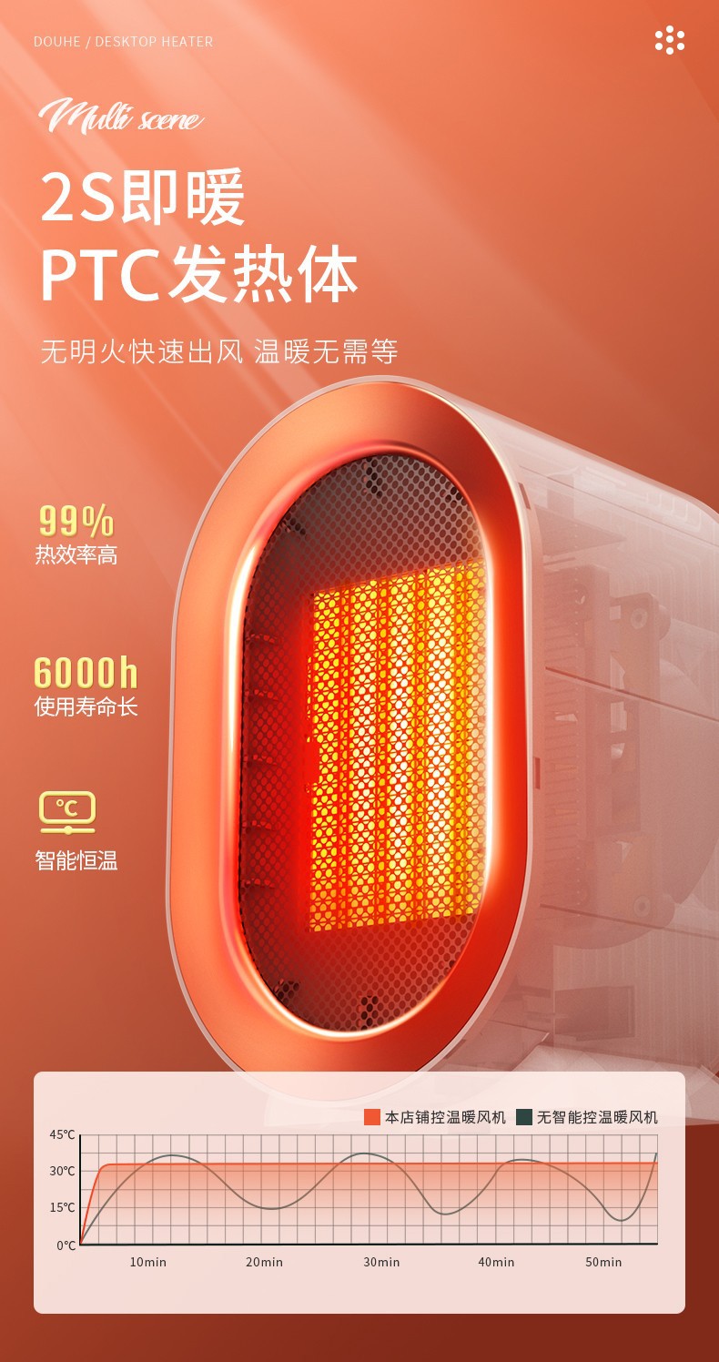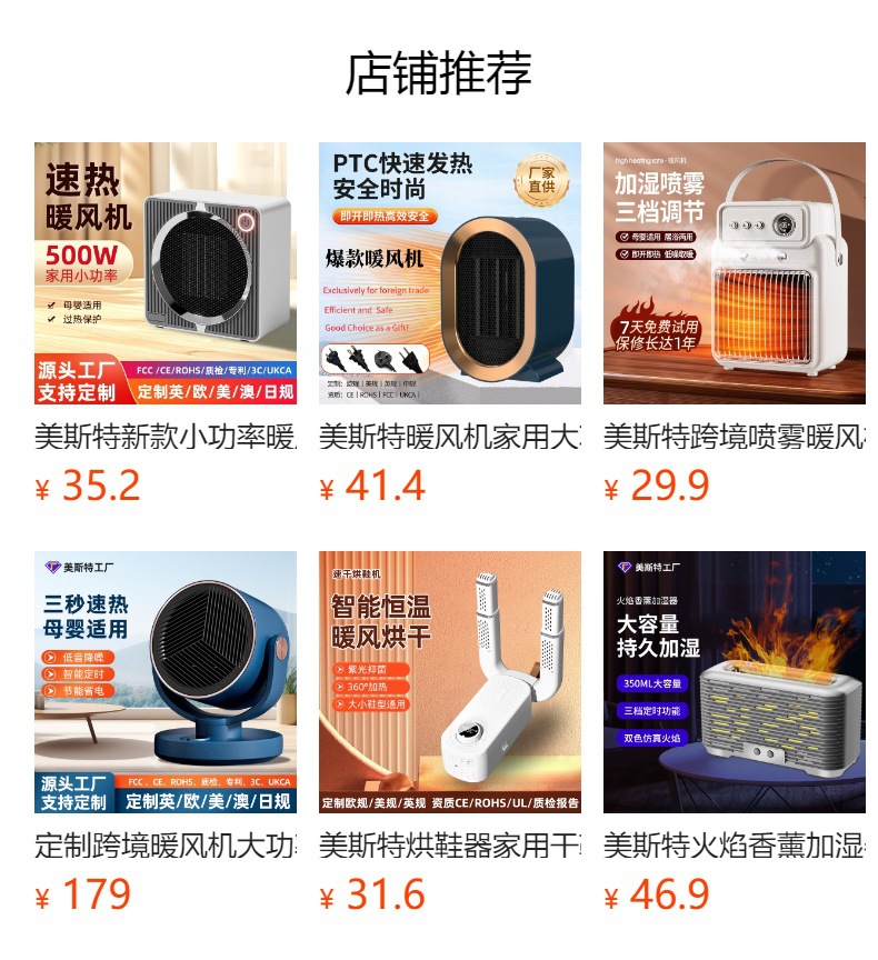 메이스터 회전식 히터 2000W 고출력 크로스보더 히터 PTC 세라믹 가열 가정용 전기 히터스토어 가기