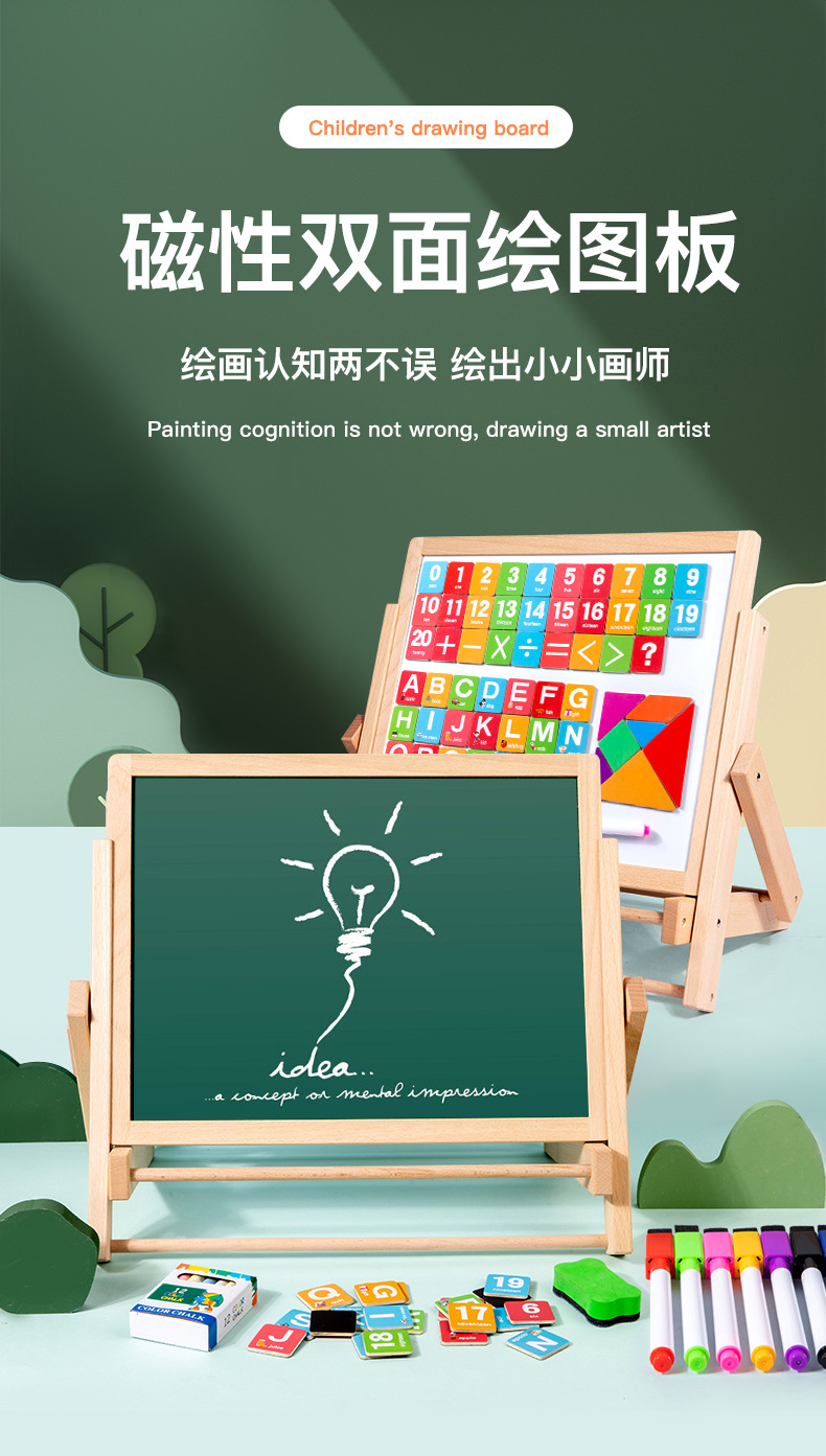 어린이 양면 자기 접이식 스토리지 드로잉 보드 나무 예술 2 대 1 인지 드로잉 보드 6 대 1 선물 장난감스토어 가기